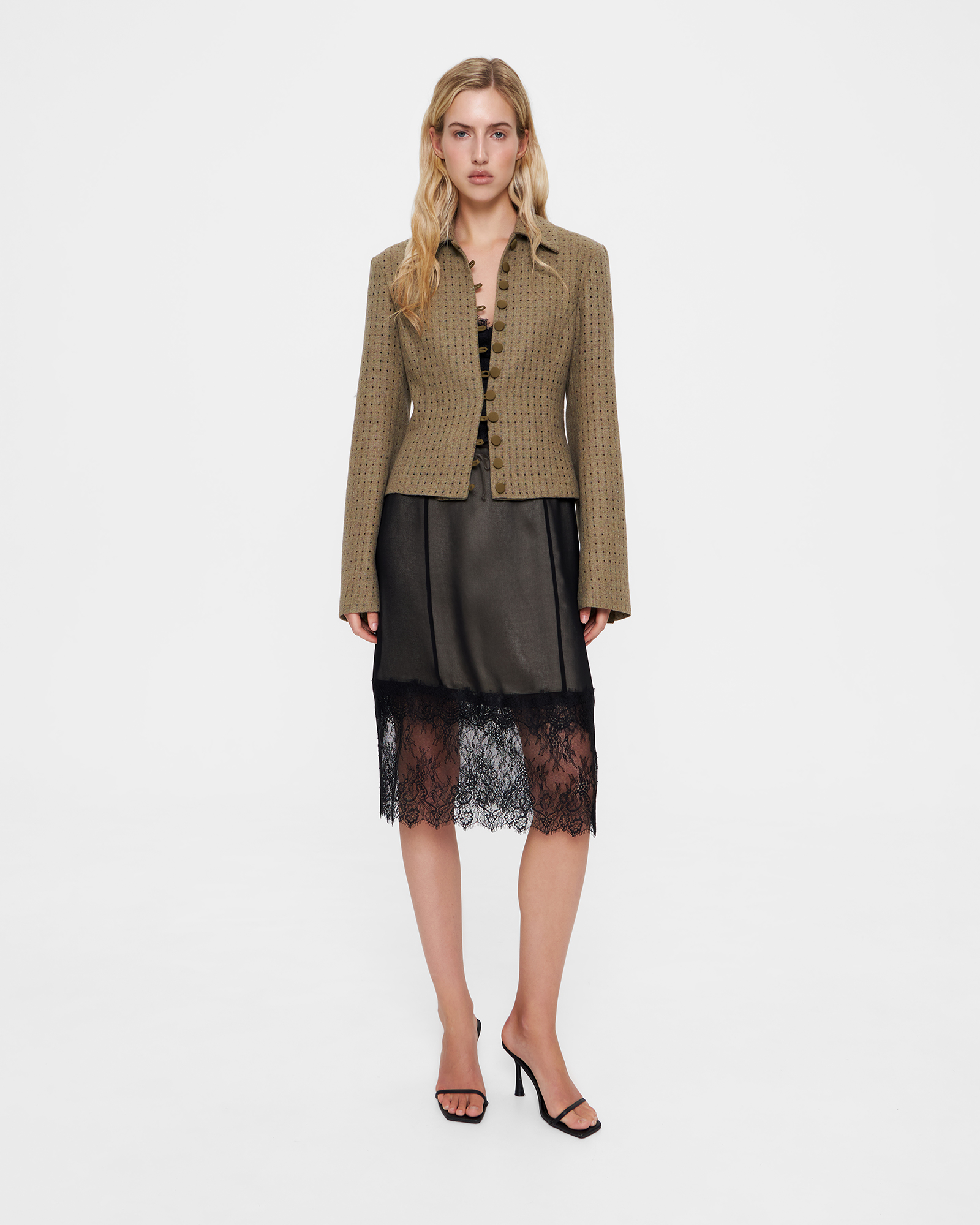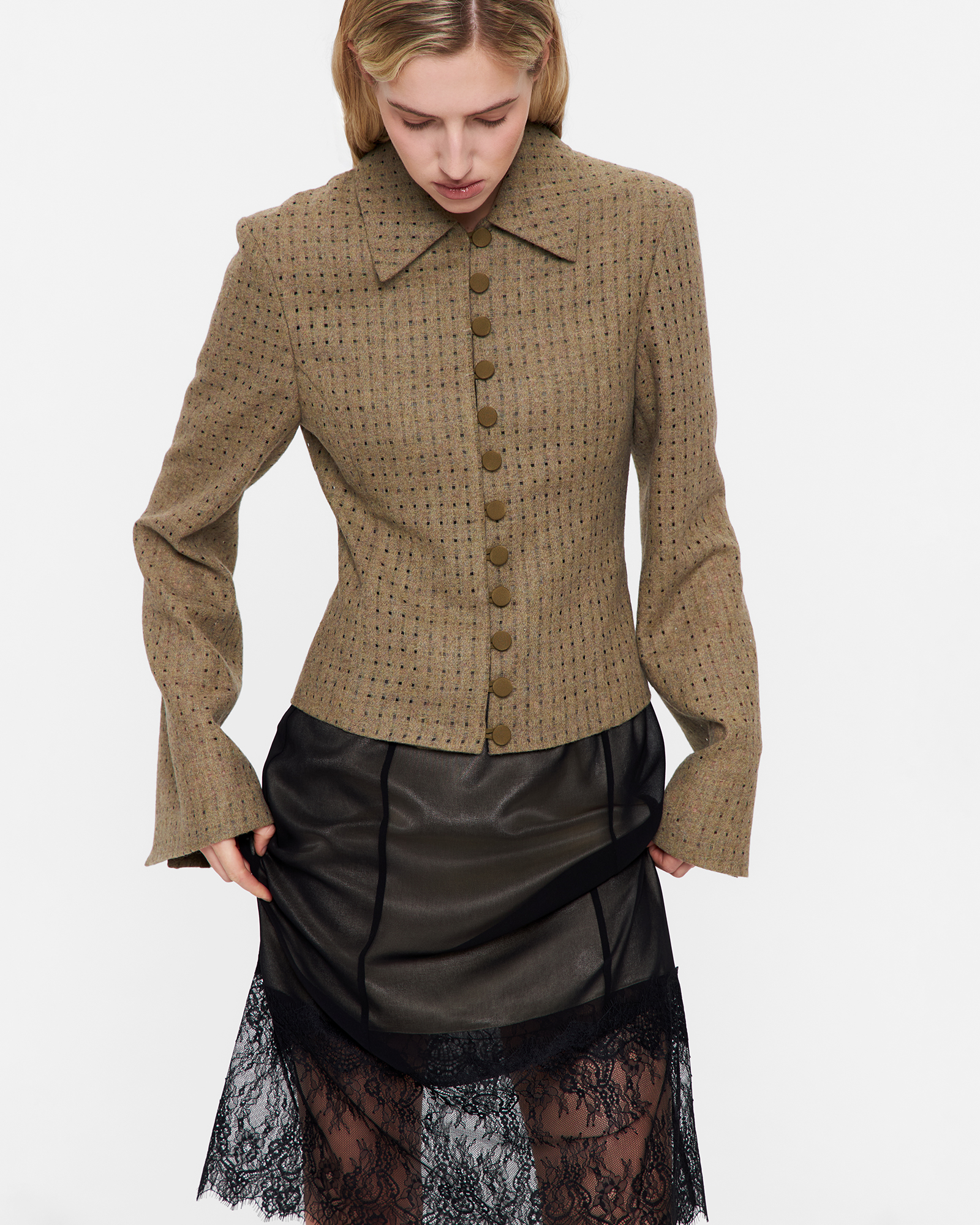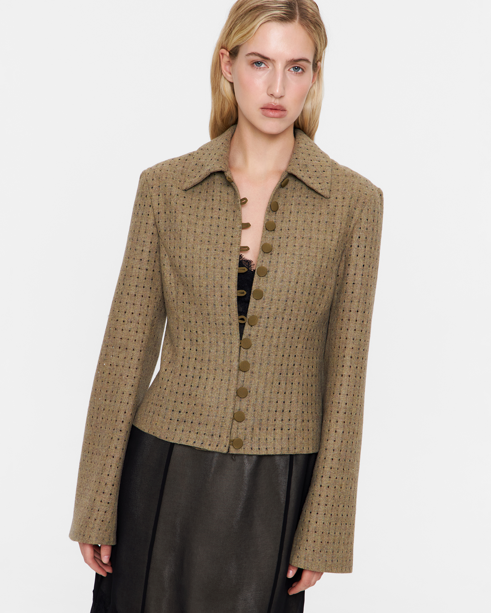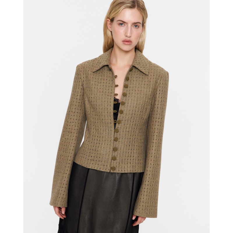 Блейзер из фактурного сукна в цвете хаки