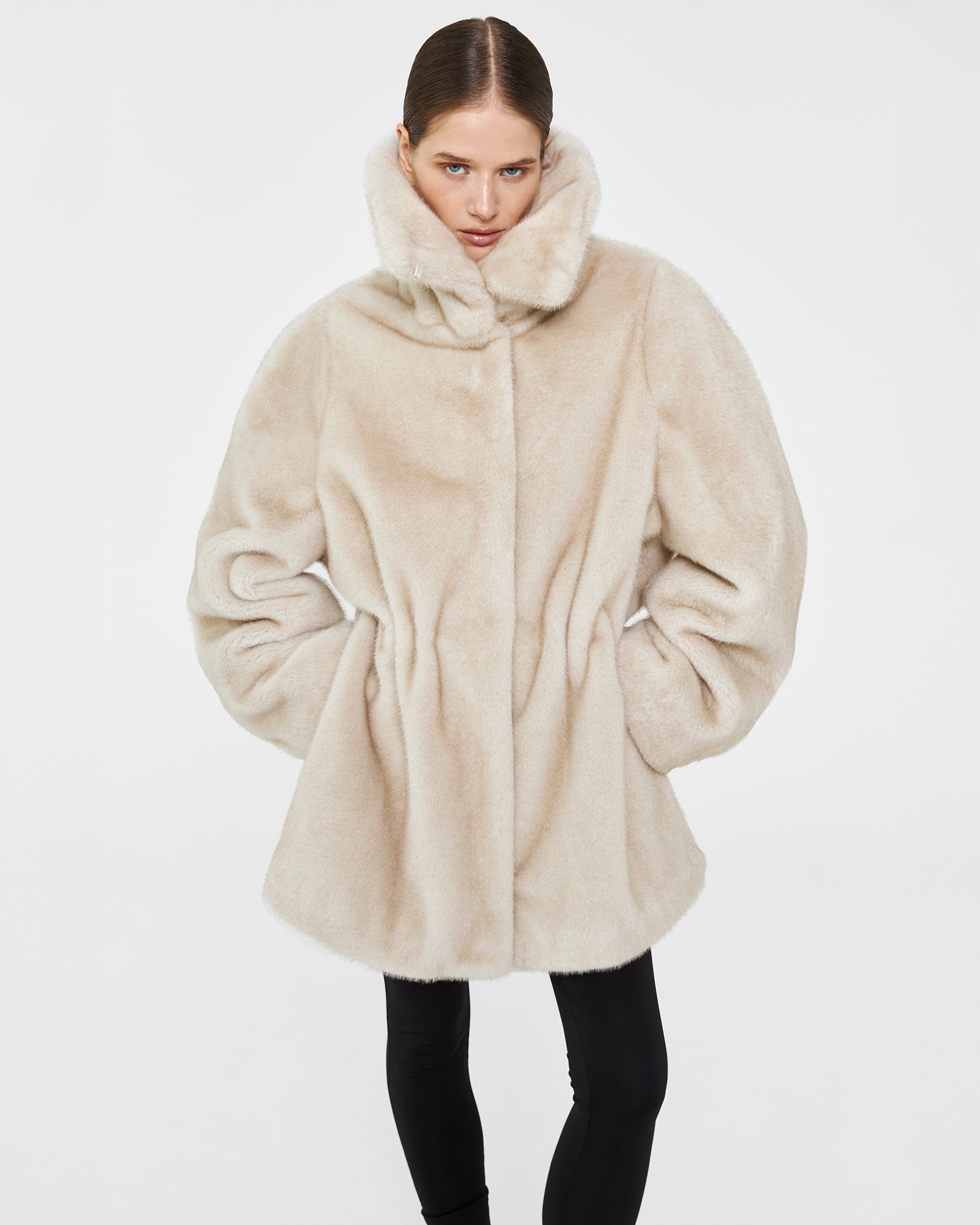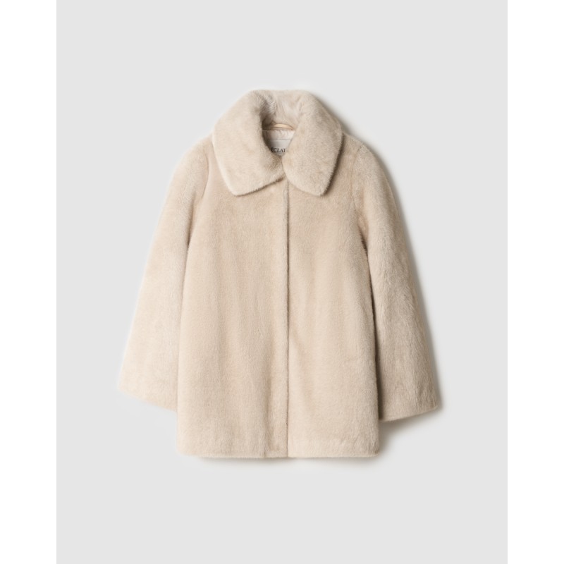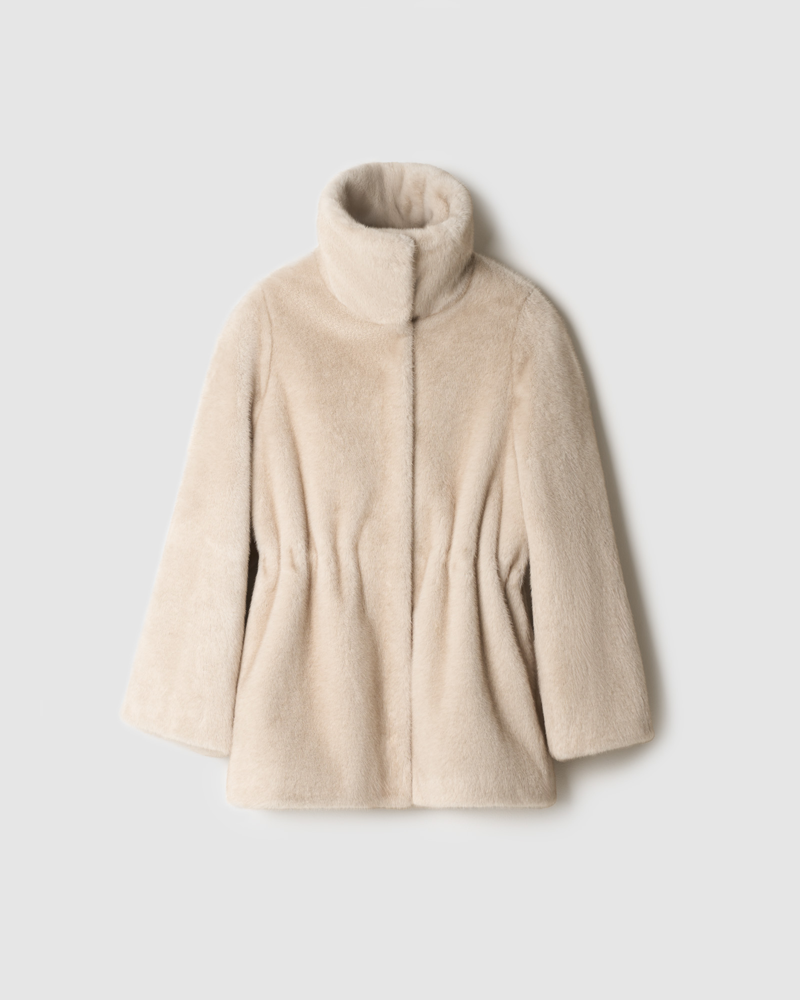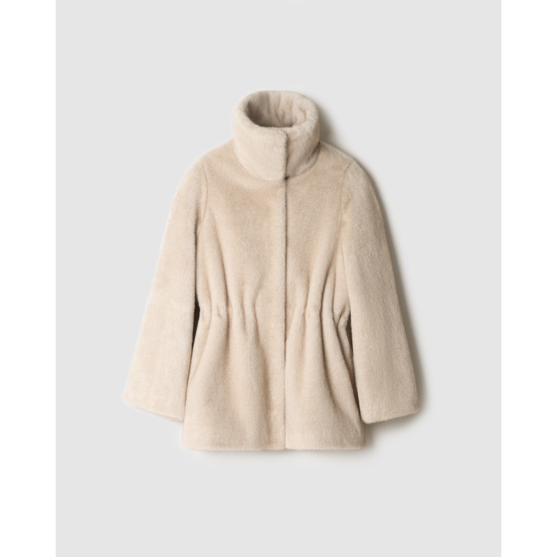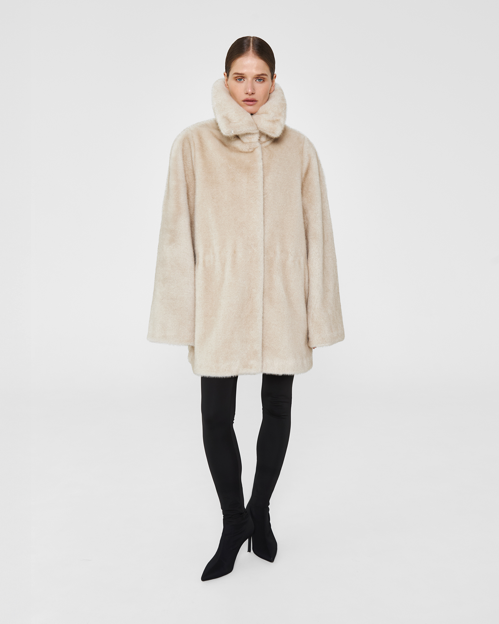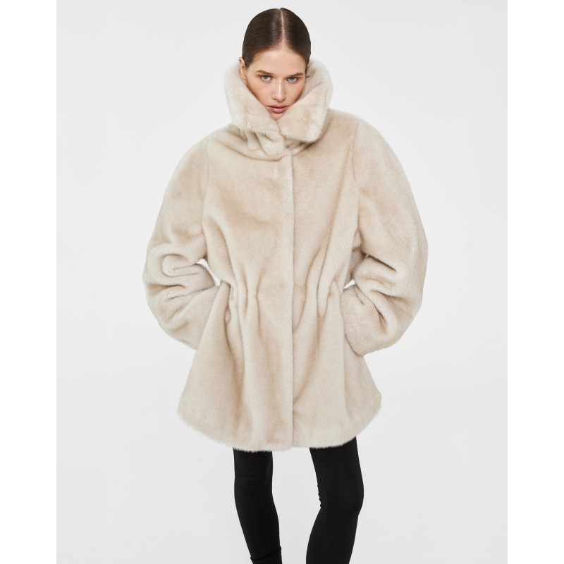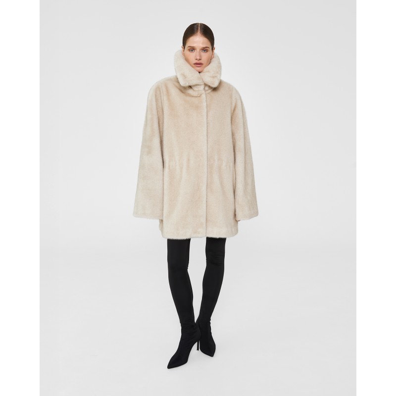 Бомбер из экомеха под норку со стойкой в молочном цвете