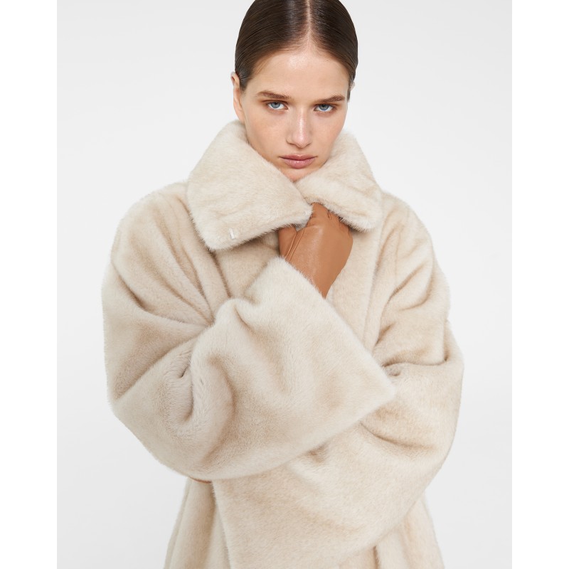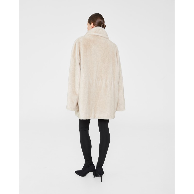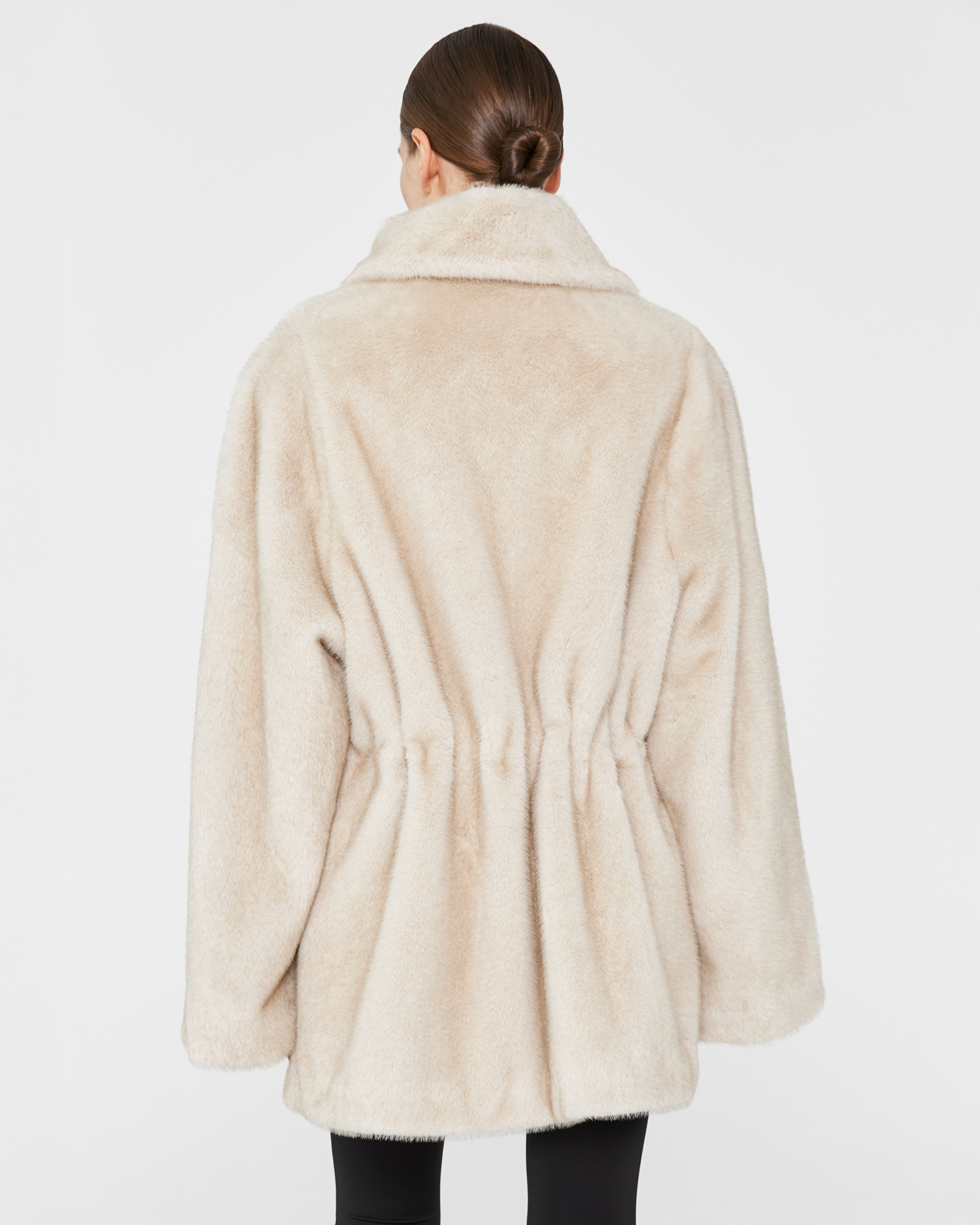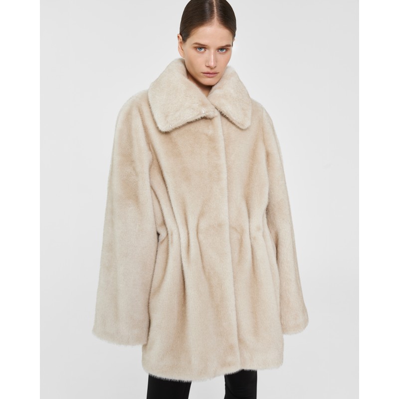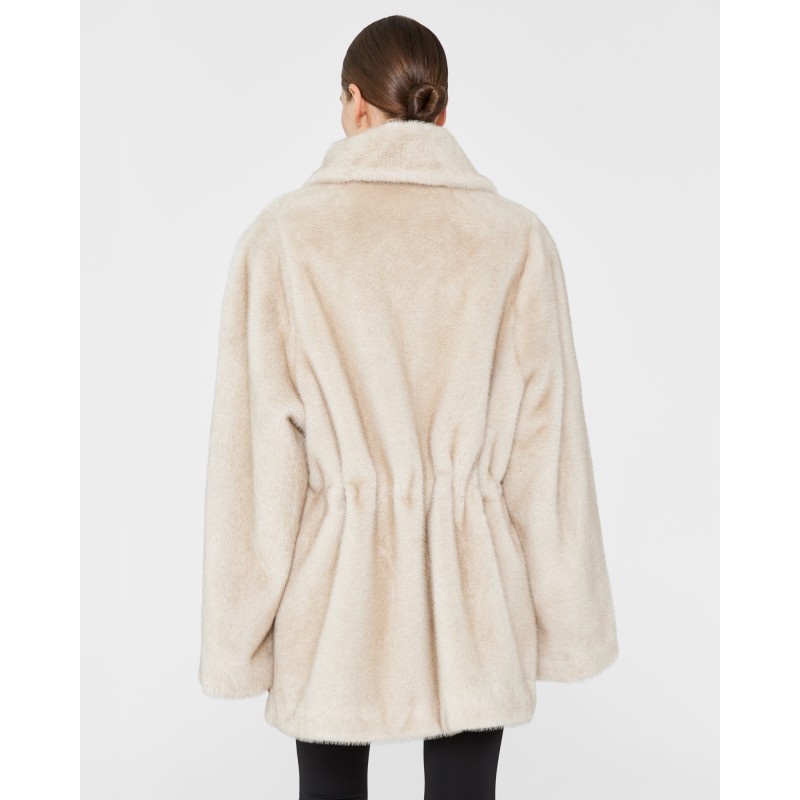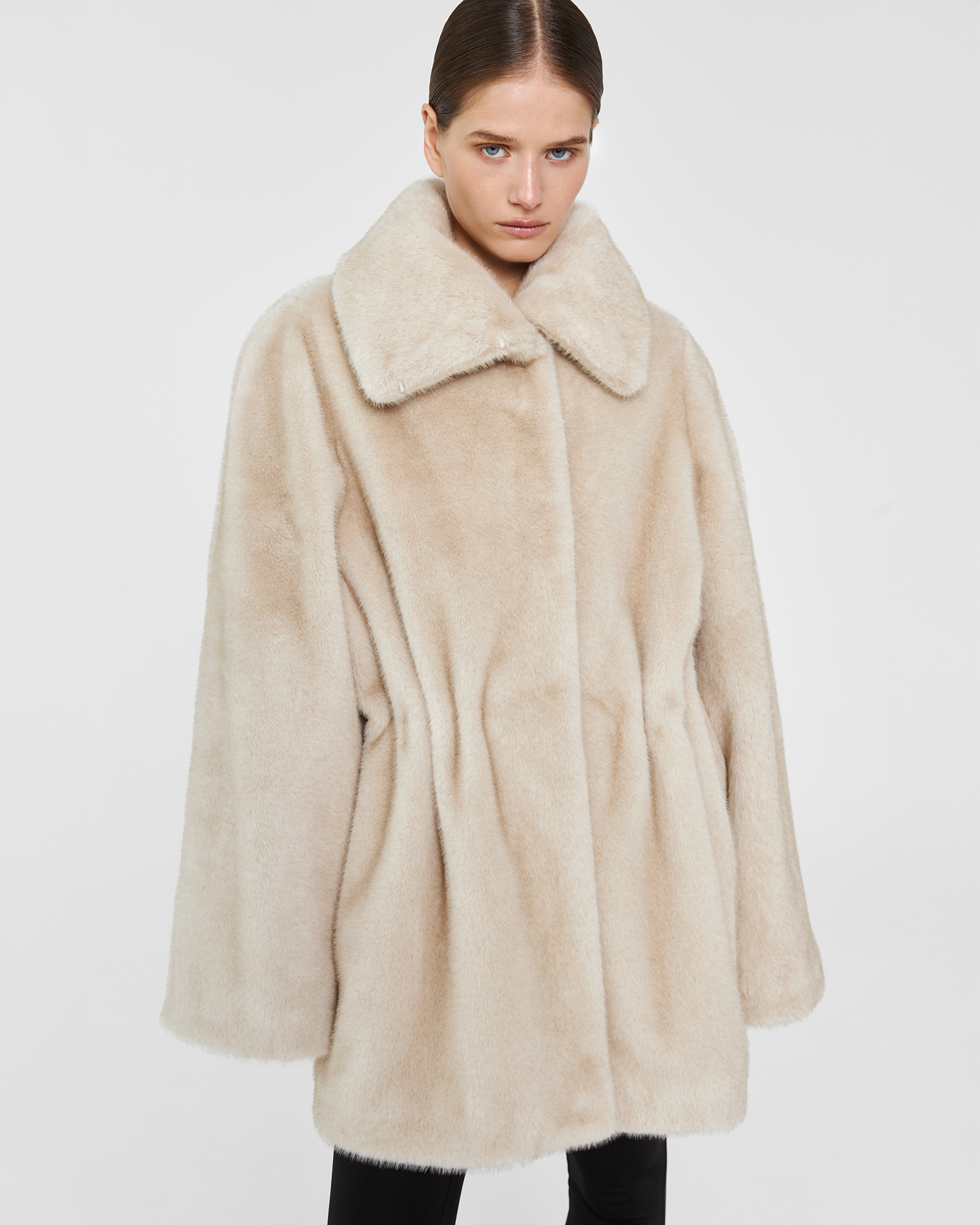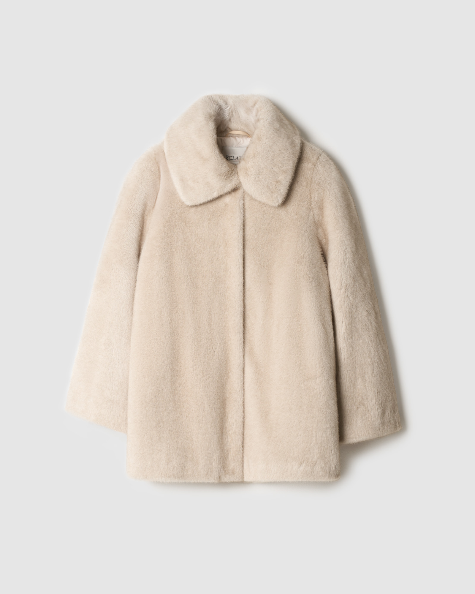 Бомбер из экомеха под норку со стойкой в молочном цвете