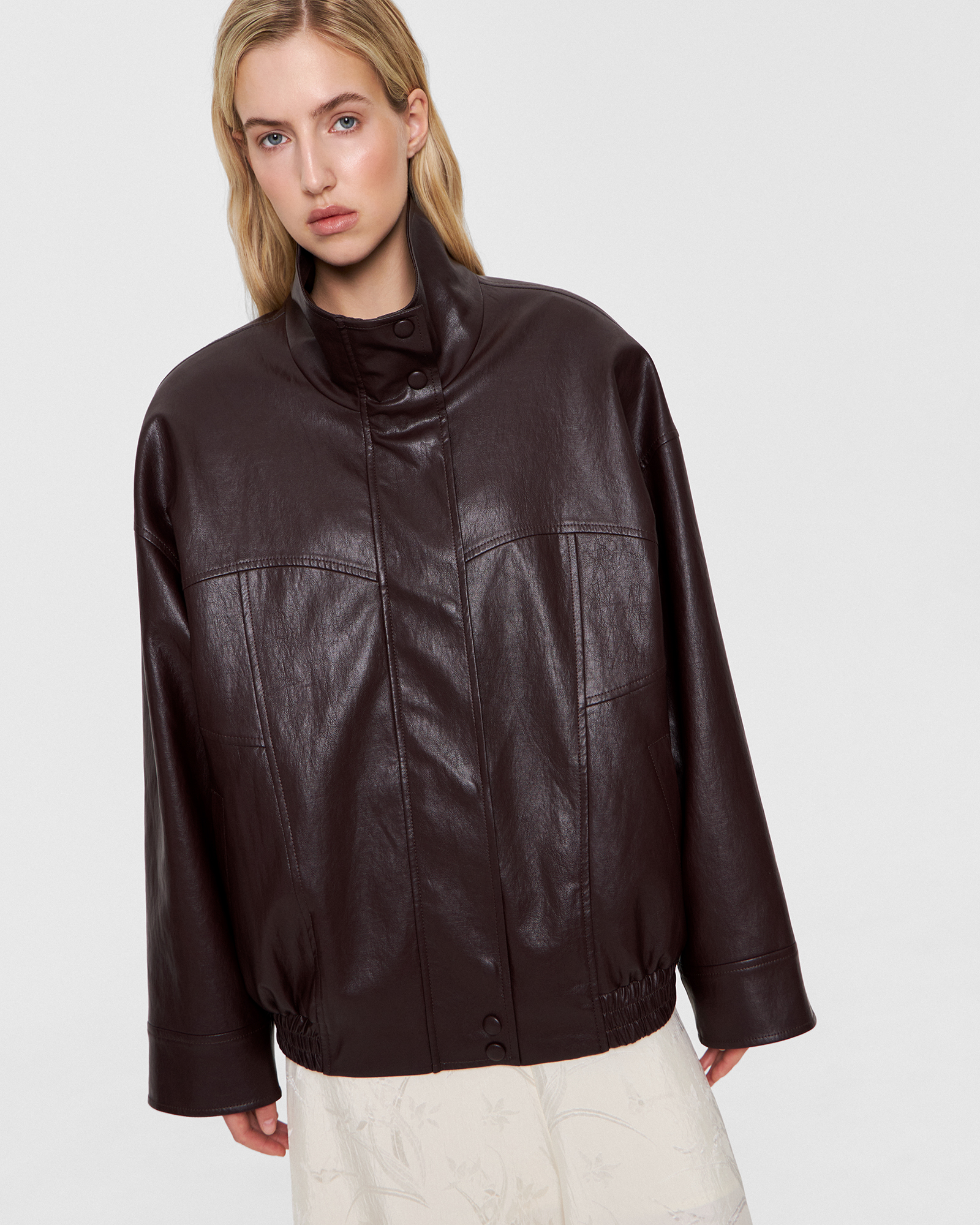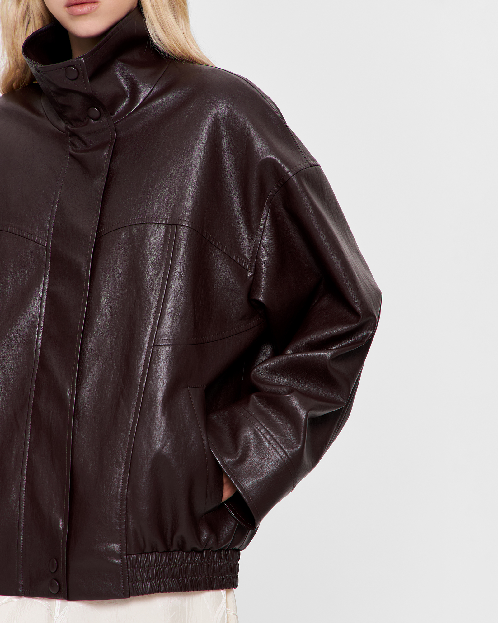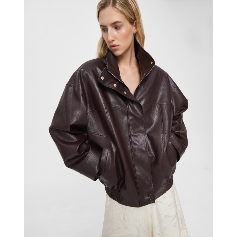 Бомбер с воротником-стойкой в коричневом цвете