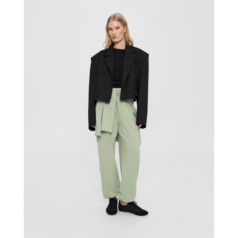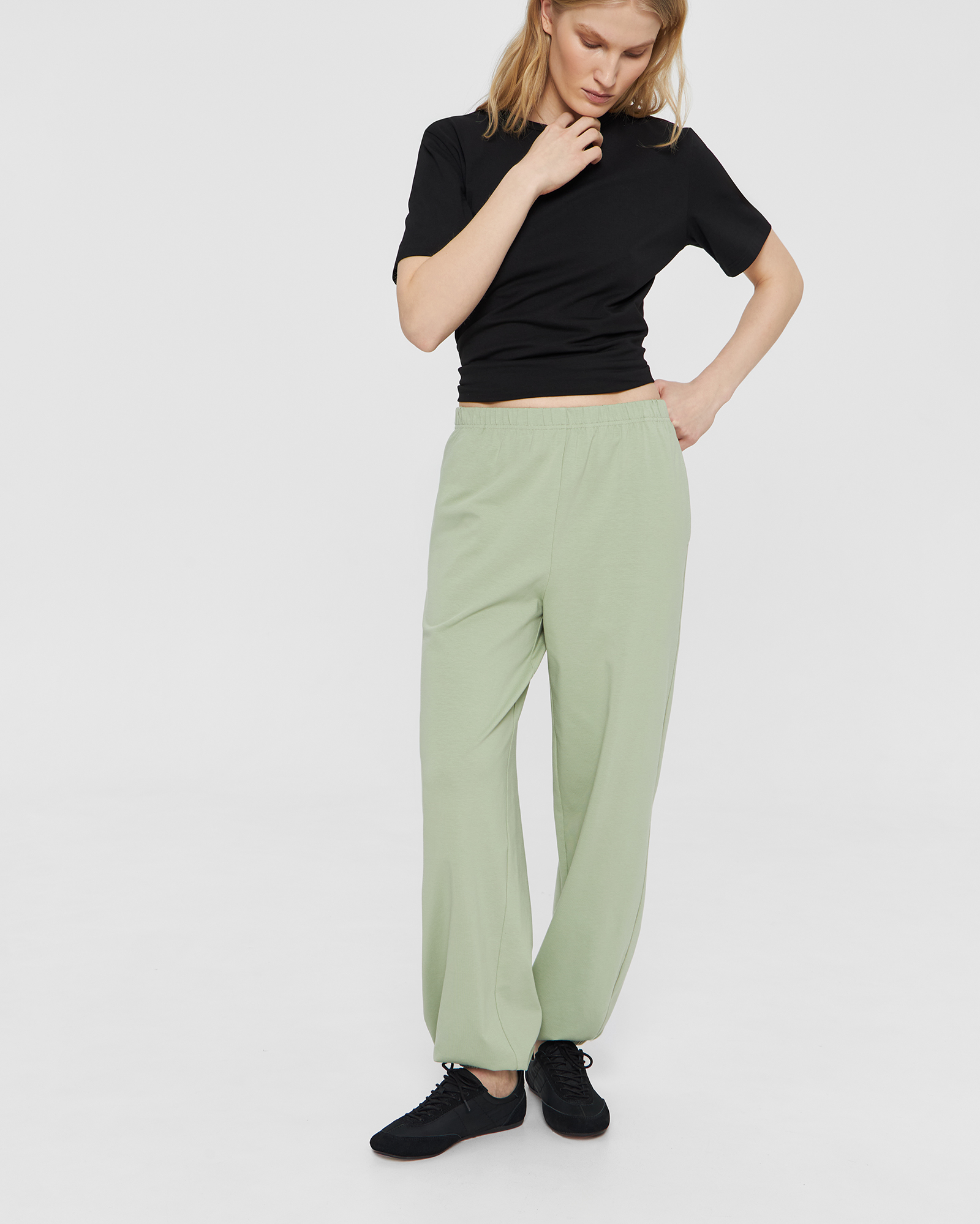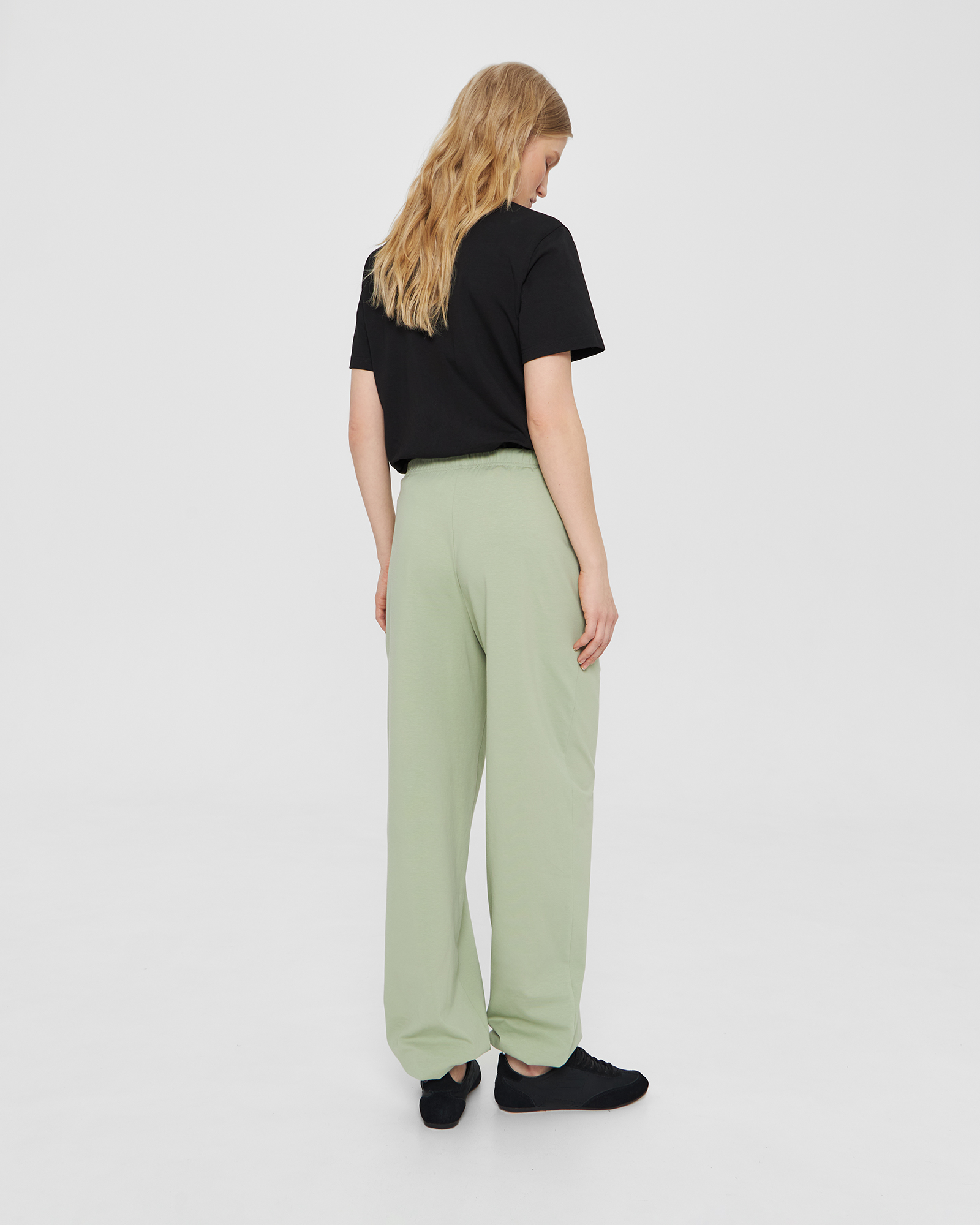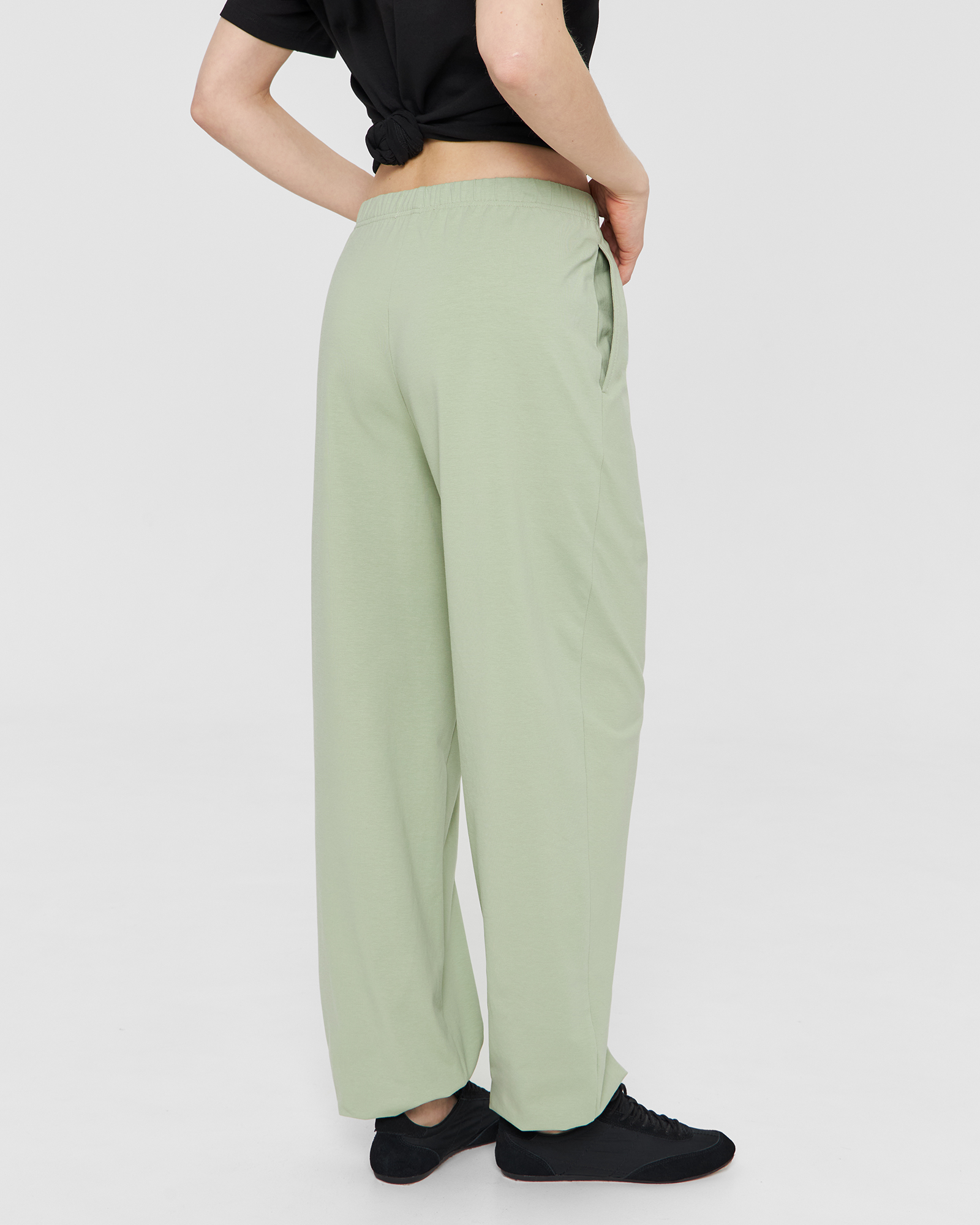 | Обмеры | Обхват на уровне талии: XS - 68 см, S - 70 см, М - 72 см, L - 74 см. Обхват на уровне бёдер: XS - 104 см, S - 106 см, М - 108 см, L - 110 см. Длина по боковому шву (с поясом и манжетой) - 106 см. Длина по шаговому шву (с манжетой) - 78 см. |