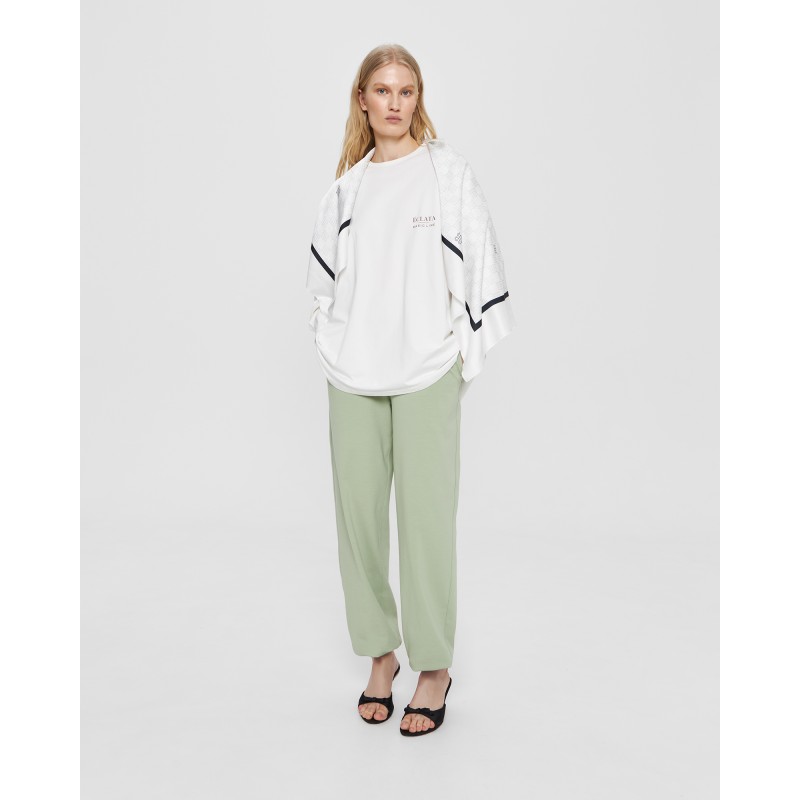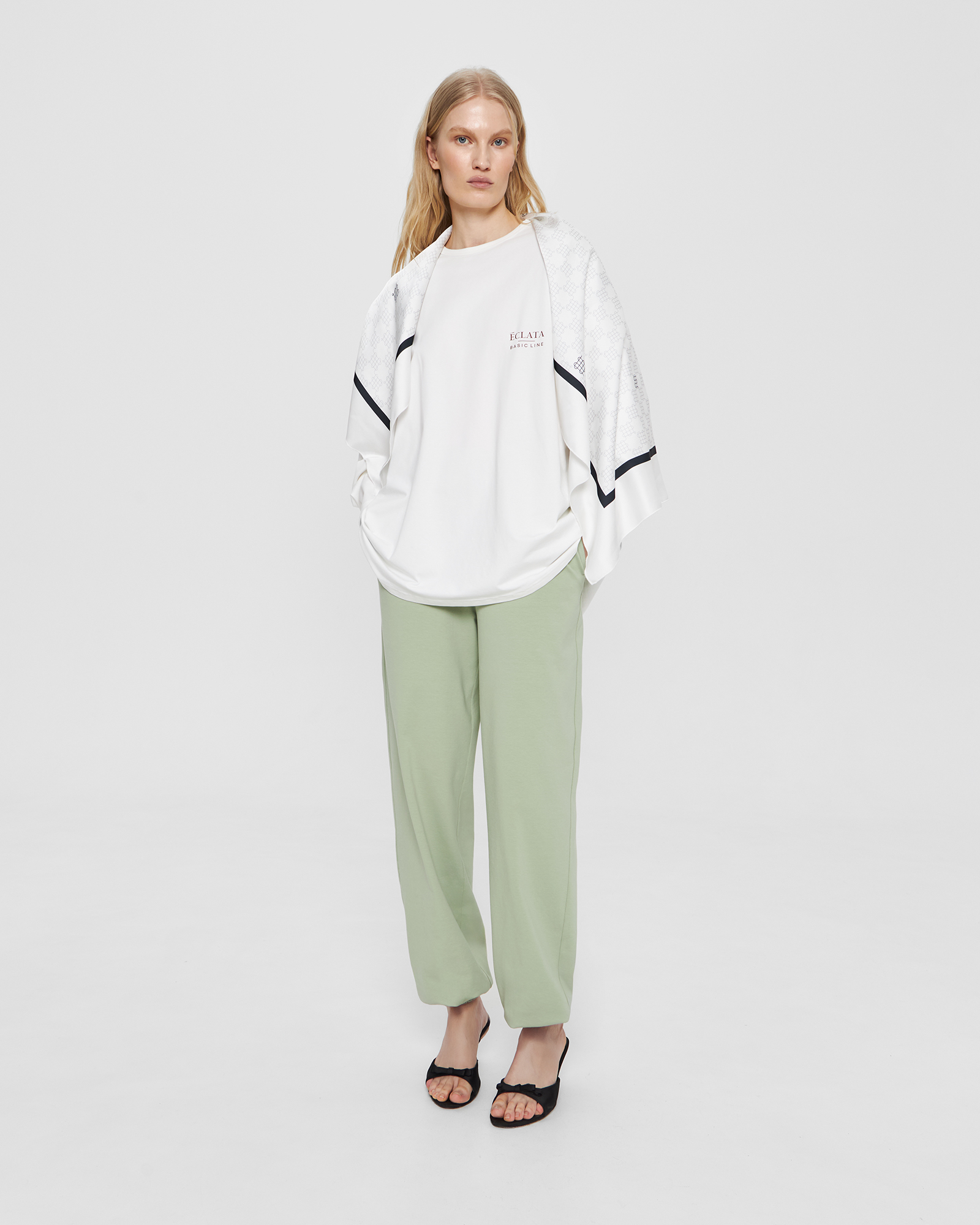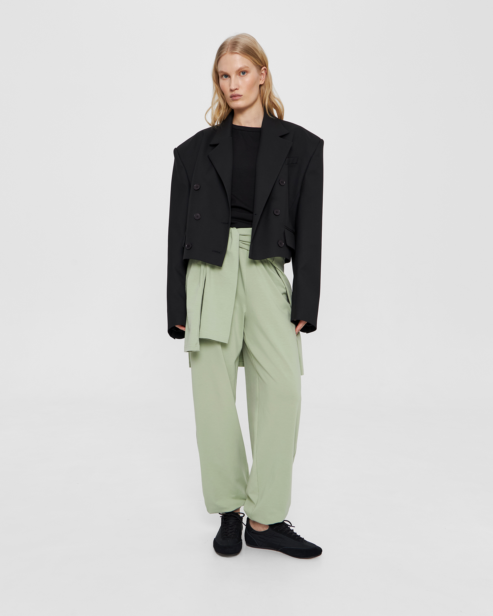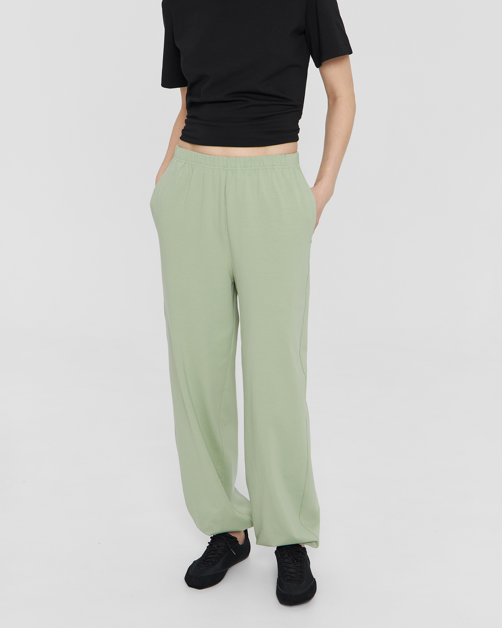 | Обмеры | Обхват на уровне талии: XS - 68 см, S - 70 см, М - 72 см, L - 74 см. Обхват на уровне бёдер: XS - 104 см, S - 106 см, М - 108 см, L - 110 см. Длина по боковому шву (с поясом и манжетой) - 106 см. Длина по шаговому шву (с манжетой) - 78 см. |