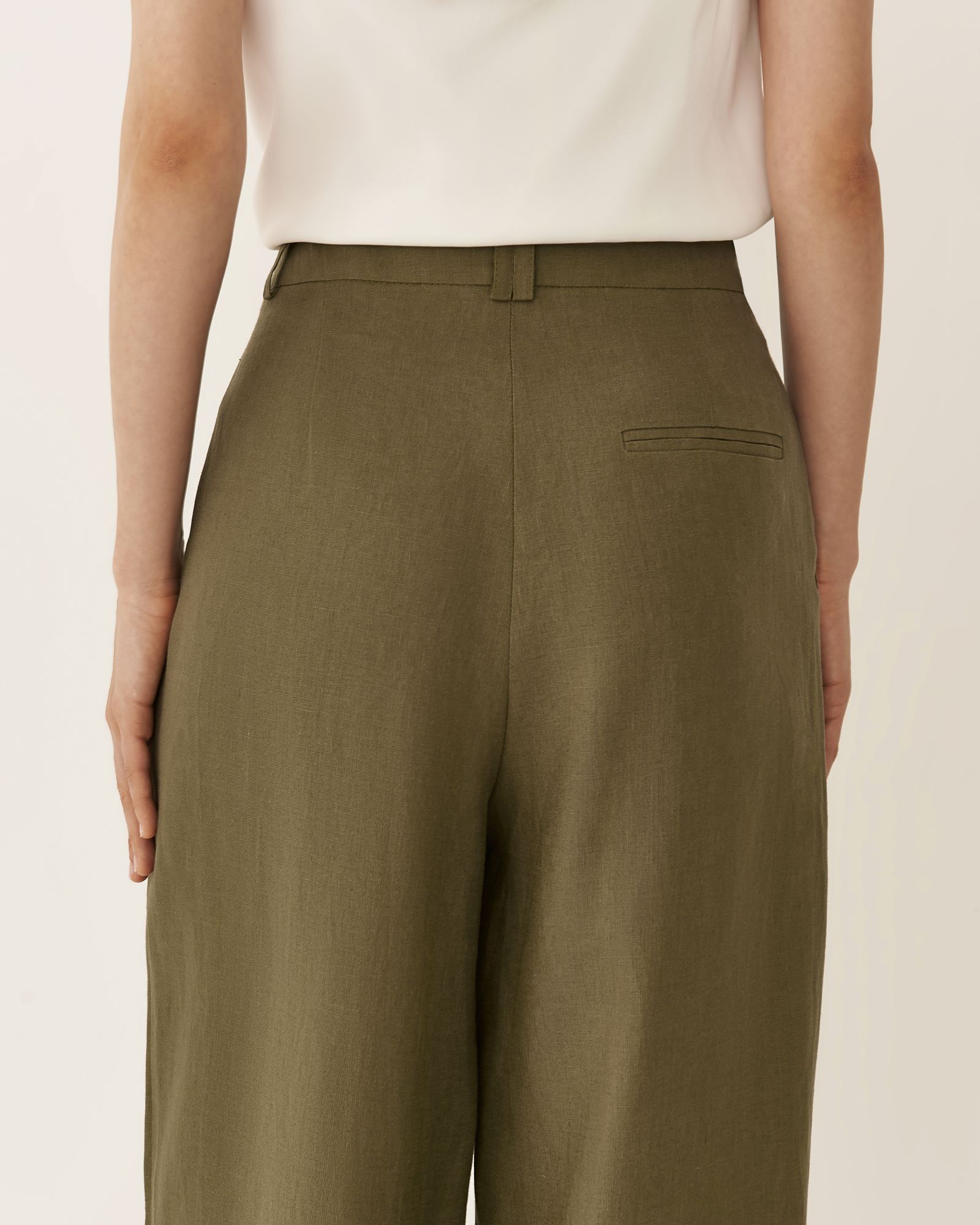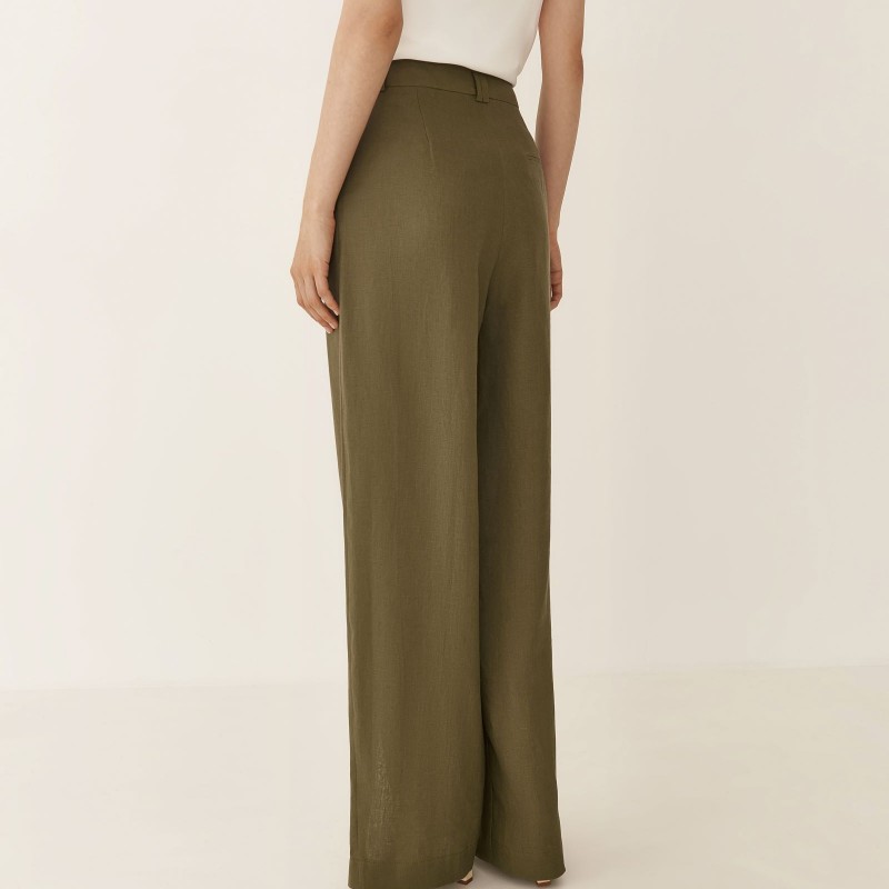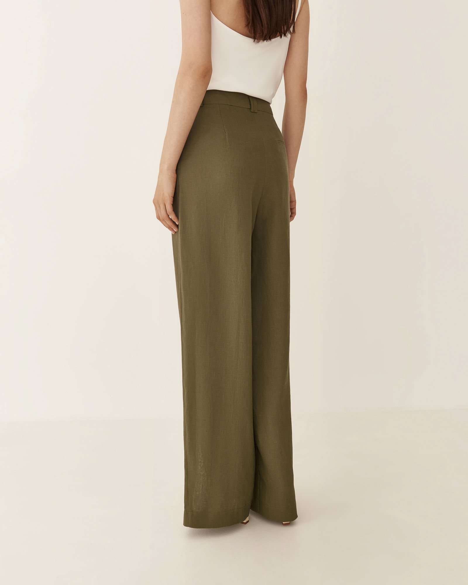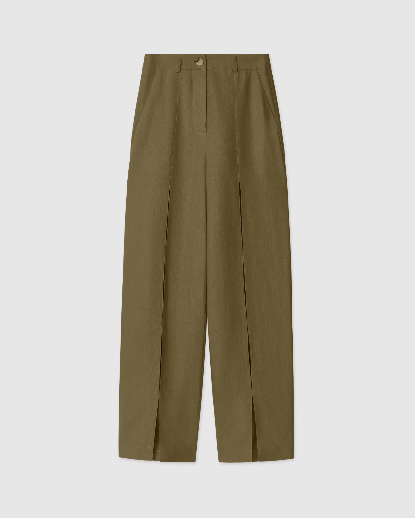 Брюки изо льна с разрезами в цвете хаки