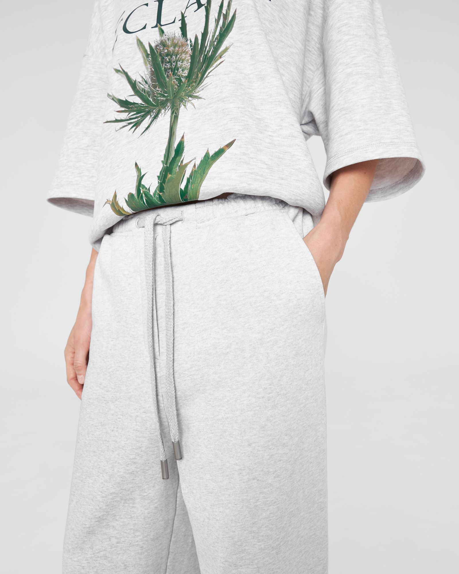 деталью в виде длинных шнурков. Брюки имеют два боковых вместительных кармана. В основании брюк установлена кулиска, с помощью которой их возможно затянуть, и изменить силуэт модели. Изделие выполнено из плотной формоумтойчевой хлопковй ткани.