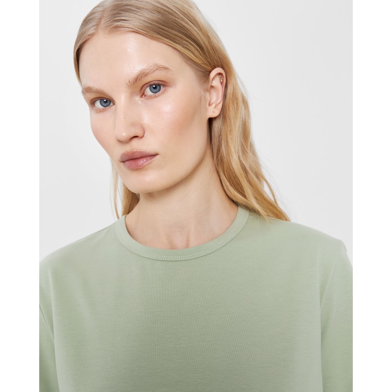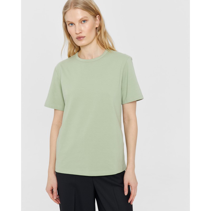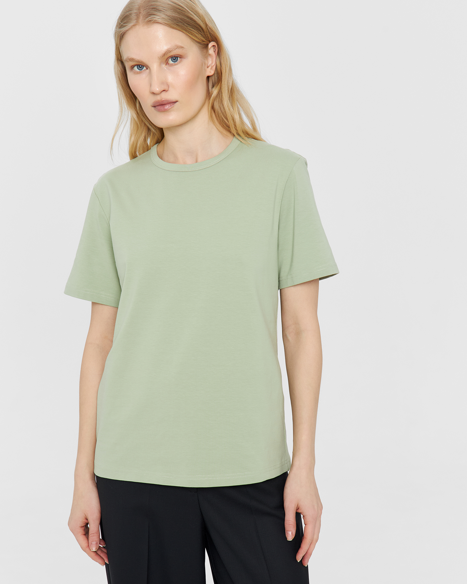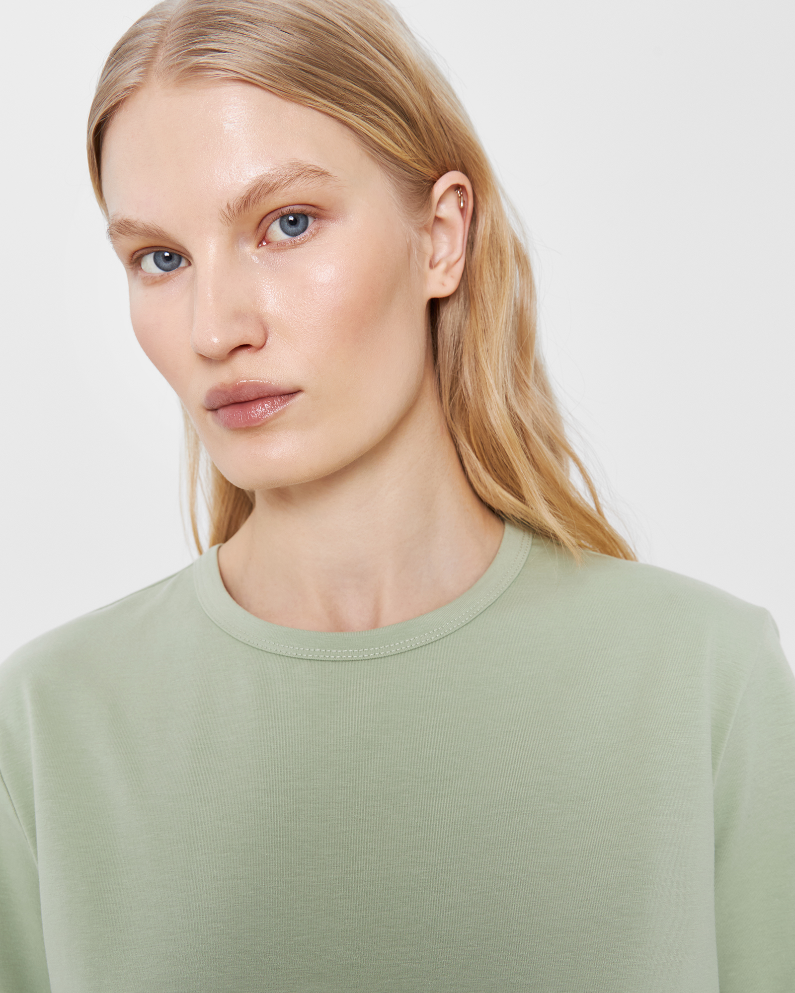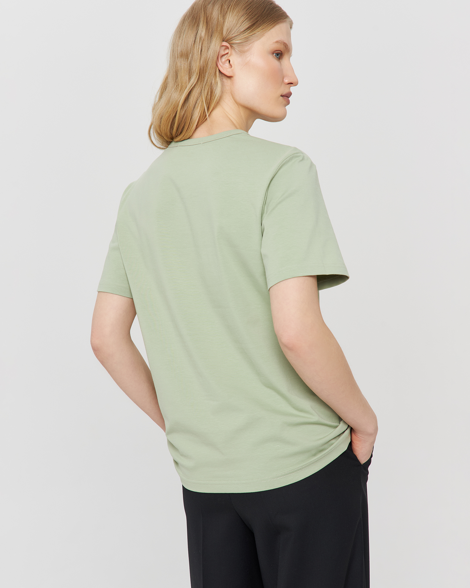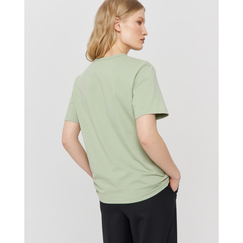 Базовая футболка прямого силуэта выполнена из мягкого хлопка с эластаном. Средний объём позволяет легко использовать изделие в качестве первого слоя.