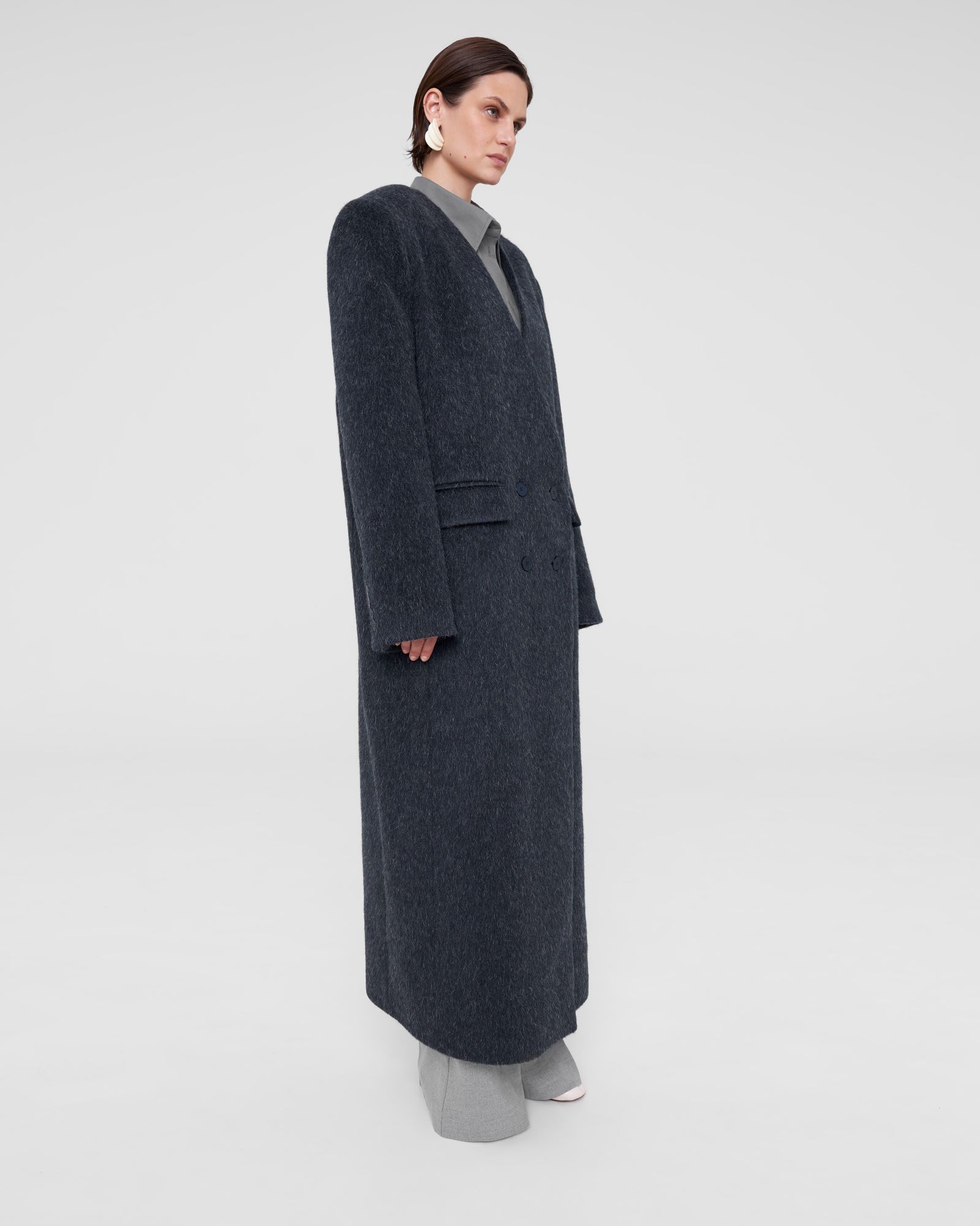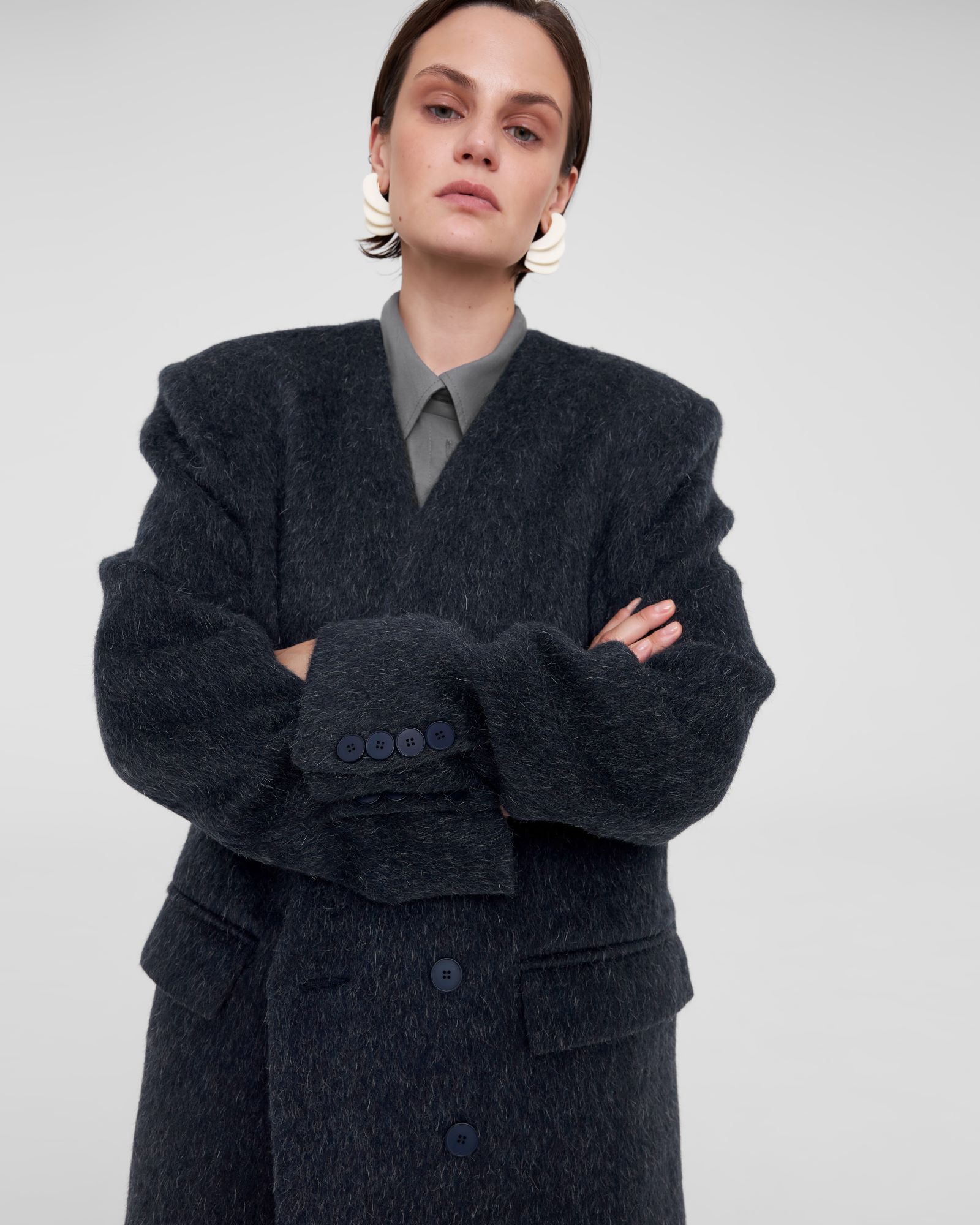 Двубортное пальто с длинным ворсом - это интерпритация классического пальто длины макси, в котором нам удалось отразить индивидуальный почерк ECLATA. В оверсайз модели прямого кроя без лацканов одновременно считывается элегантный стиль и дух свободы. Пальто имеет традиционное расположение шлицы, пуговицы на рукаве и два глубоких прорезных кармана с клапанами. Содержание 70% шерсти мериноса и ворсовая текстура ткани позволяет носить пальто до минус 15 градусов.