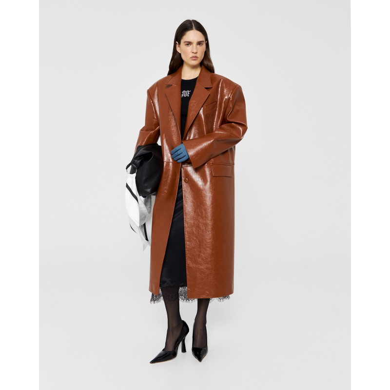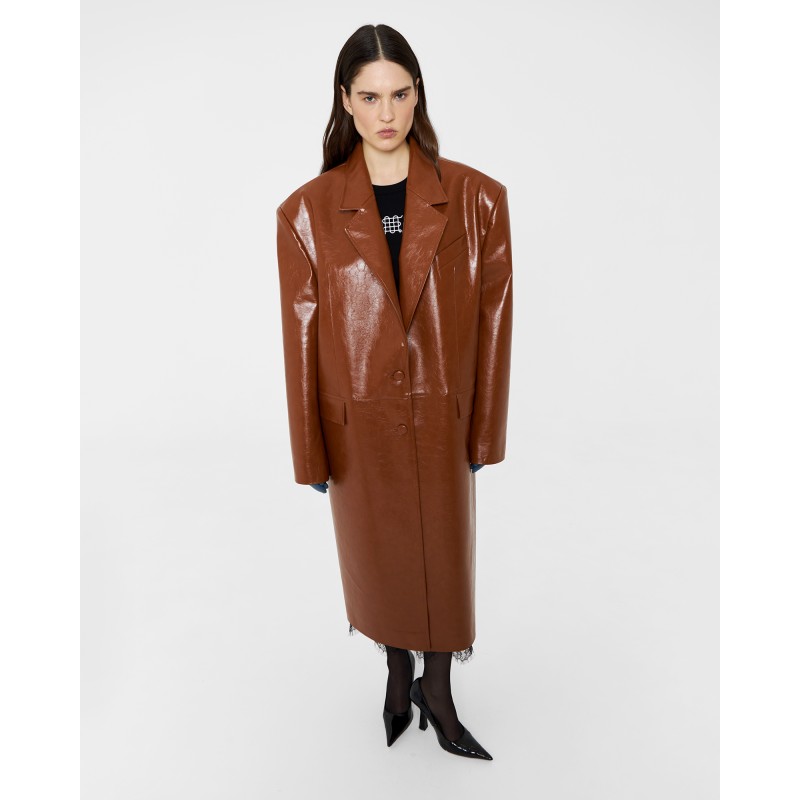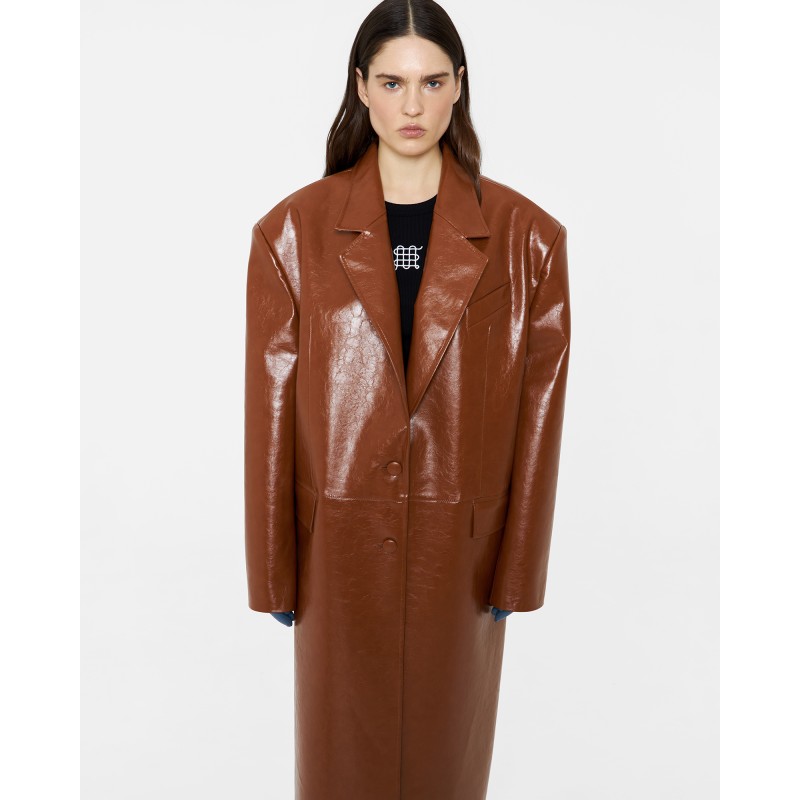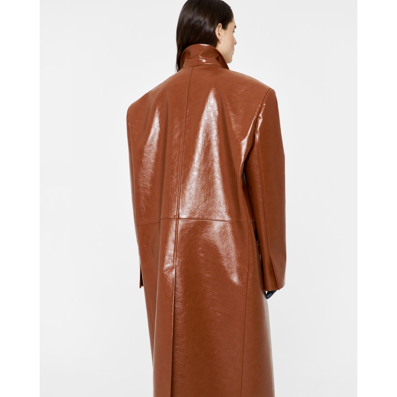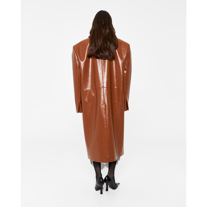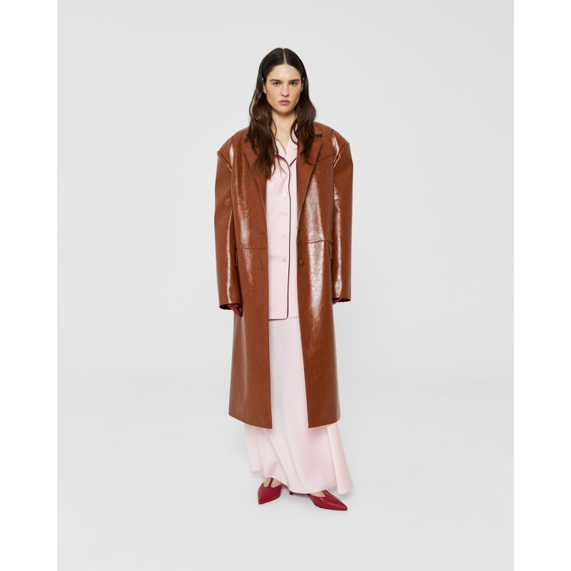 Пиджак длины миди из экокожи в карамельном цвете