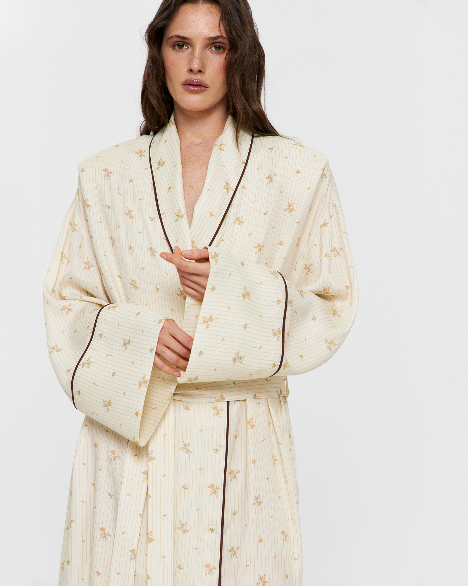| Обмеры | РАЗМЕР XS MINI: Ширина изделия на уровне груди — 65 см Ширина по линии плеч — 61,5 см Ширина плеча — 25 см Длина изделия по спинке — 136 см Длина рукава от плеча с манжетой — 53 см Длина пояса — 200 см РАЗМЕР OS: Ширина изделия на уровне груди — 67 см Ширина по линии плеч — 63 см Ширина плеча — 26 см Длина изделия по спинке — 142 см Длина рукава от плеча с манжетой — 57 см Длина пояса — 230 см |