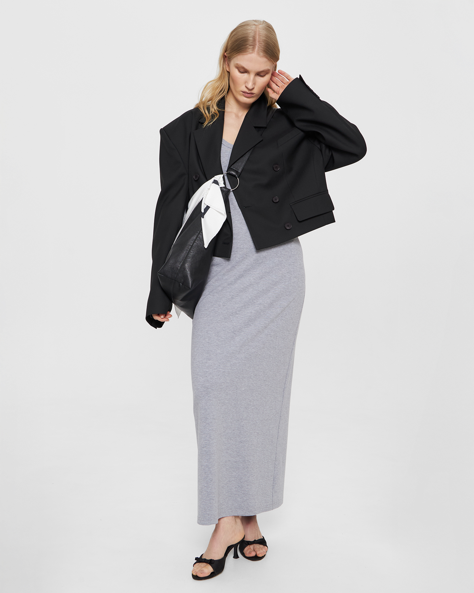 рост 175 см, обхват груди - 83 см, обхват талии - 68 см, обхват бедер - 91 см. На модели изделие в размере XS