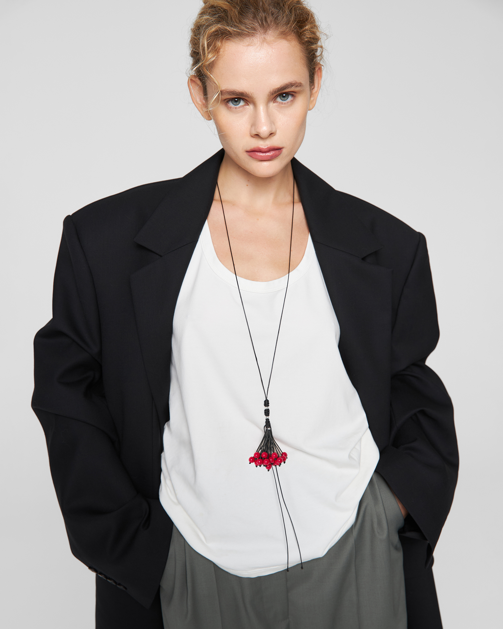 Состав и уход | Вощенный шнур: 100% полиэстер Бусины: натуральный камень - имитация красного агата. |