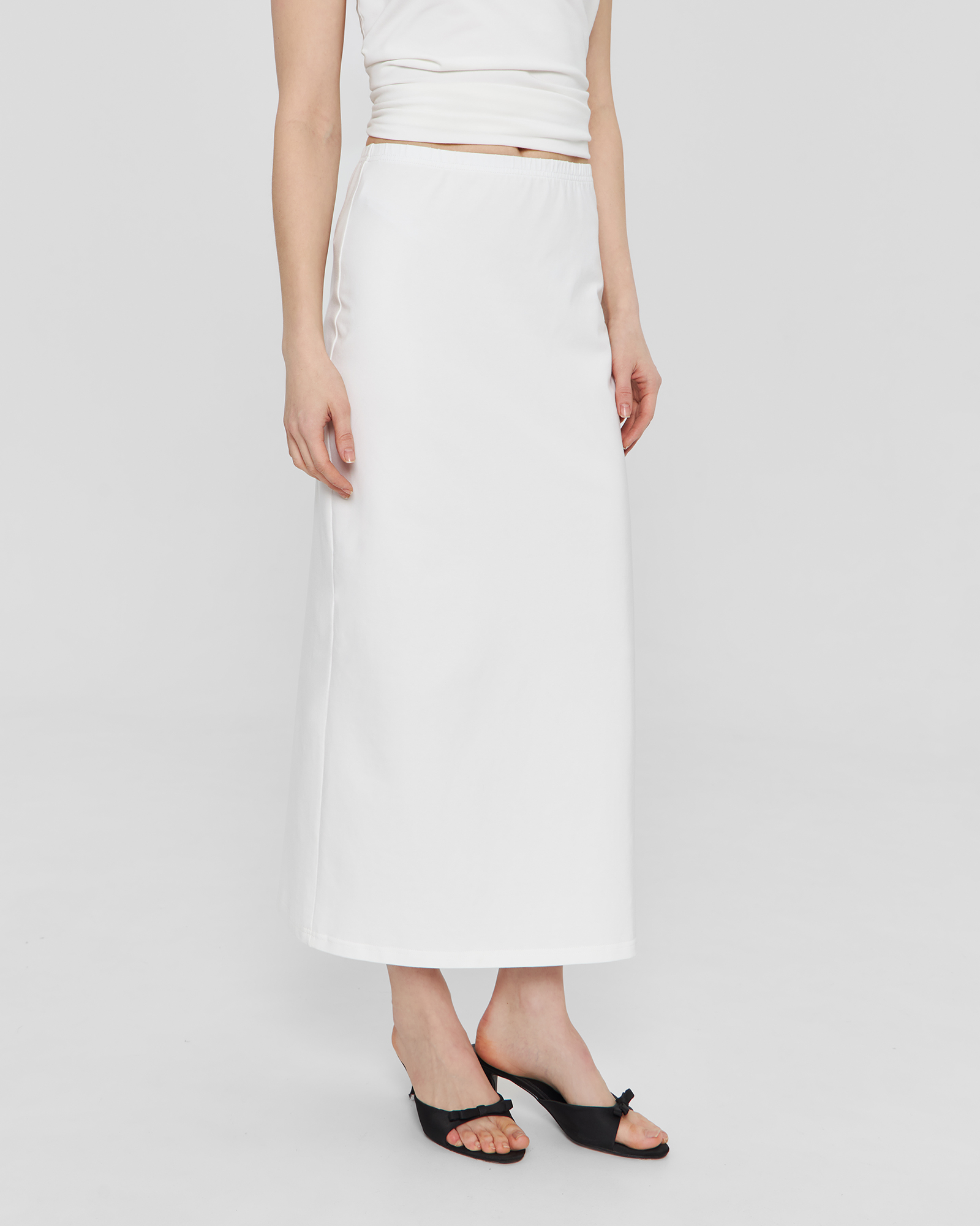 Прямая юбка на резинке в белом цвете