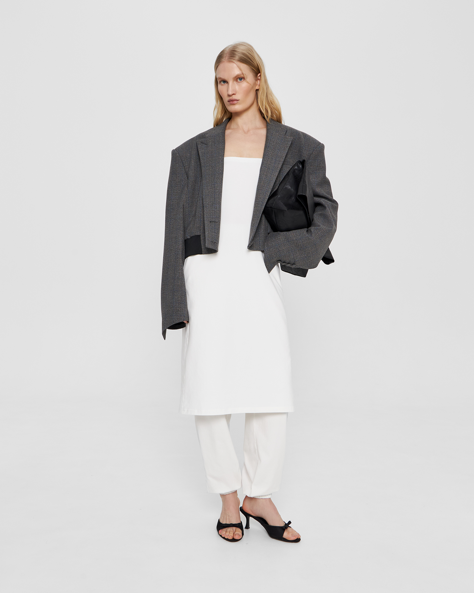 рост 175 см, обхват груди - 83 см, обхват талии - 68 см, обхват бедер - 91 см. На модели изделие в размере XS