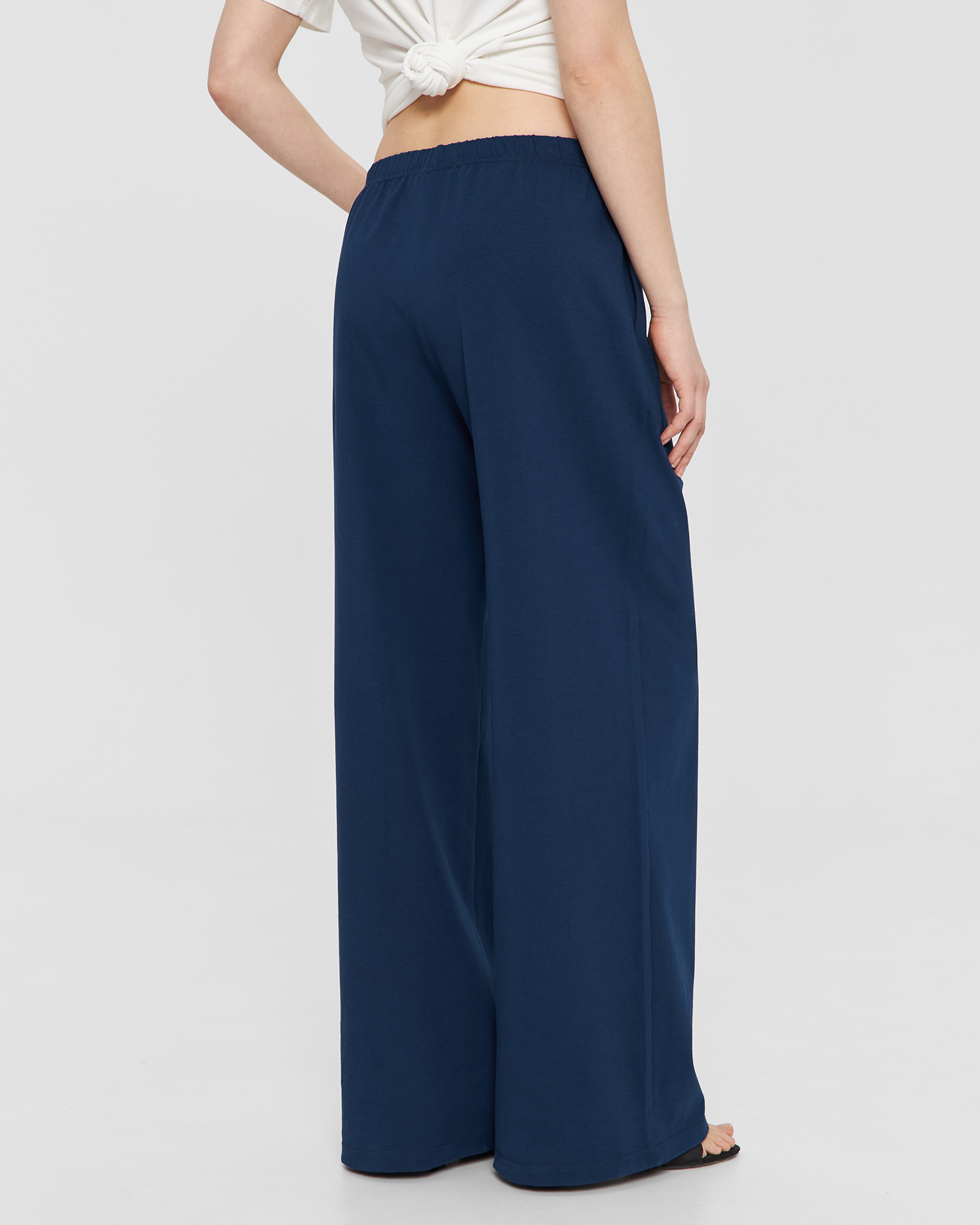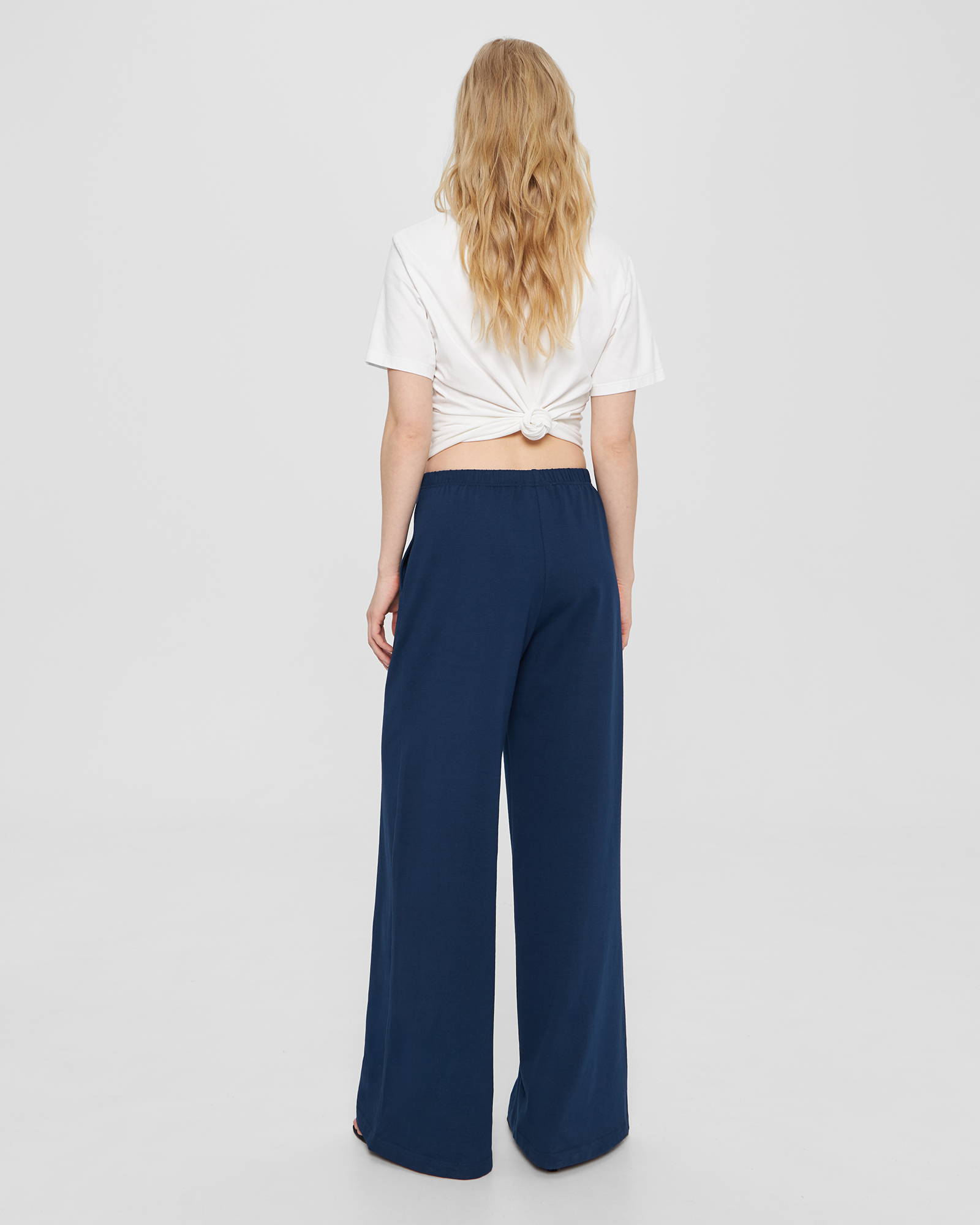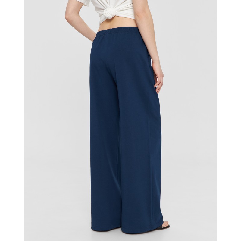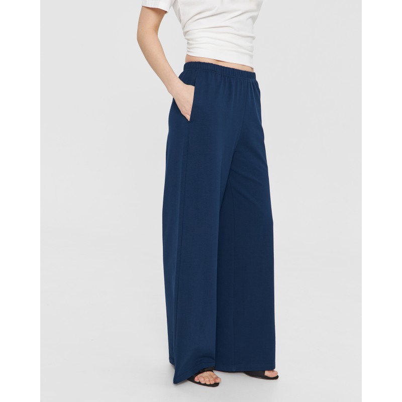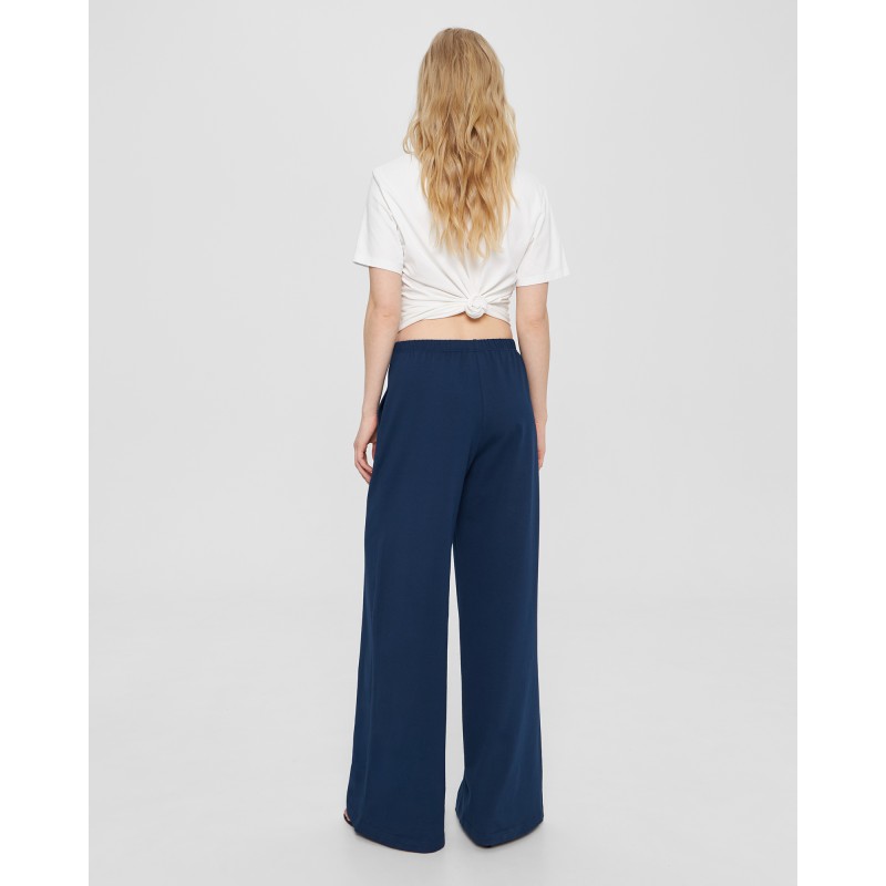 Прямые брюки на резинке в синем цвете