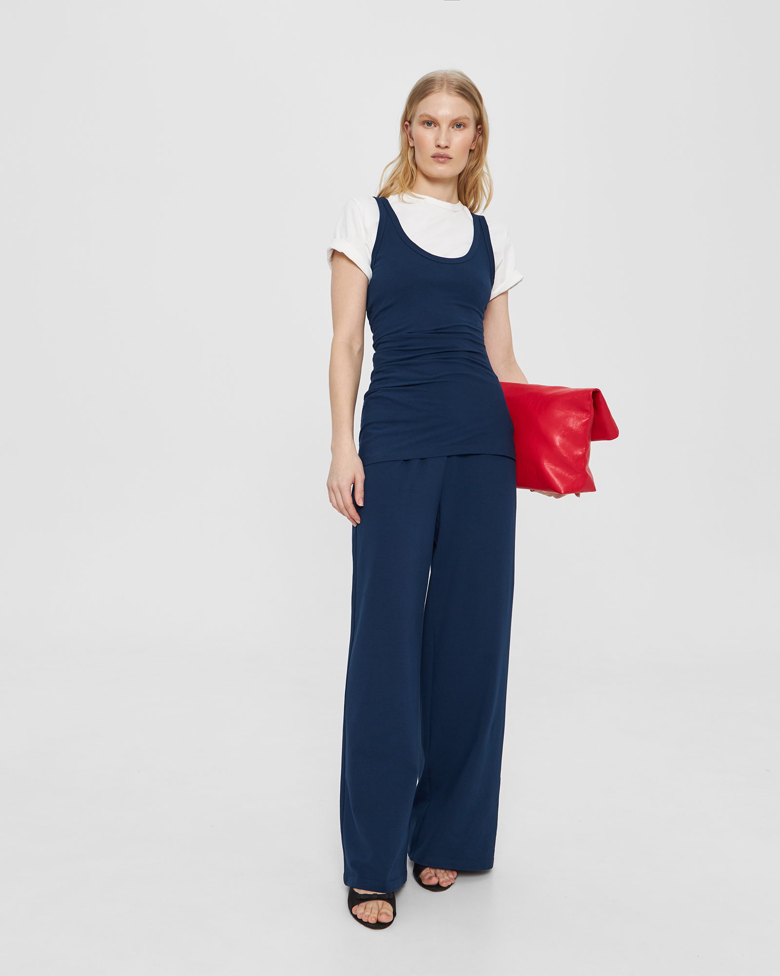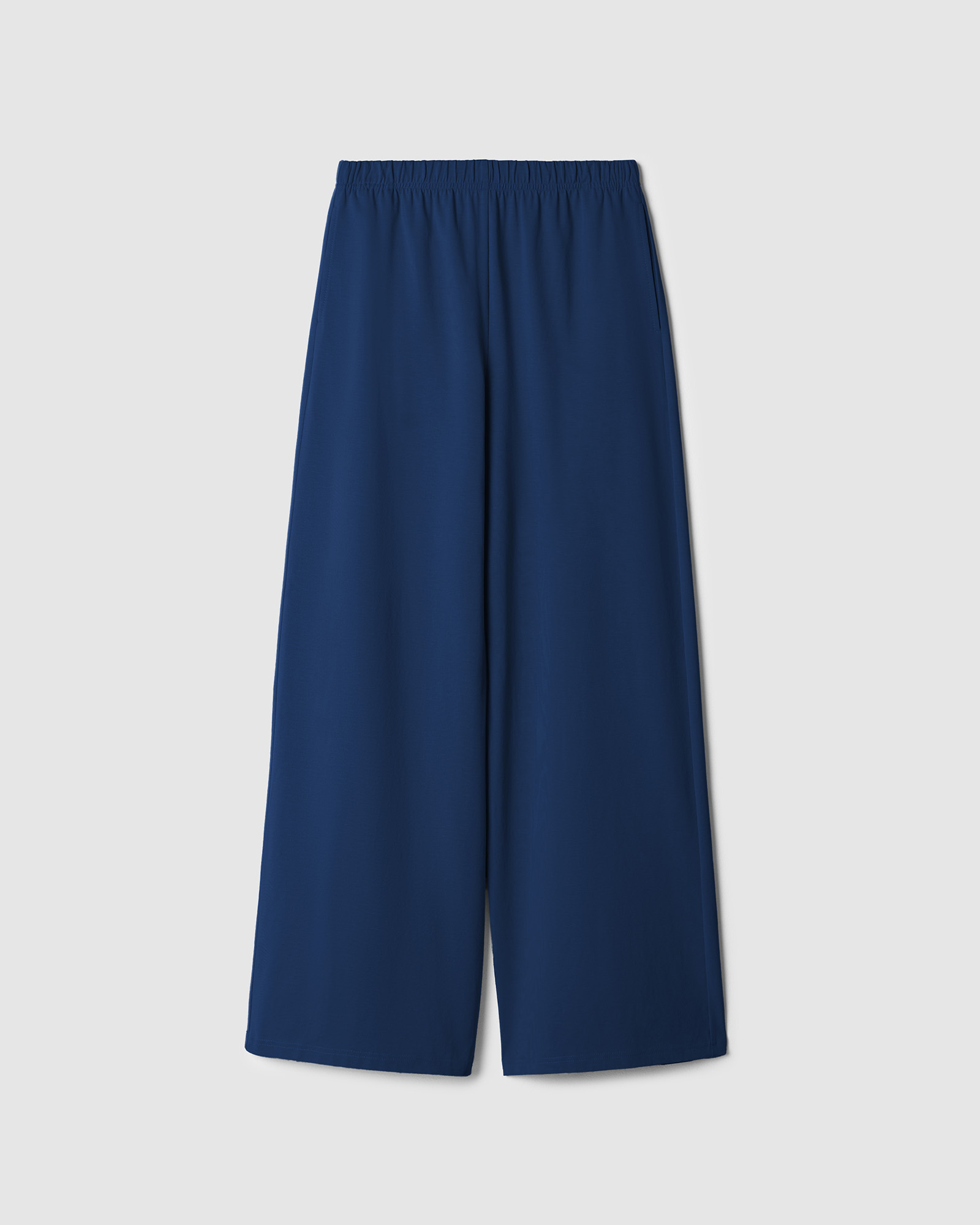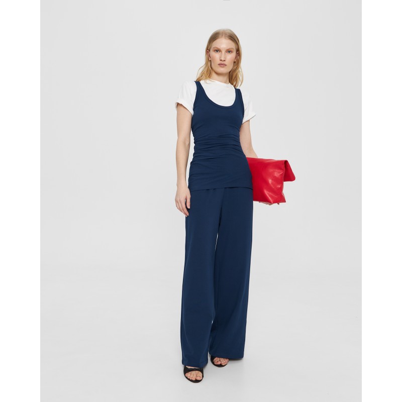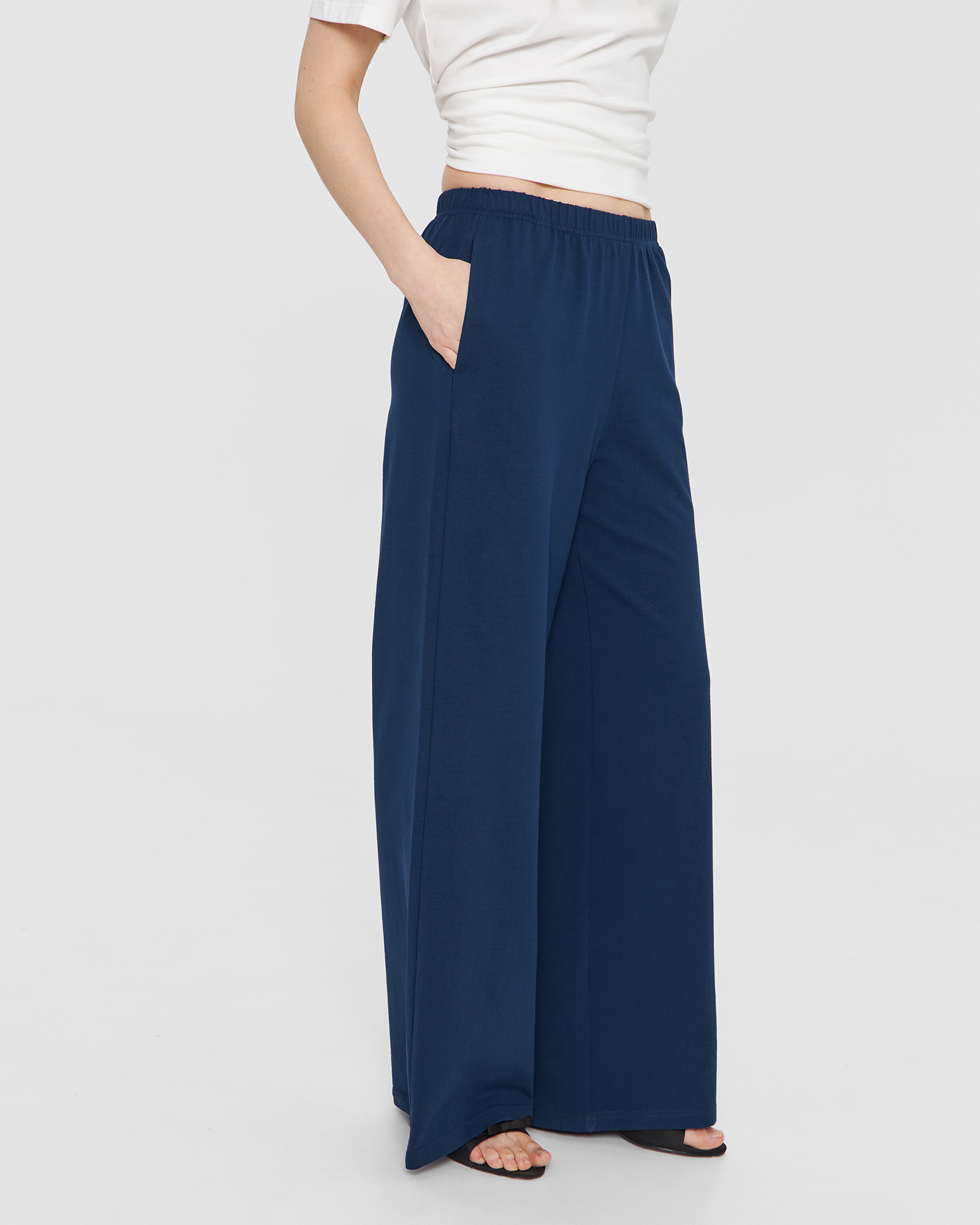Прямые брюки на резинке в синем цвете