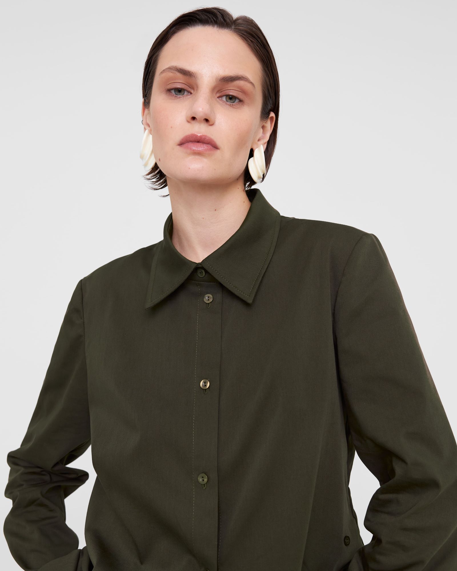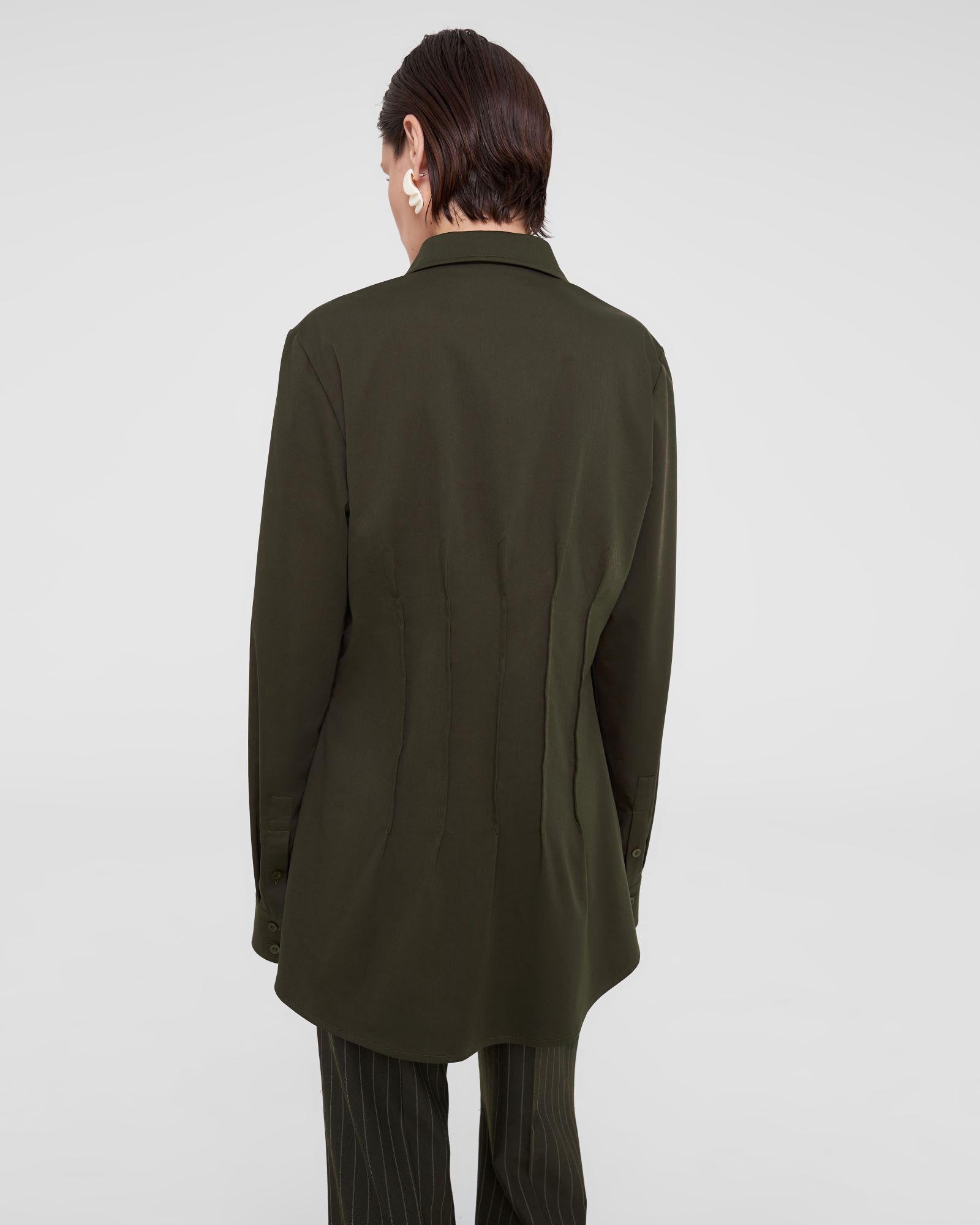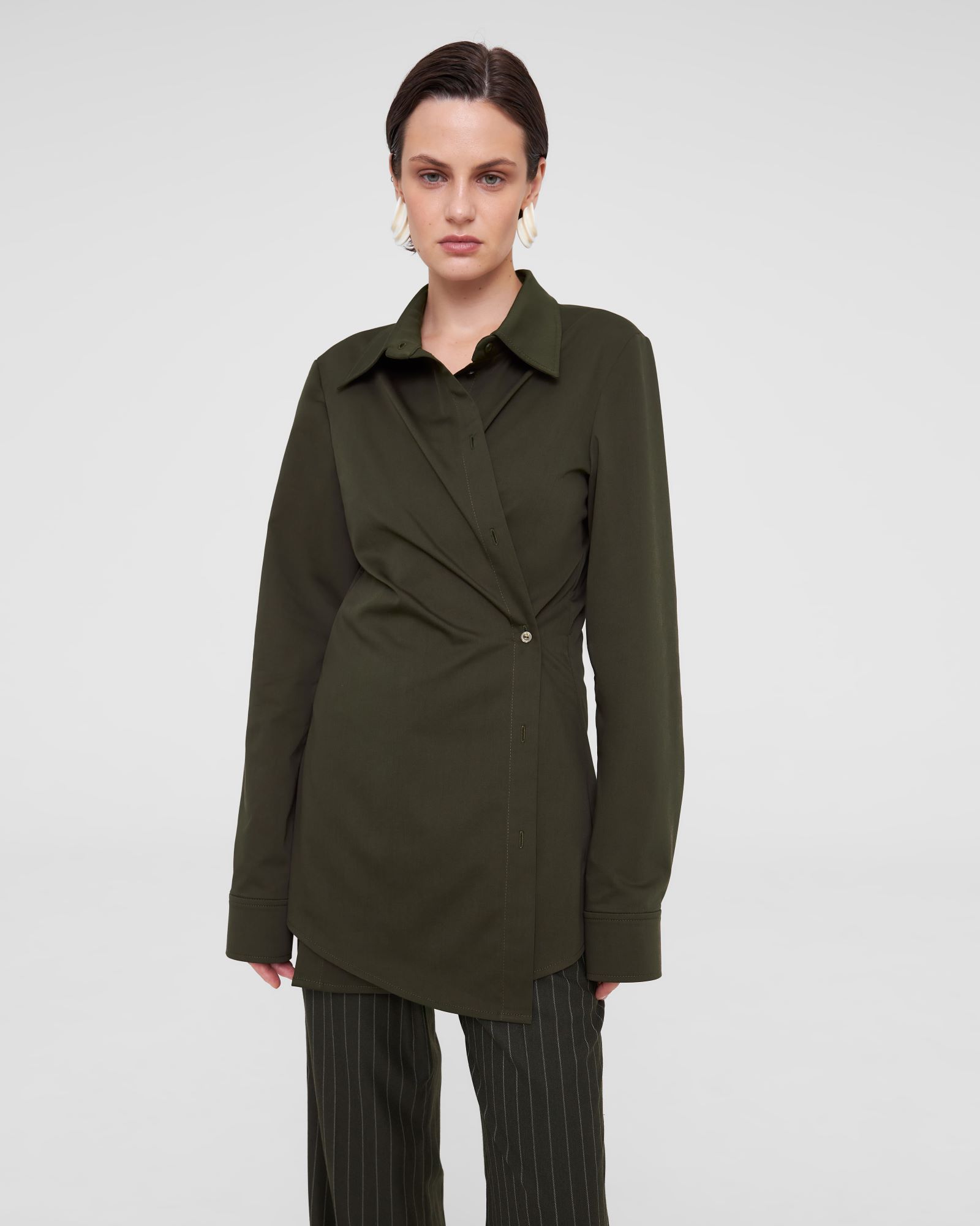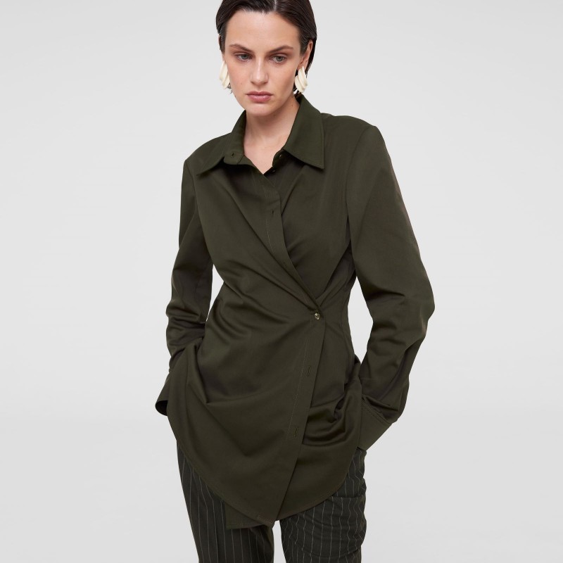 рубашка приобретает приталенный женственный силуэт с асимметричным низом в стиле