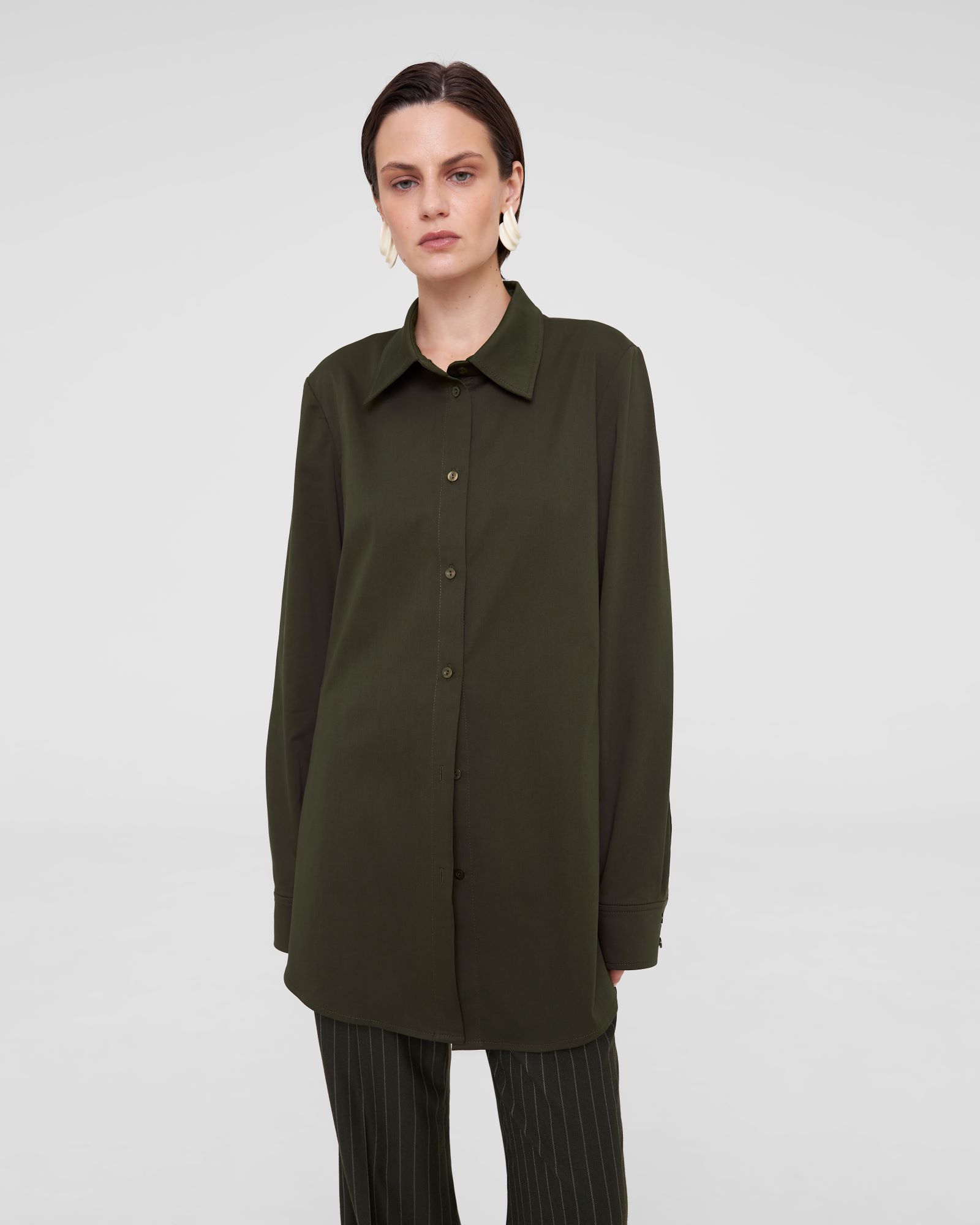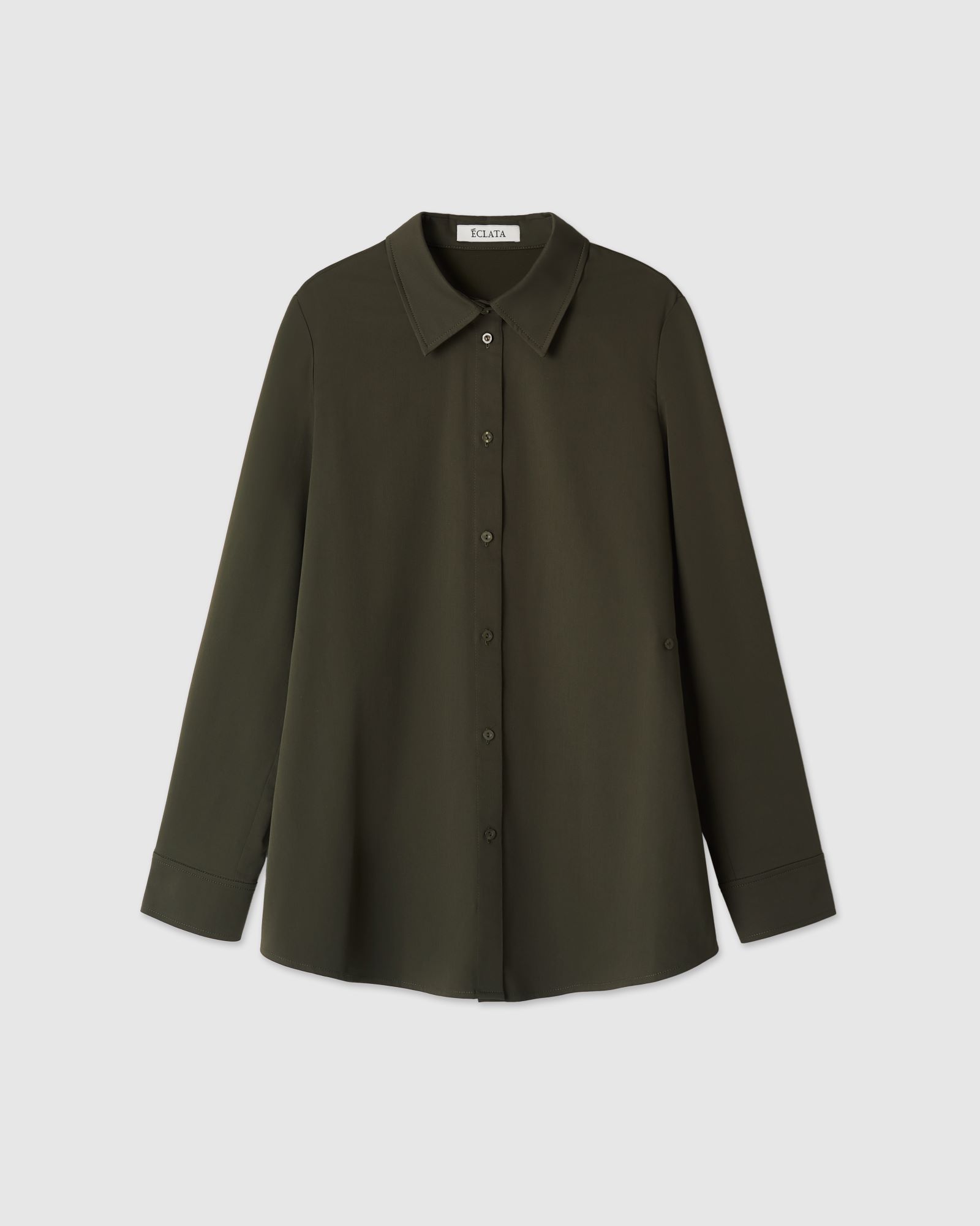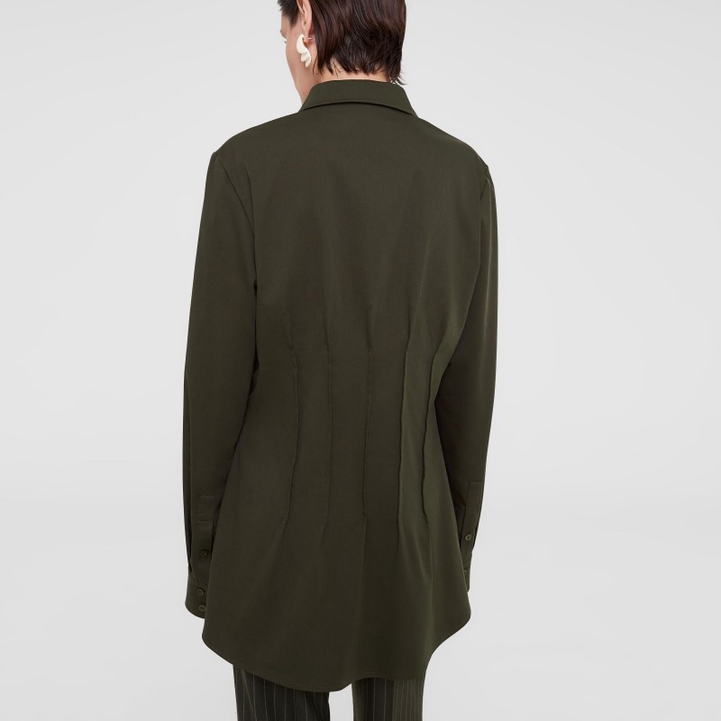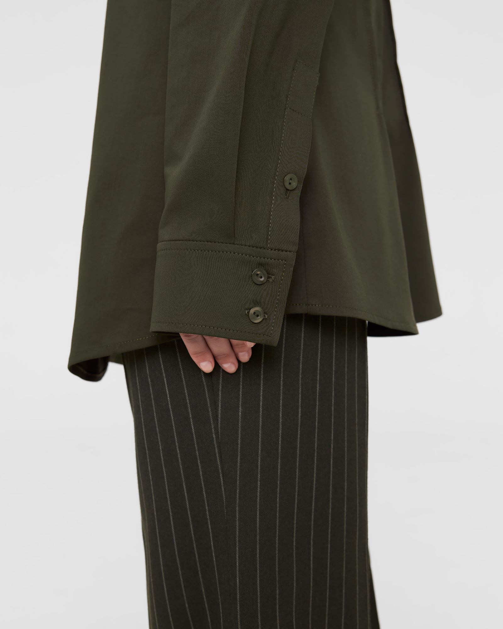 рубашка приобретает приталенный женственный силуэт с асимметричным низом в стиле