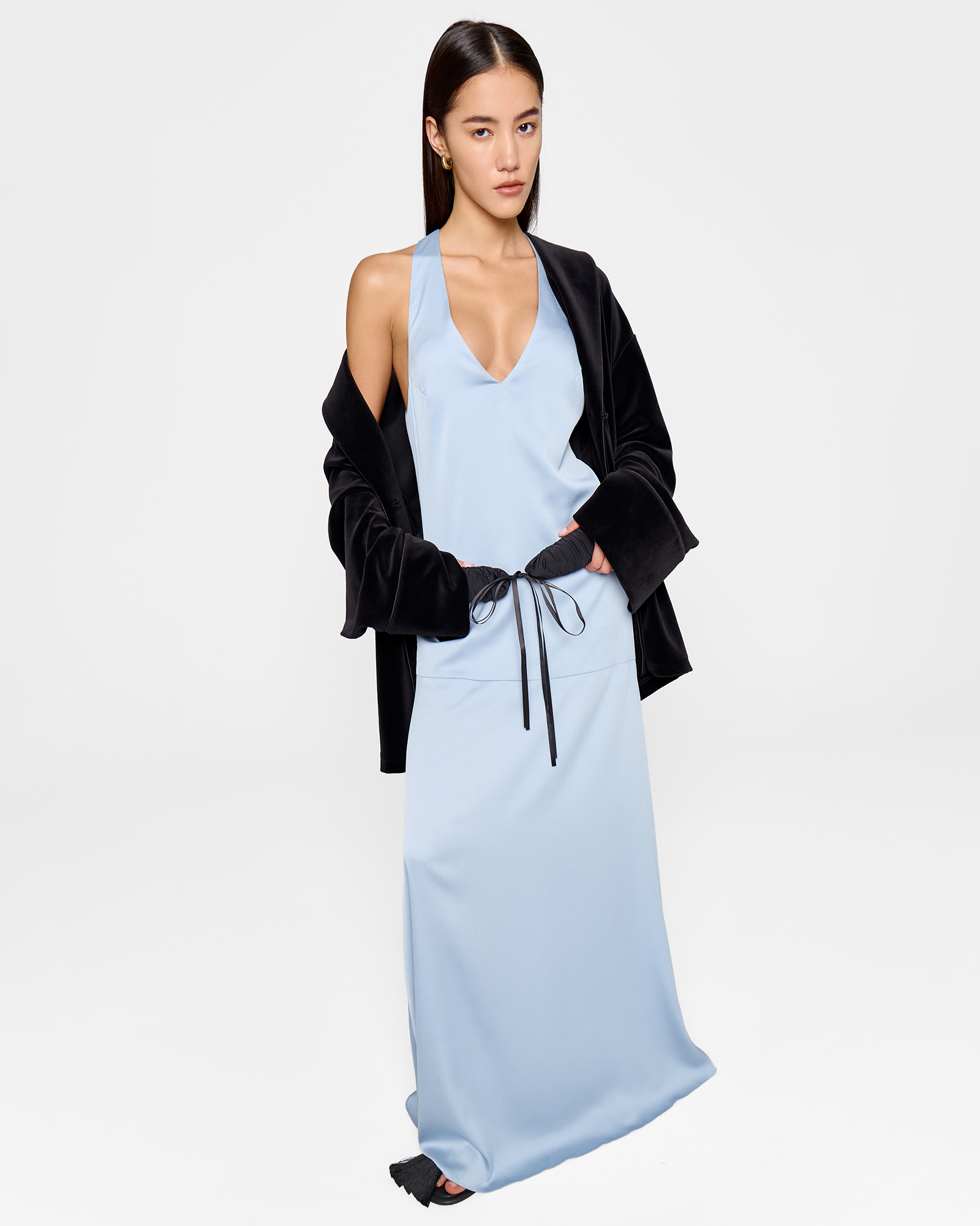 Струящееся платье-майка в голубом цвете