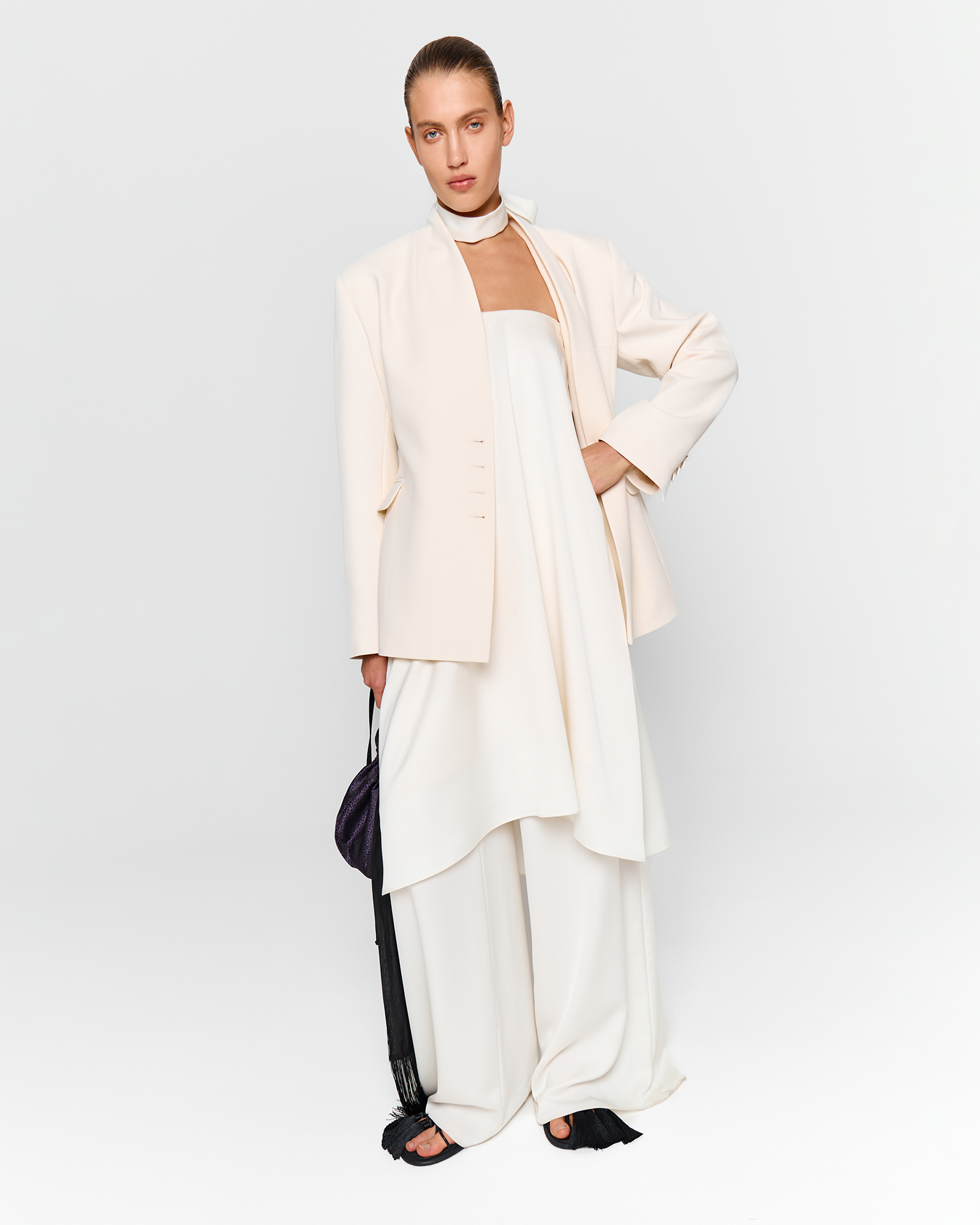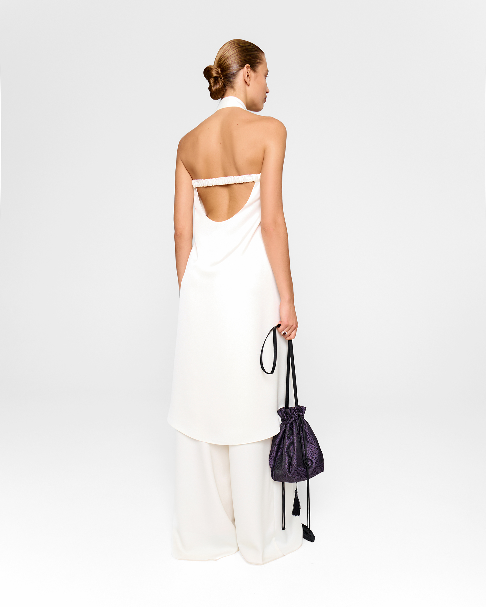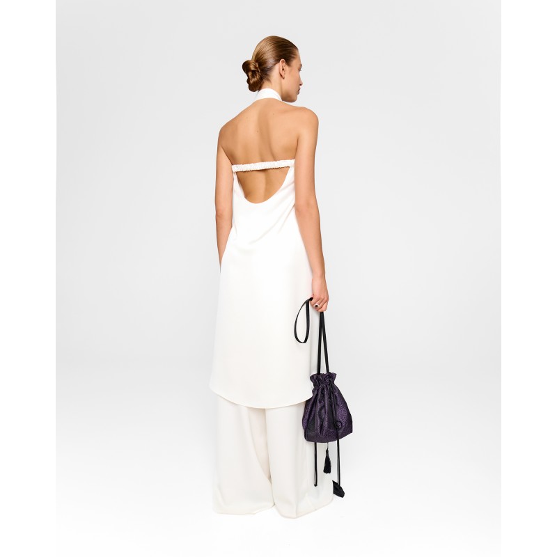 Обмеры Объем изделия на уровне груди: XS-S – 68 см, M-L – 74 см Ширина изделия на уровне низа: XS-S – 95 см, M-L – 102 см Длина изделия по спинке - 82 см Глубина выреза спинки - 16 см Длина шарфа - 220 см Ширина шарфа - 3,5 см