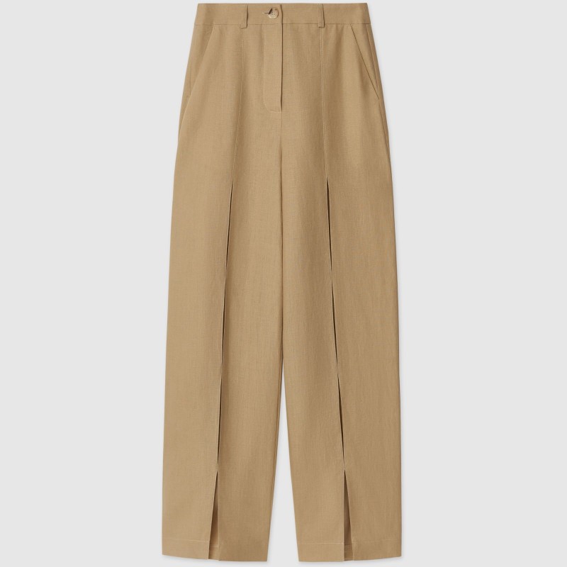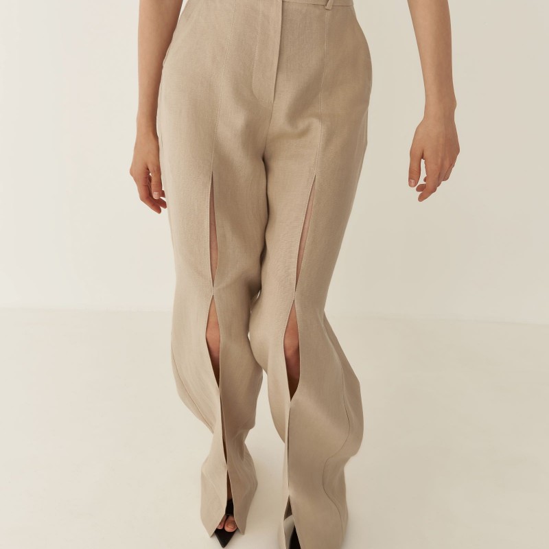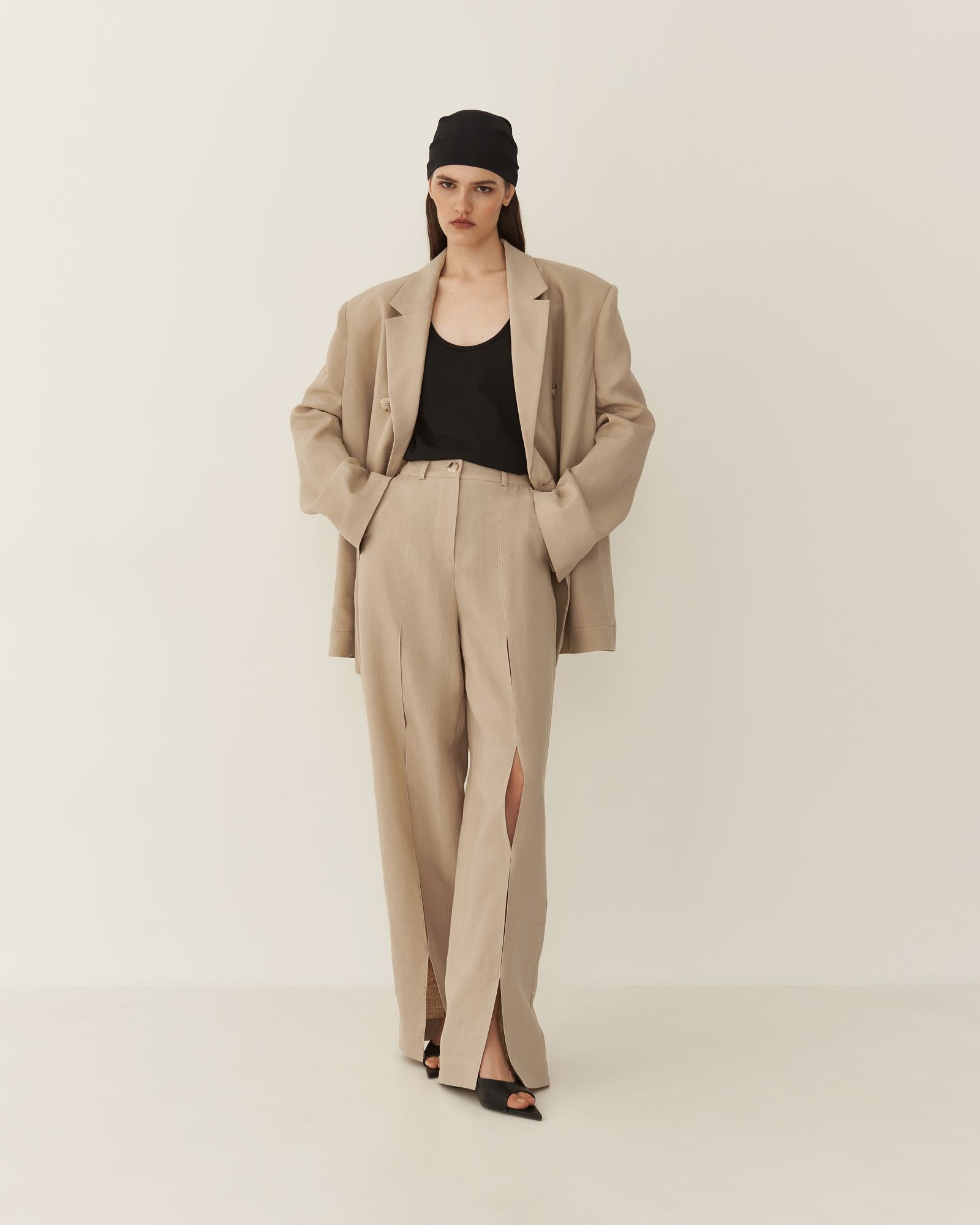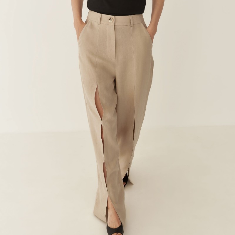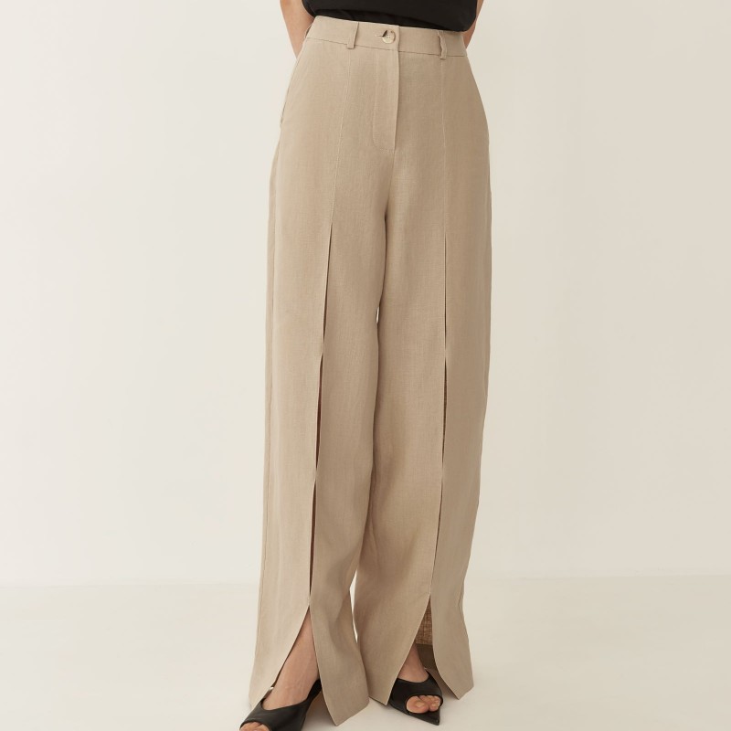 варианта низа для льняного облегченного жакета – брюки с разрезами и