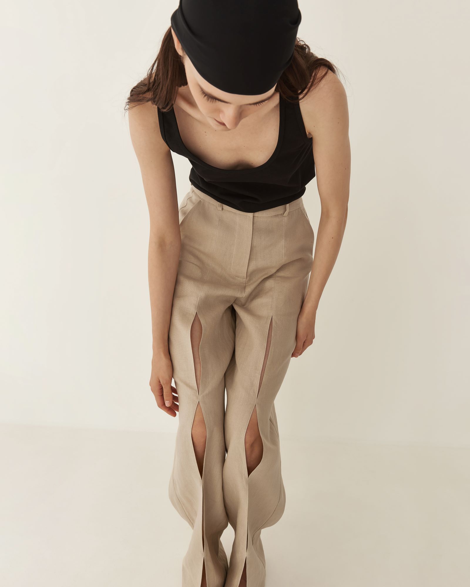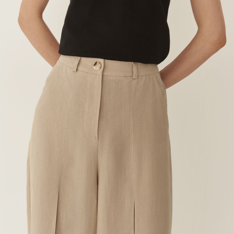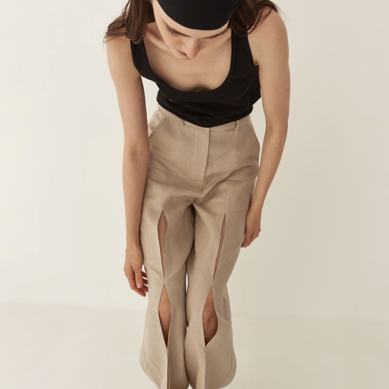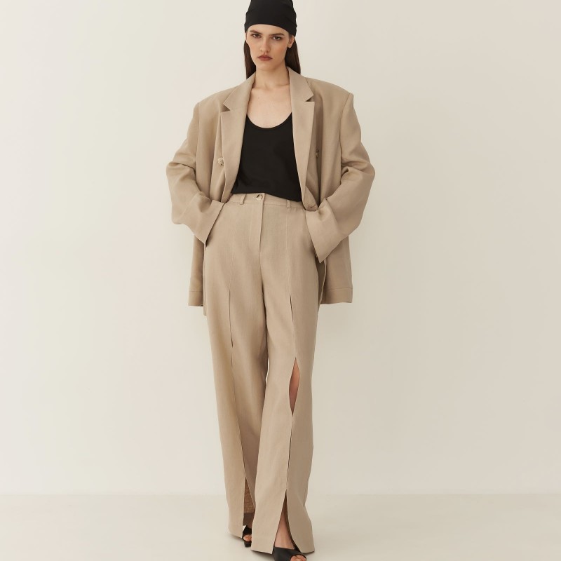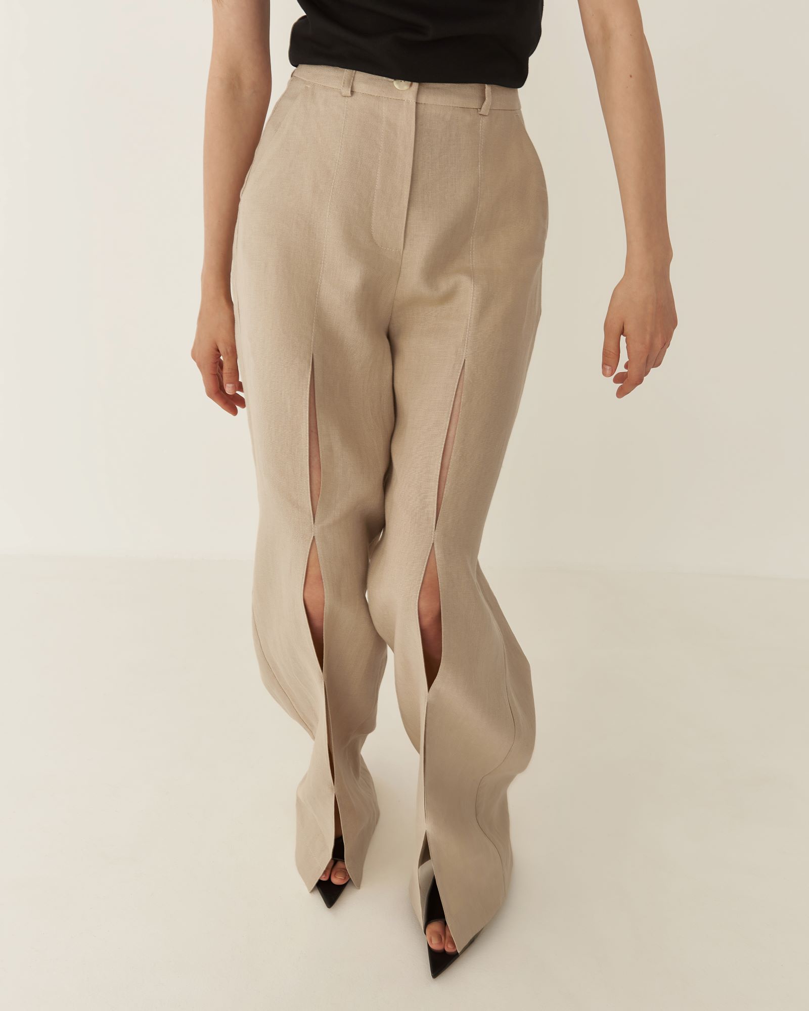 варианта низа для льняного облегченного жакета – брюки с разрезами и