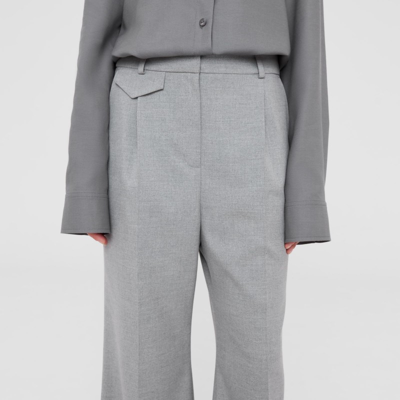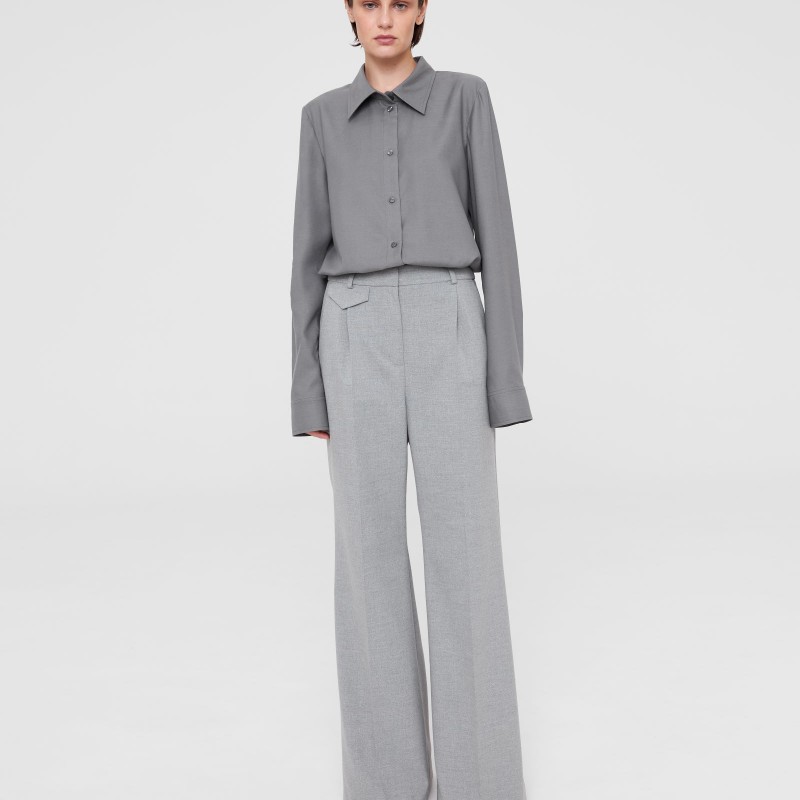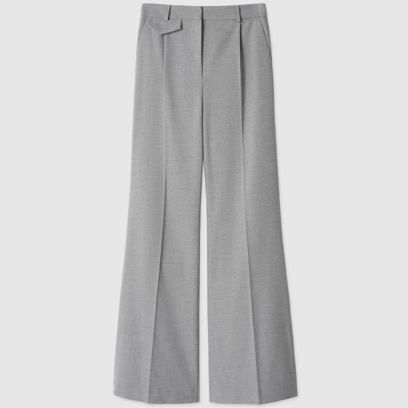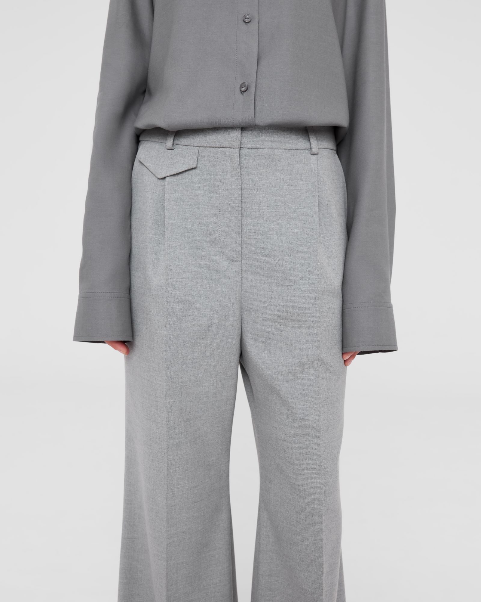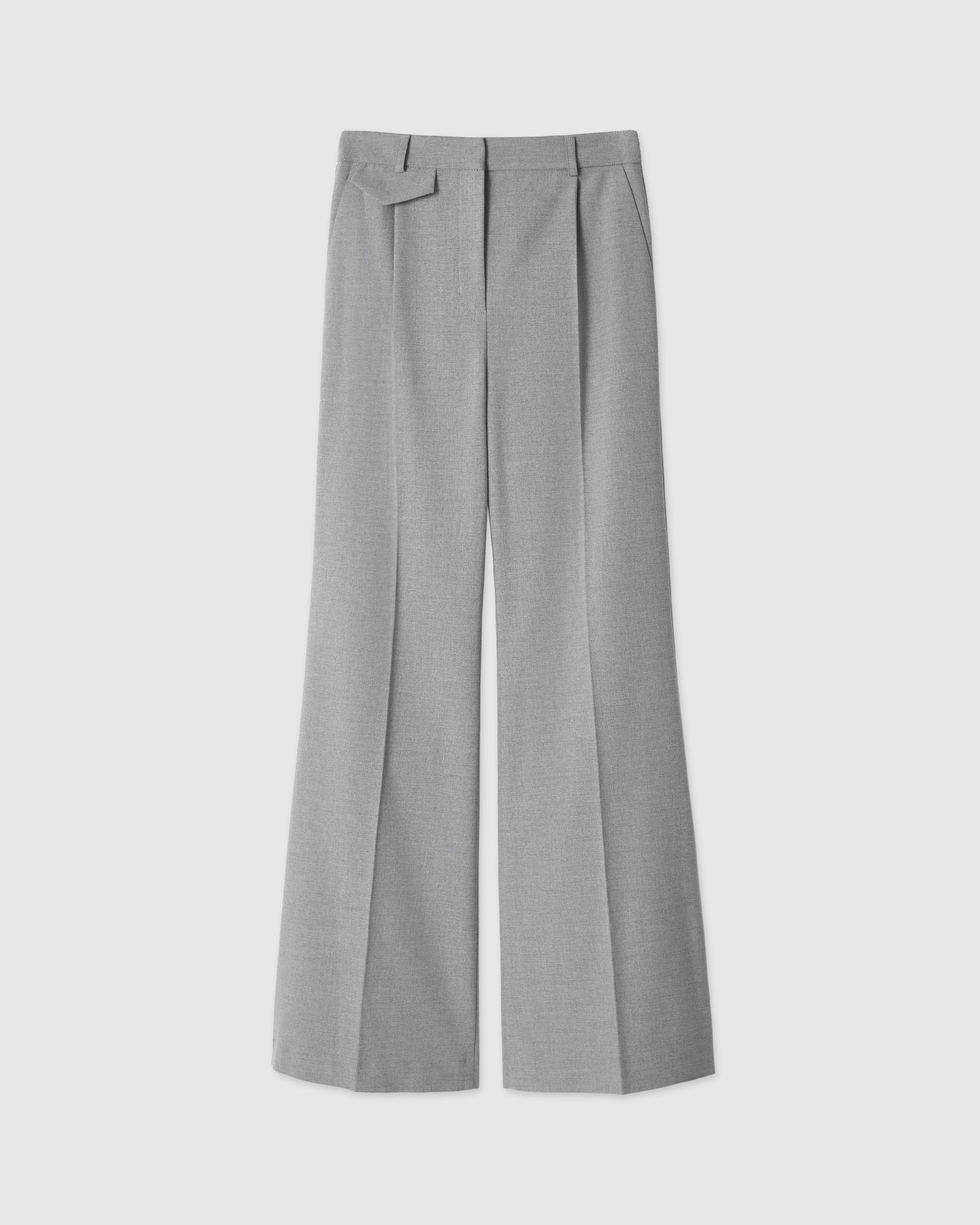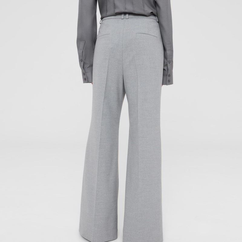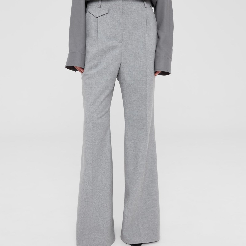 Брюки–клёш из коллекции «FLOREALE» представляют собой гармоничное сочетание традиционной классики и духа свободы. Такую модель брюк можно назвать олицетворением вольного делового стиля. Изделие на заниженной посадке имеет защипы для создания легкого объёма до колена и ненавязчивое расклешение от колена. На широком поясе со стрелками расположены шлевки для ремня и декоративный клапан. Брюки–клёш имеют глубокие боковые карманы и карманы-обманки на задней части изделия. Углубленная высота сидения позволяет зафиксировать брюки на талии ремнем.Наиболее ярко модель брюк раскрывается в тандеме с жакетом SLIM-FIT.
