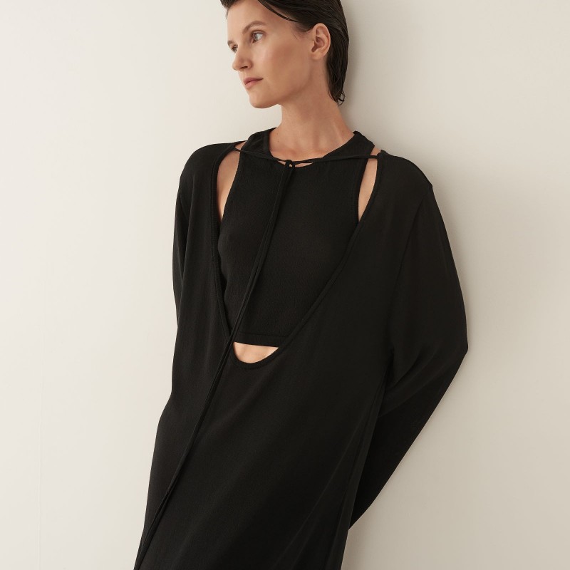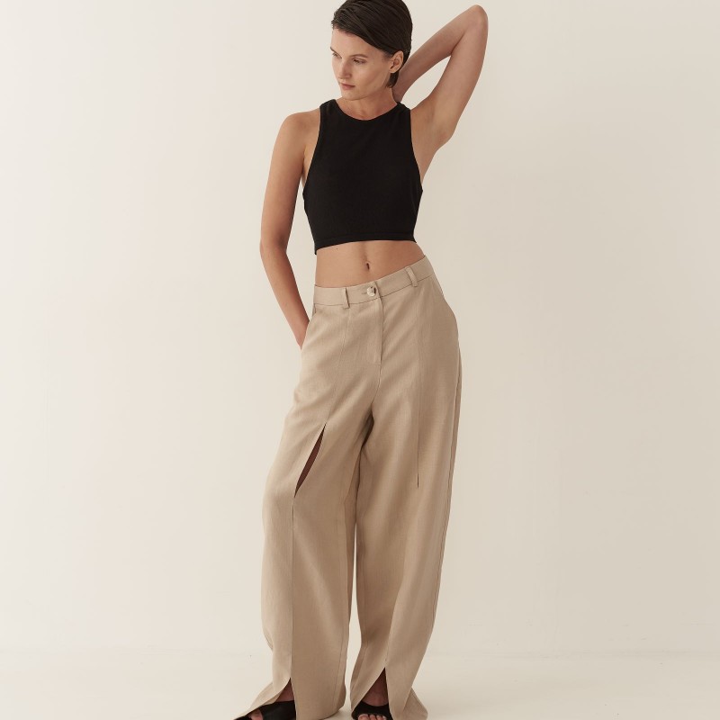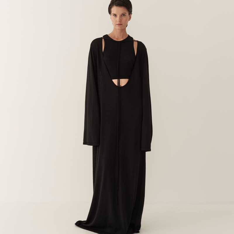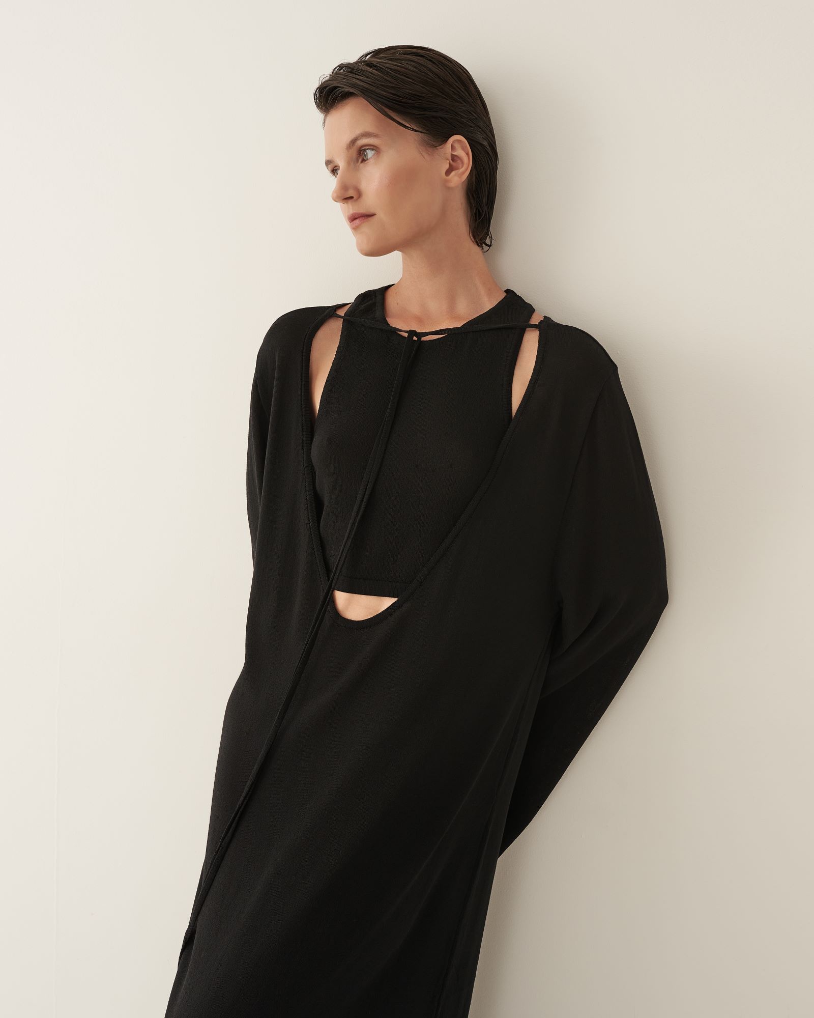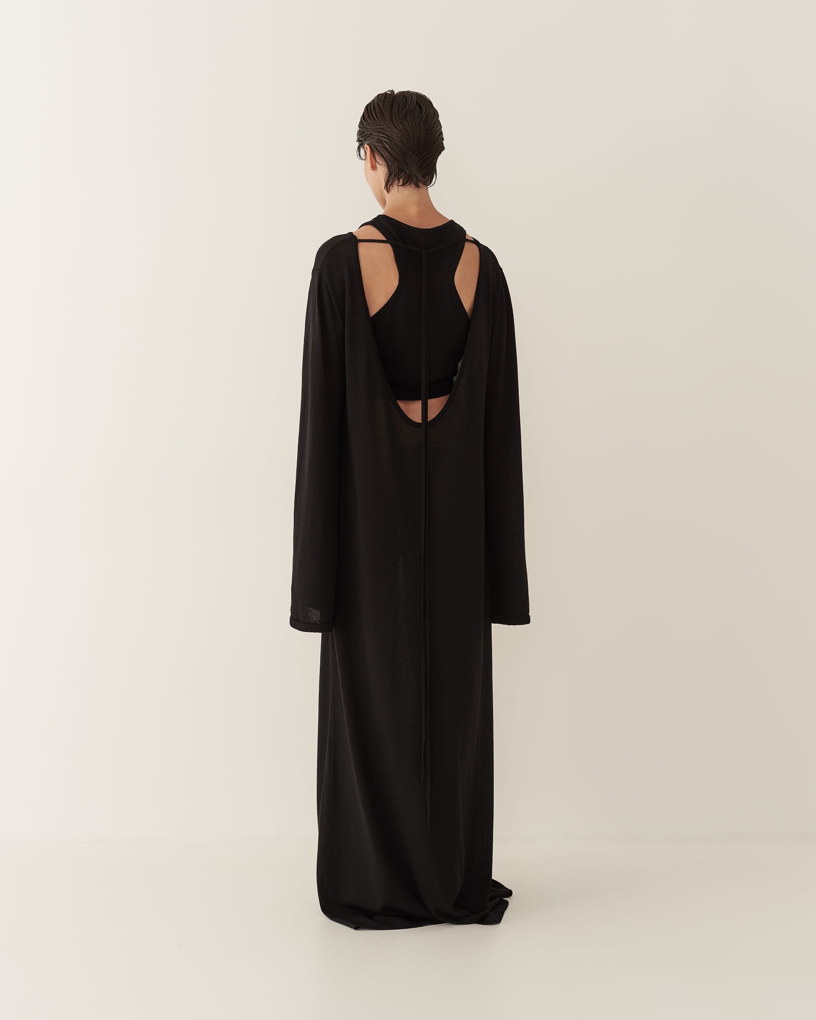 Кроп-топ из тонкого трикотажа предлагается как партнер к платью длины макси с глубоким вырезом или самостоятельное изделие. Топ имеет глубокую пройму на спинке изделия, подчеркивая красоту женского стана. Благодаря исполнению из тонкого трикотажа, топ создает ощущение невесомой второй кожи.