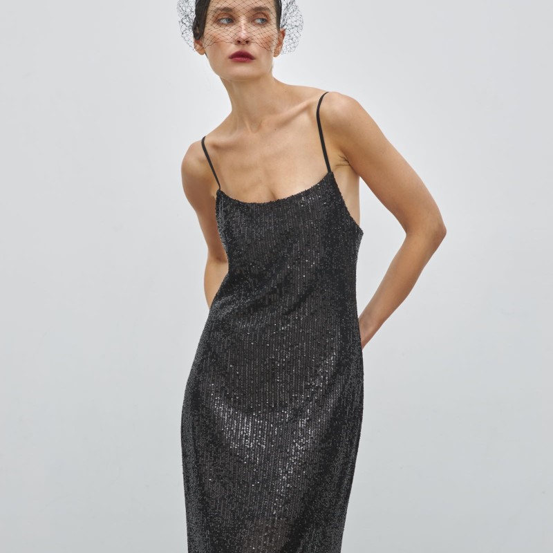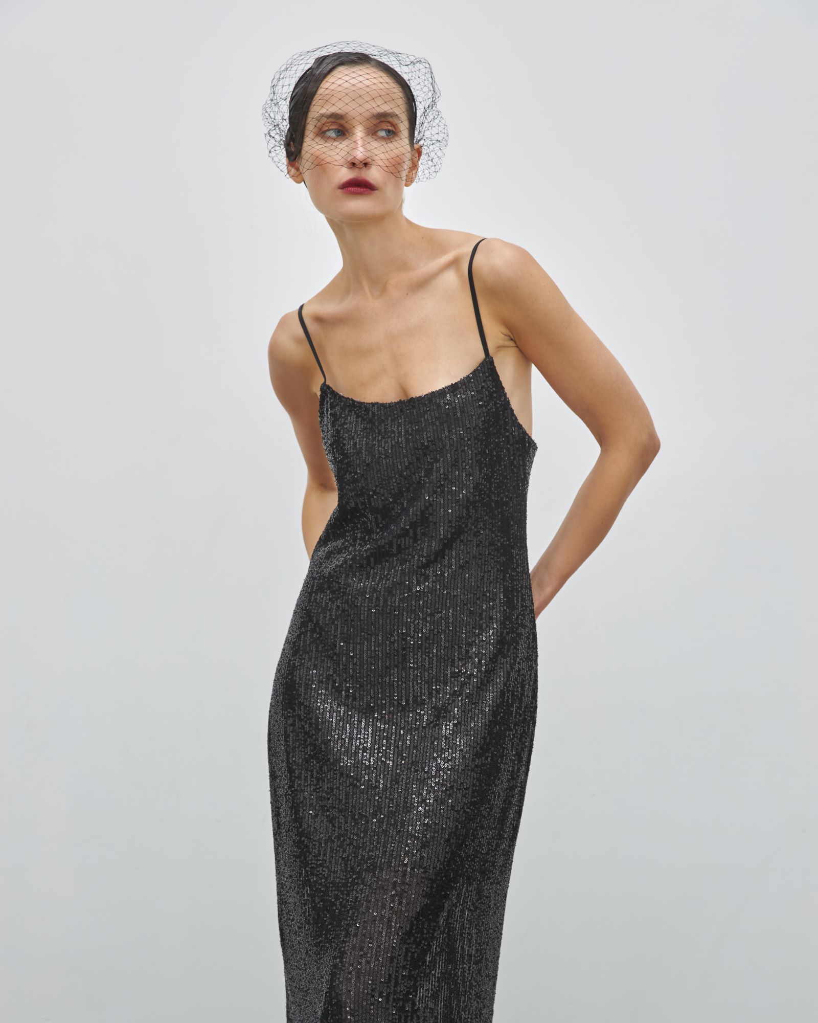 самодостаточная модель, главным акцентом которой будет сама героиня. Платье в минималистичном стиле на тонких регулируемых бретелях