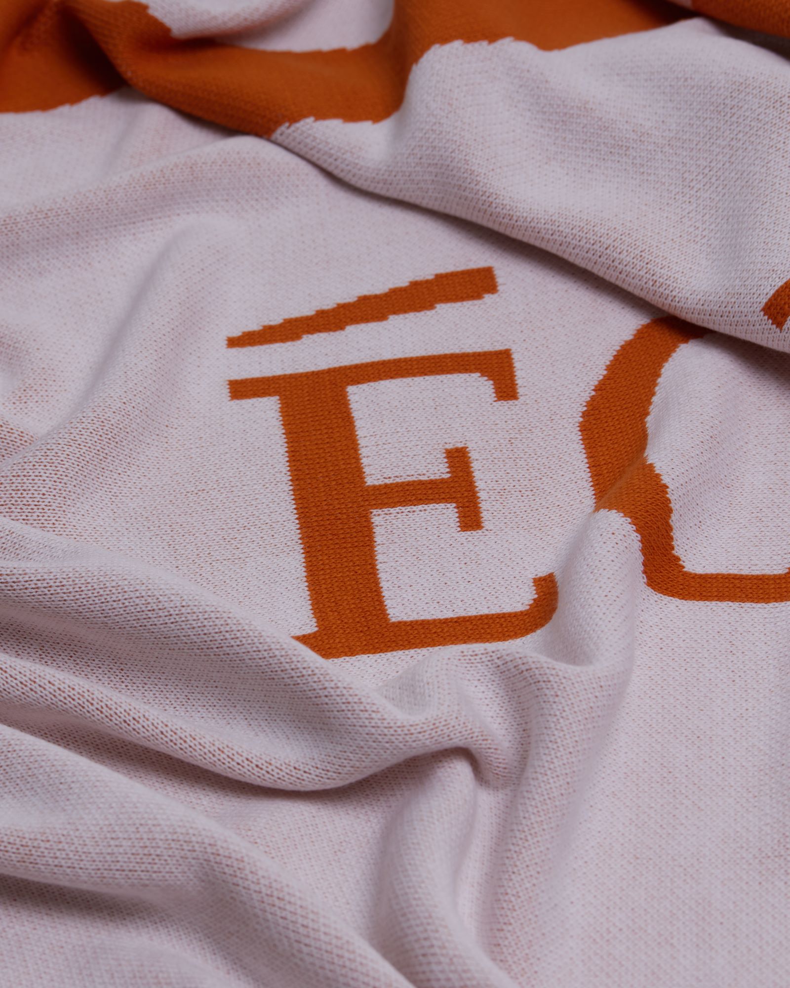 плед выполнен в технике жаккардового переплетения с уникальным дизайном бренда.