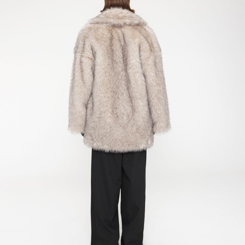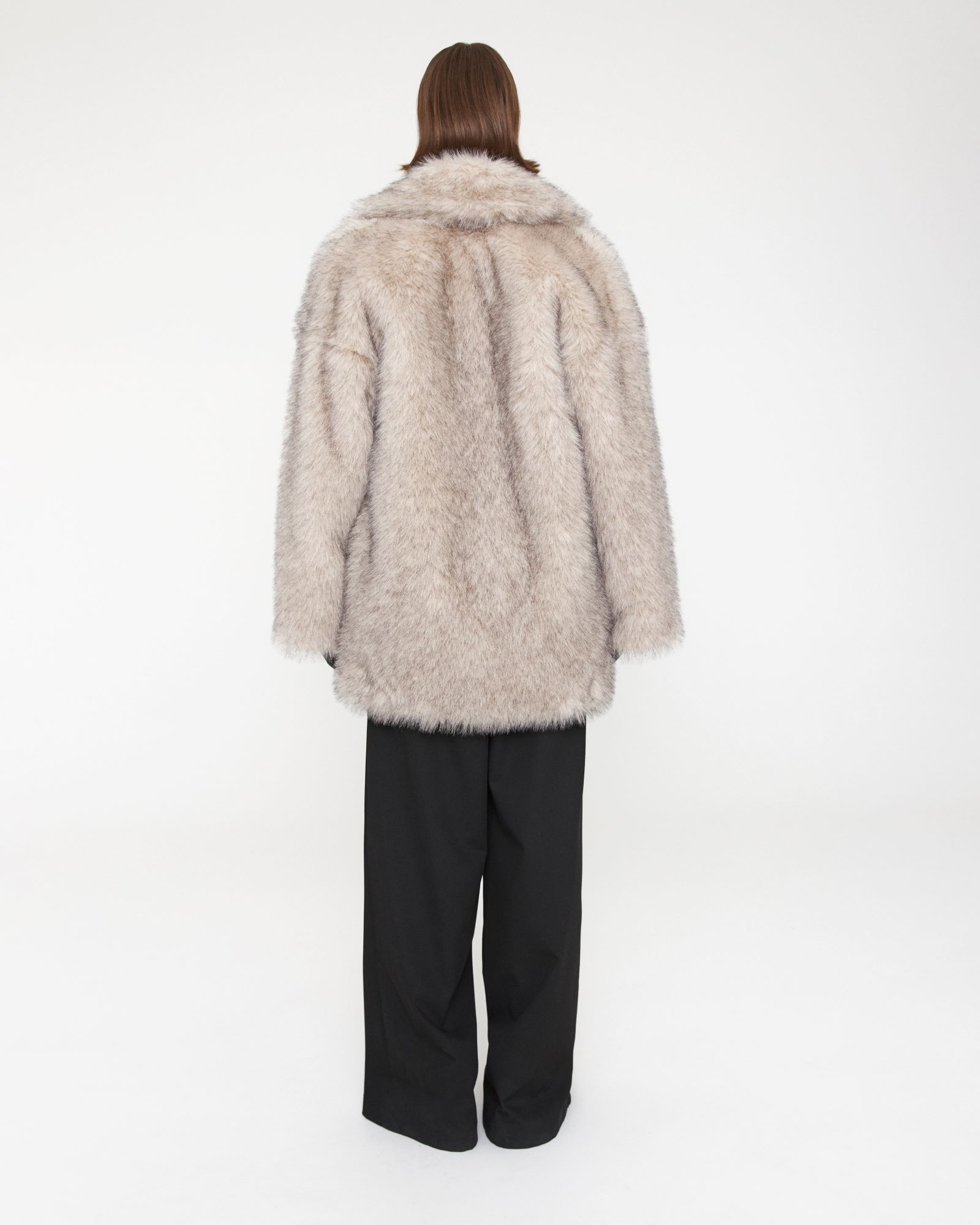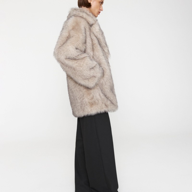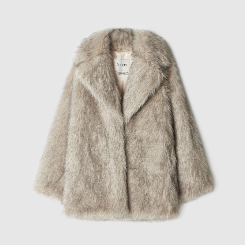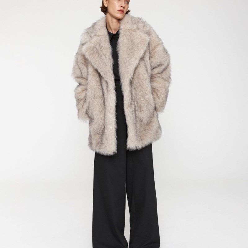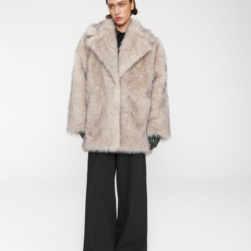 носке. Шуба прямого кроя с эффектом под песца имеет широкий английский воротник,