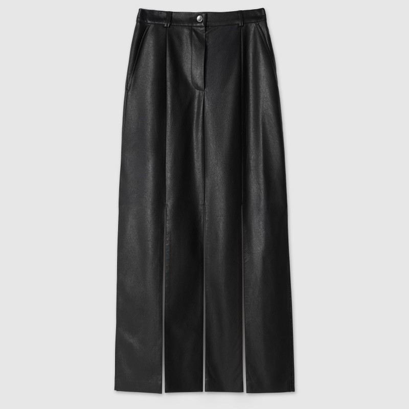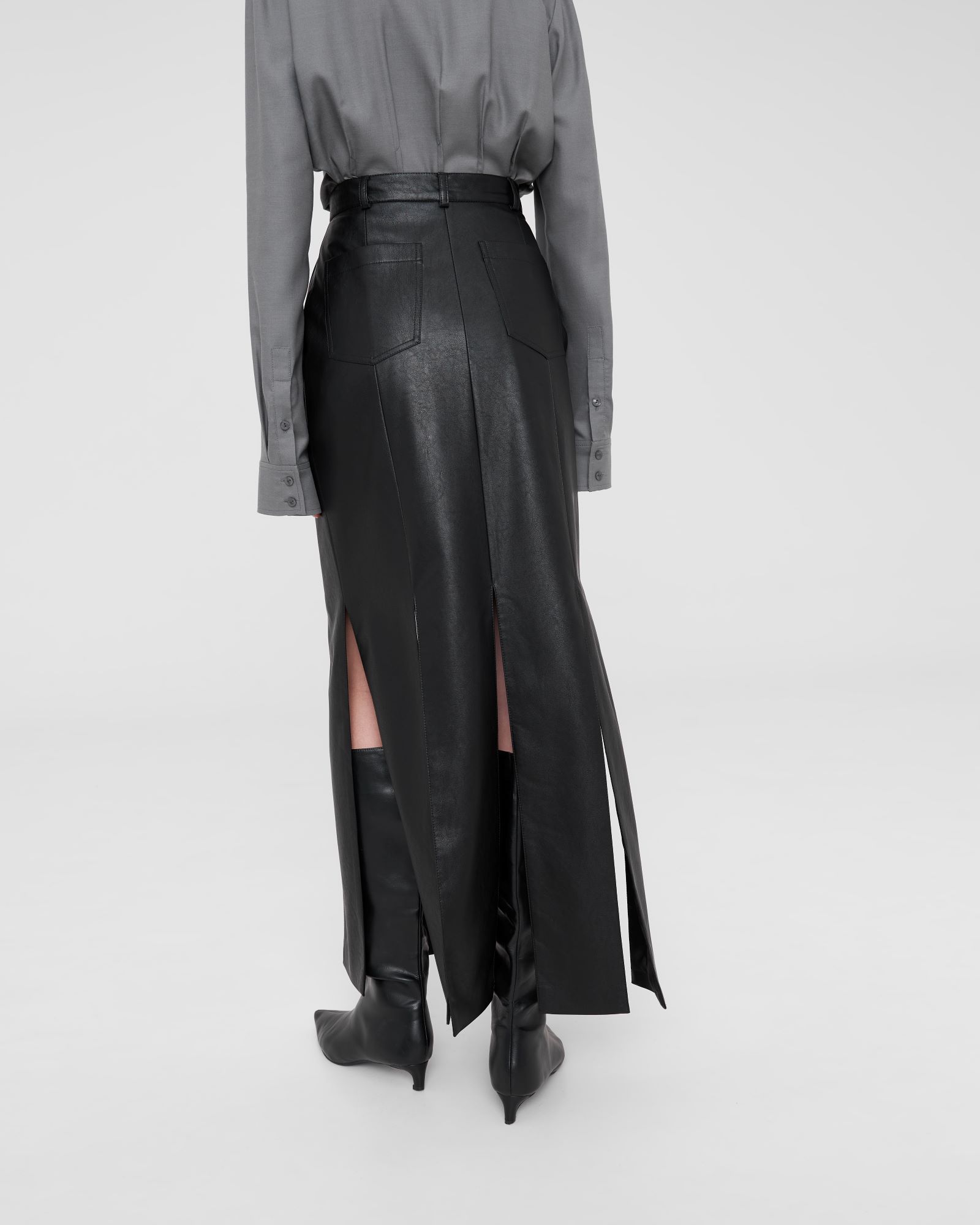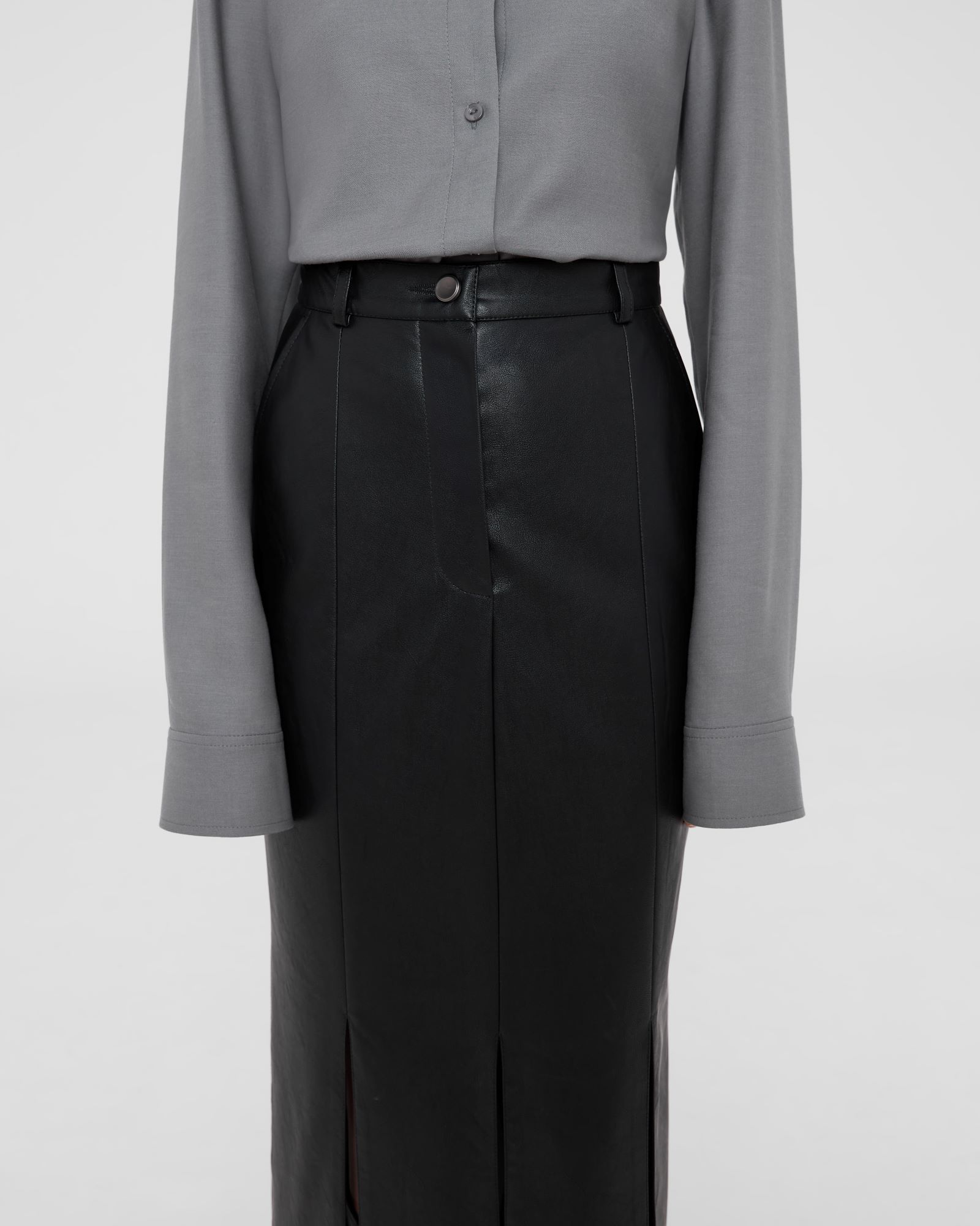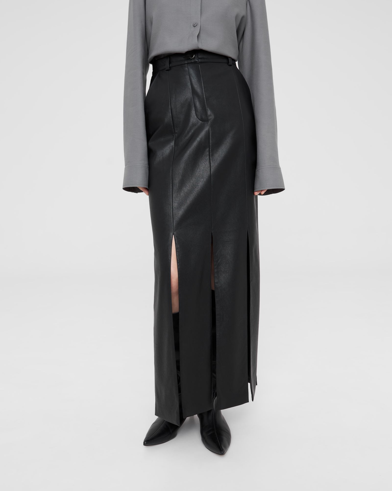 Юбка длины макси с разрезами из экокожи воплощает образ современной женственности утонченной, но самобытной героини.