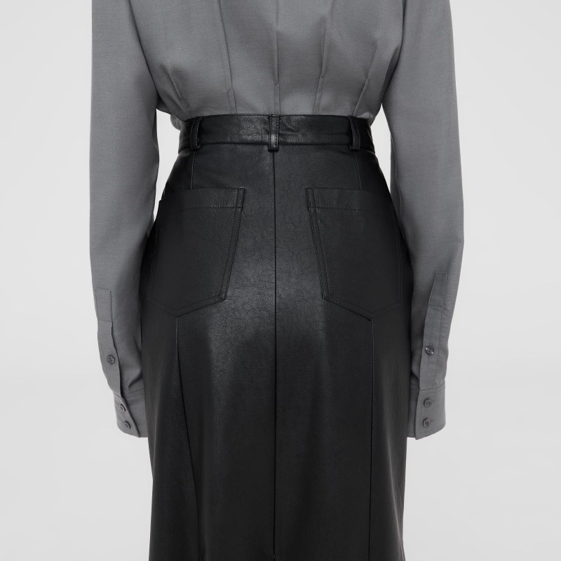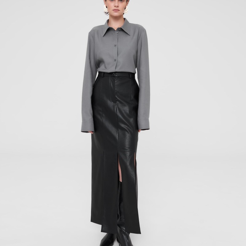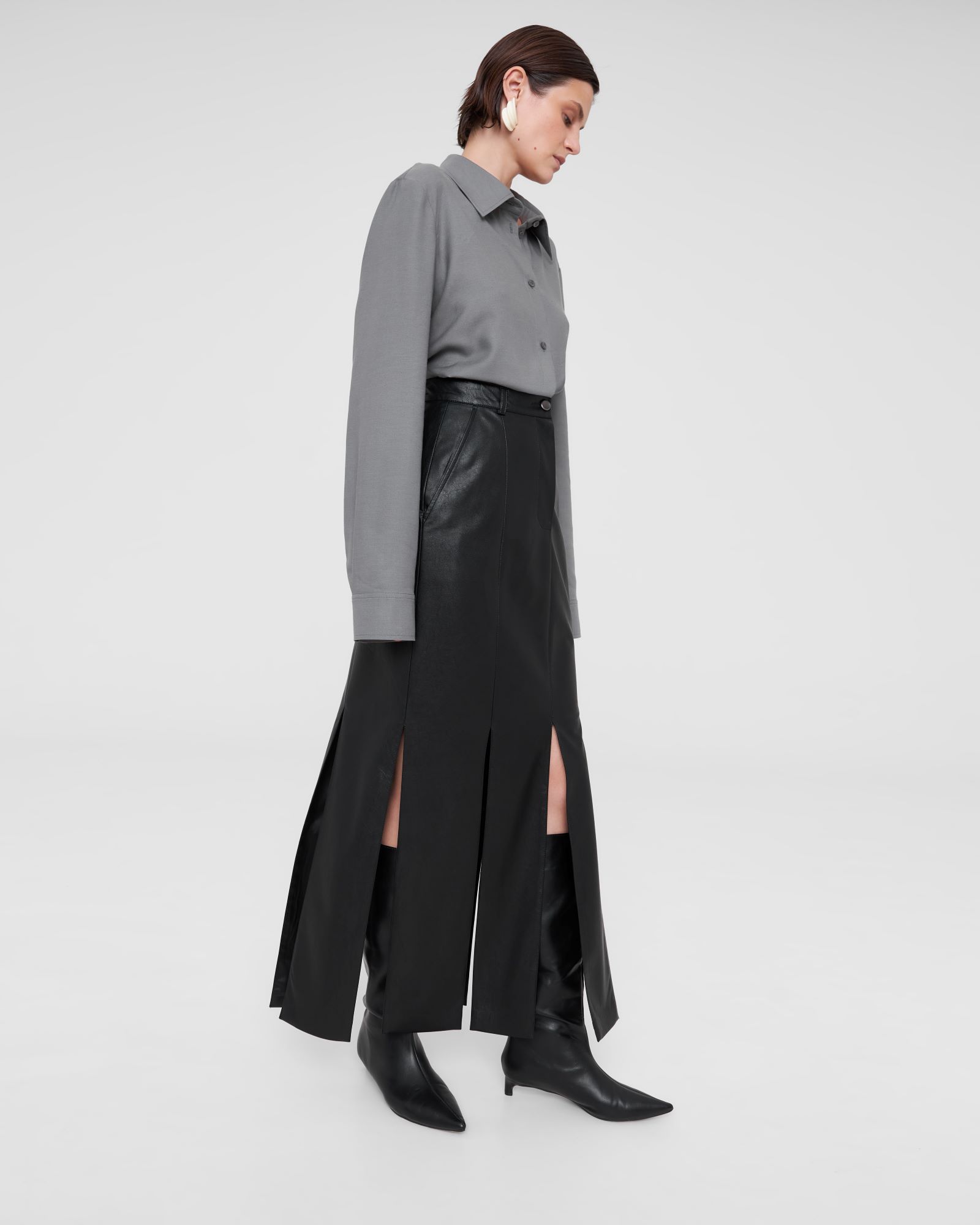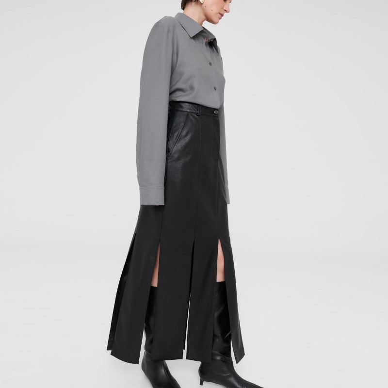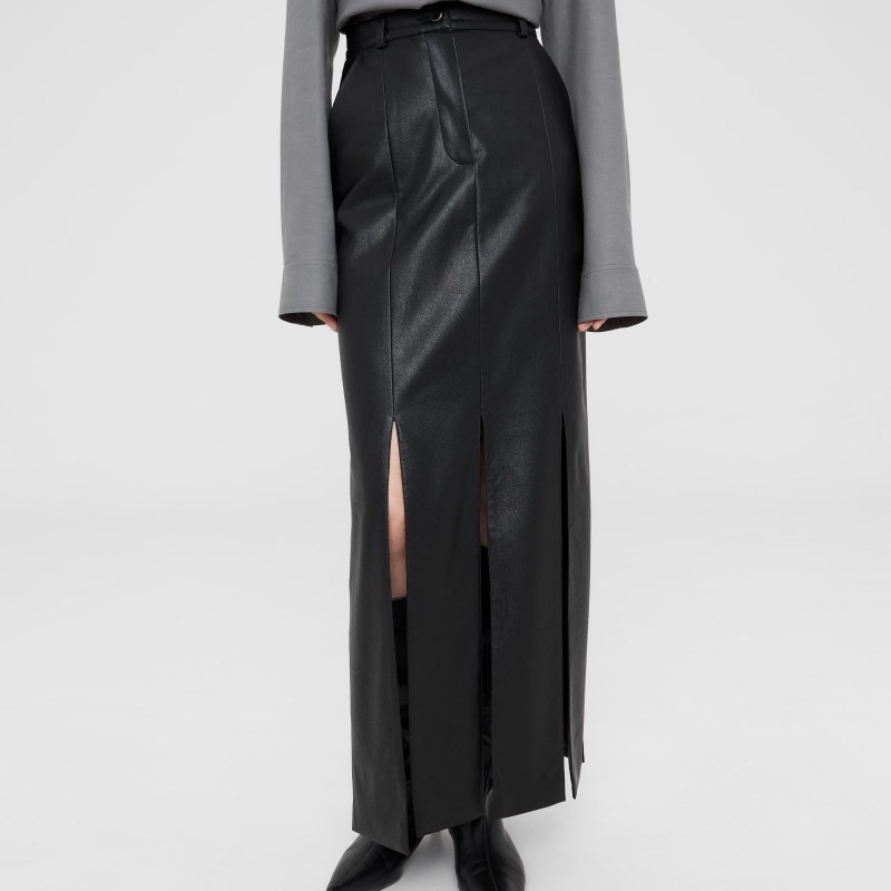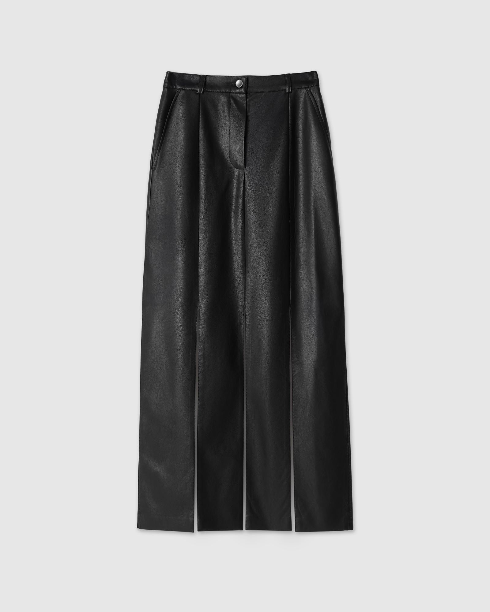 Юбка длины макси с разрезами из экокожи воплощает образ современной женственности утонченной, но самобытной героини.