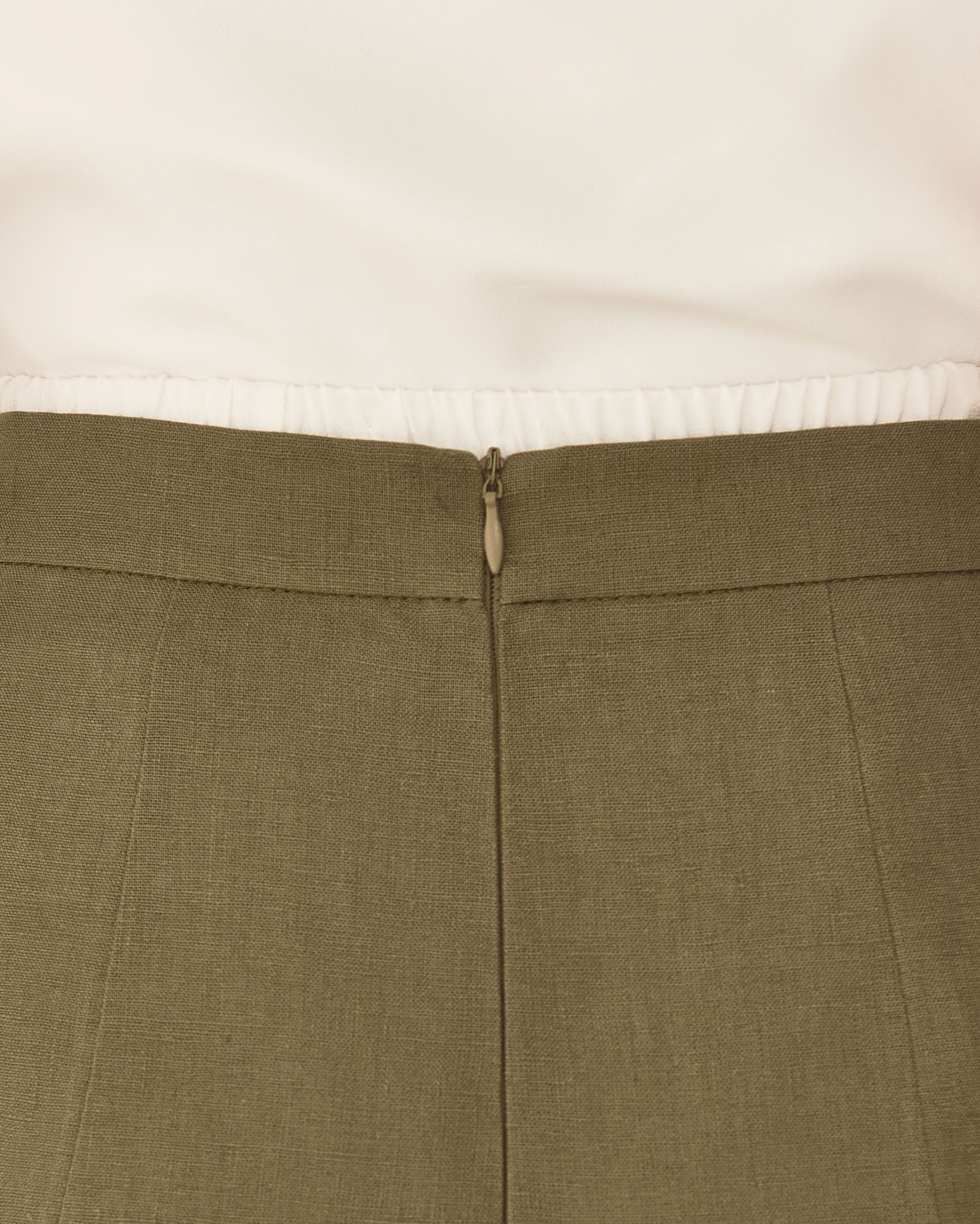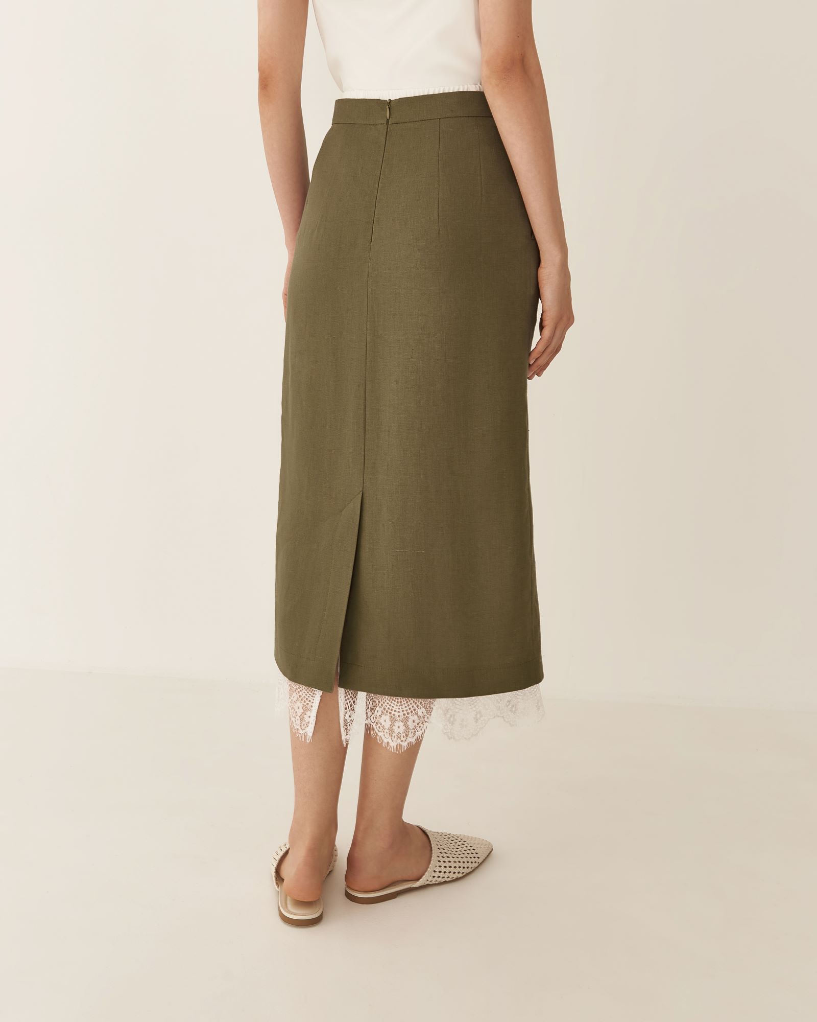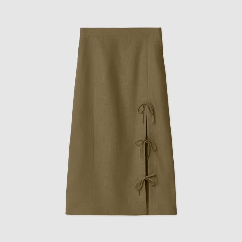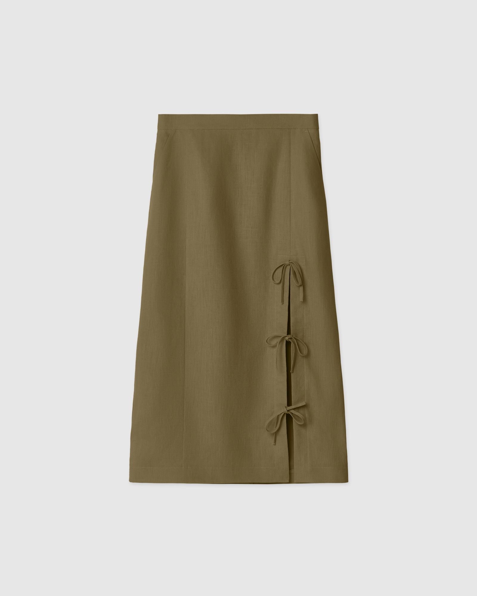 Яркой деталью юбки – карандаш изо льна длины миди стал высокий разрез с завязками в виде бантов на боку передней части изделия. В дополнение к такой модели мы предлагаем использовать юбку - подъюбник из одноименной коллекции с кружевом на подоле, создав более утонченный образ. Юбка имеет посадку на талии и застежку на молнии.