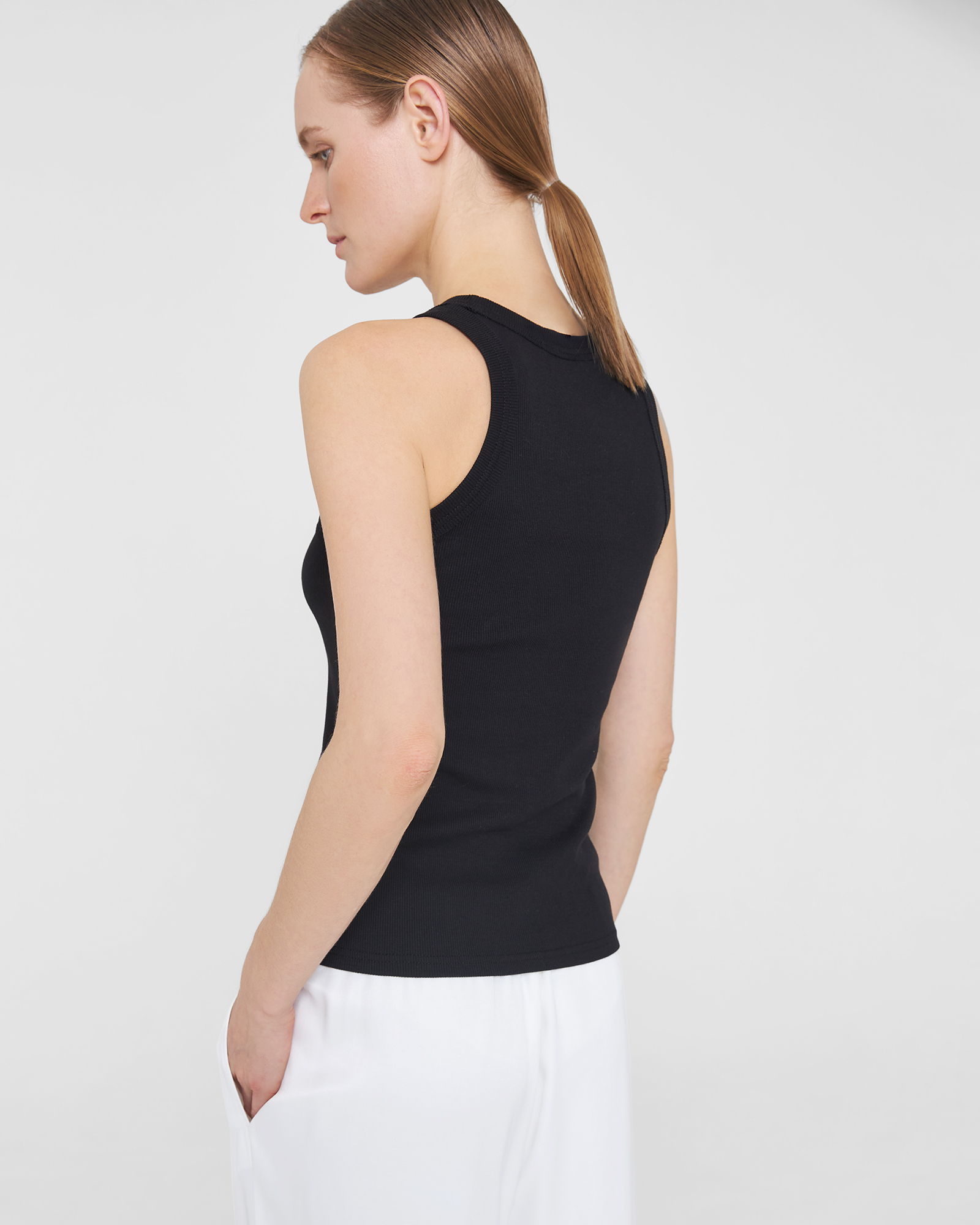 Майка в рубчик с логотипом ECLATA с глубокой проймой станет любимым базовым изделием приверженцев бренда за счет своей универсальности. Фирменным почерком бренда стал необработанный, но закрепленный край, который применен в пошиве проймы и горлового выреза. Модель длиной чуть ниже талии выполнена из хлопковой ткани с содержанием эластана, что обеспечивает облегающий силуэт при посадке.