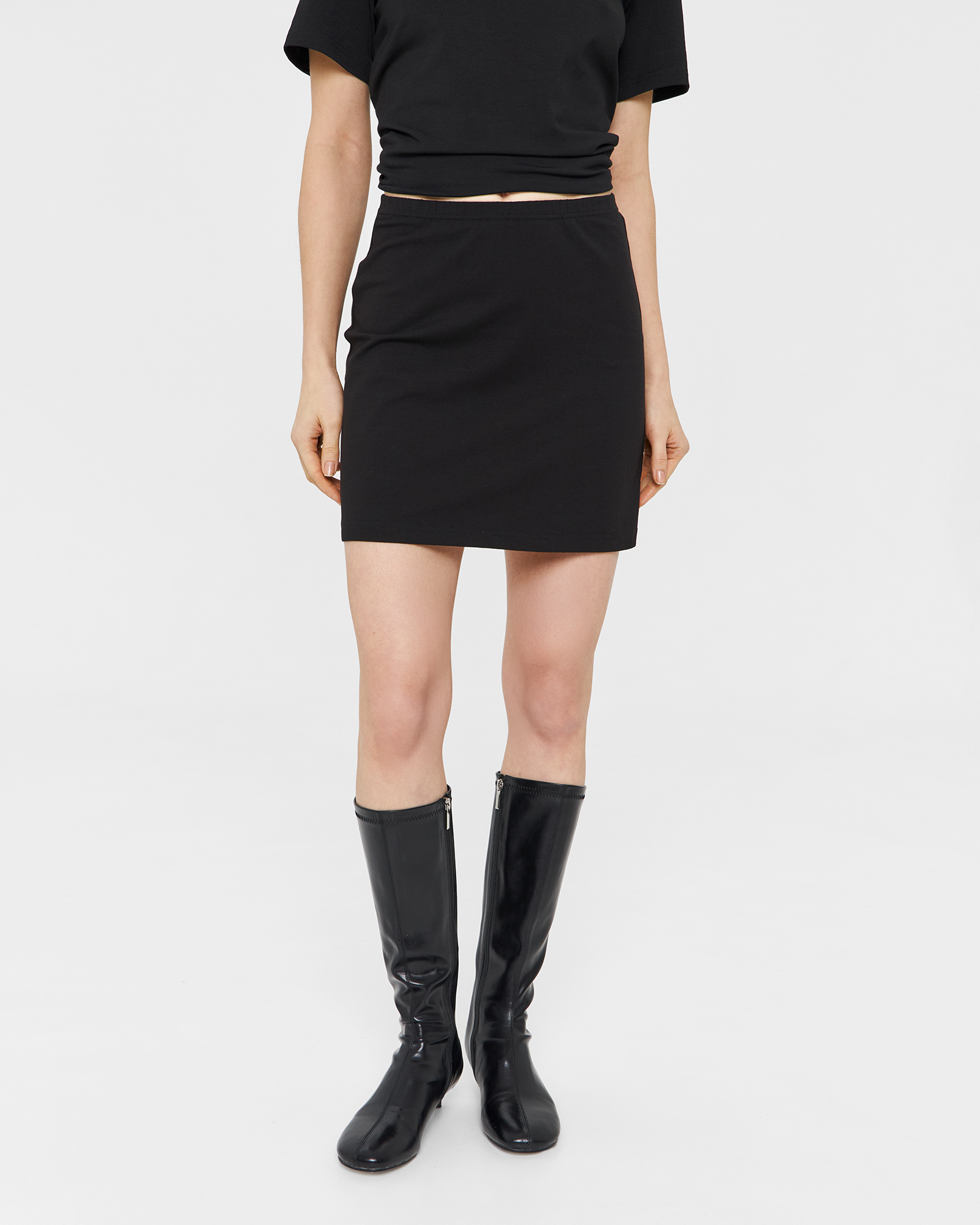 Юбка длины мини из трикотажа в черном цвете