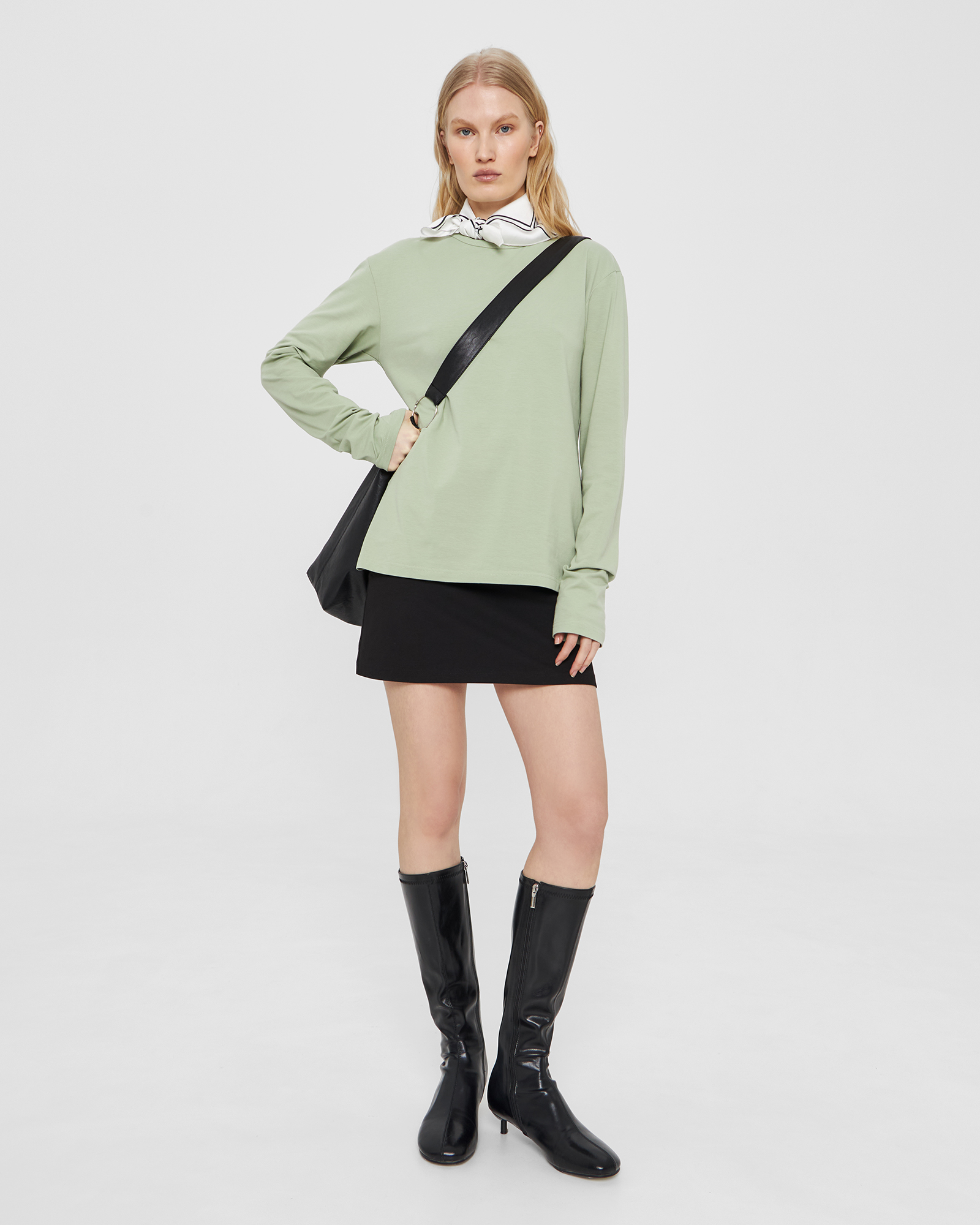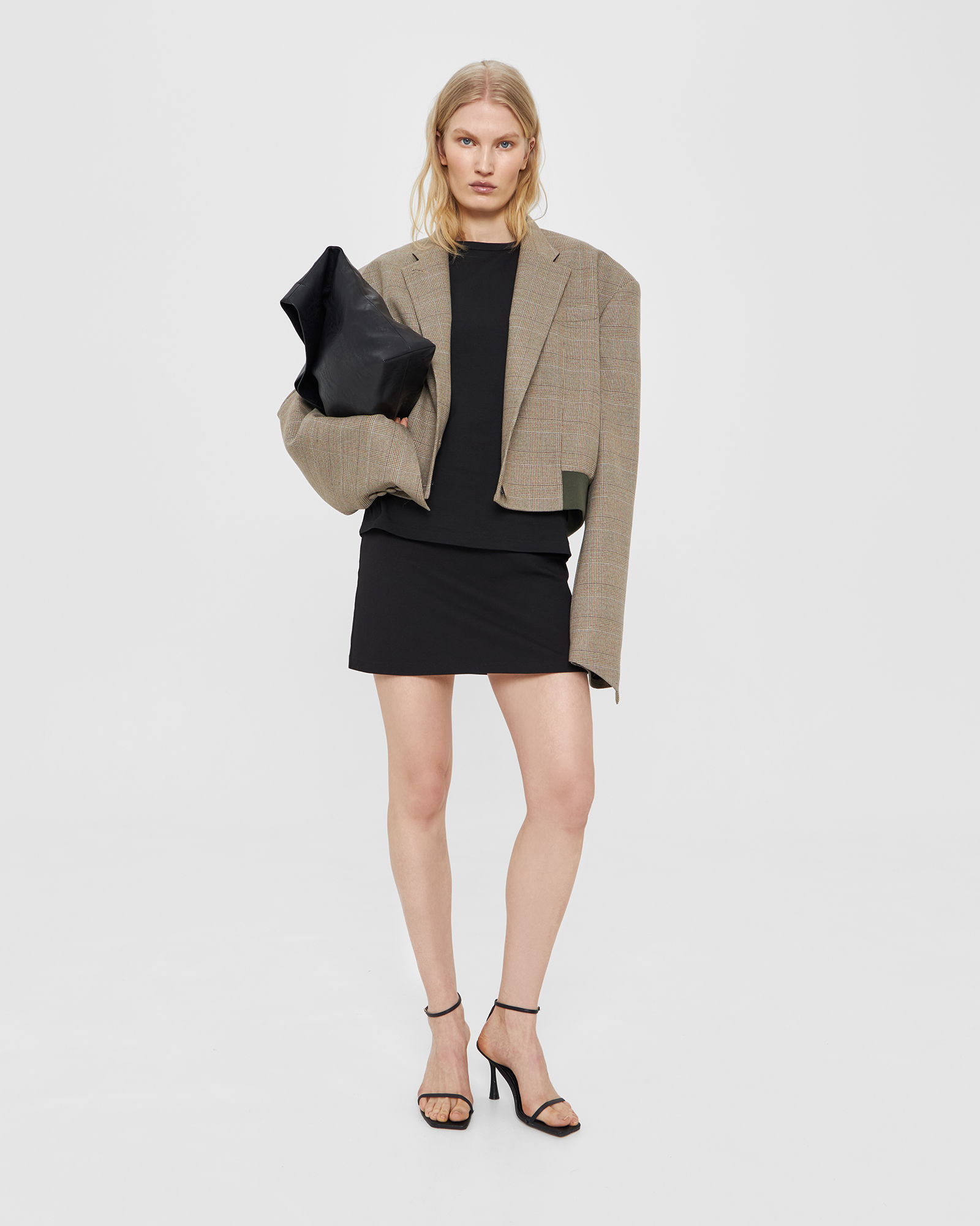 рост 175 см, обхват груди - 83 см, обхват талии - 68 см, обхват бедер - 91 см. На модели изделие в размере XS