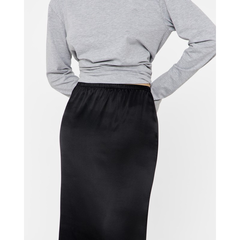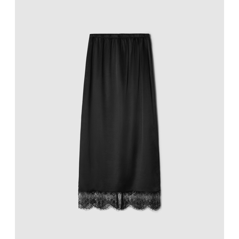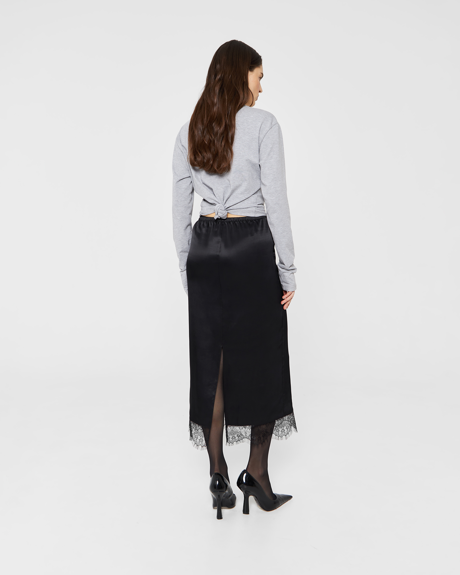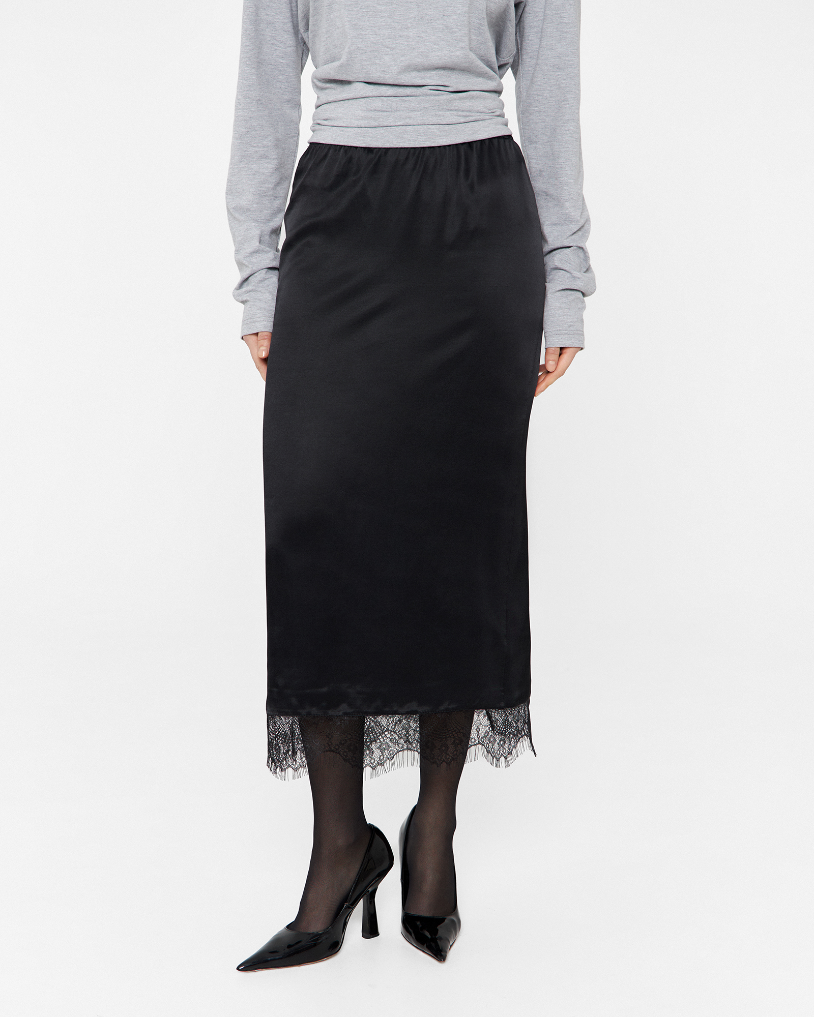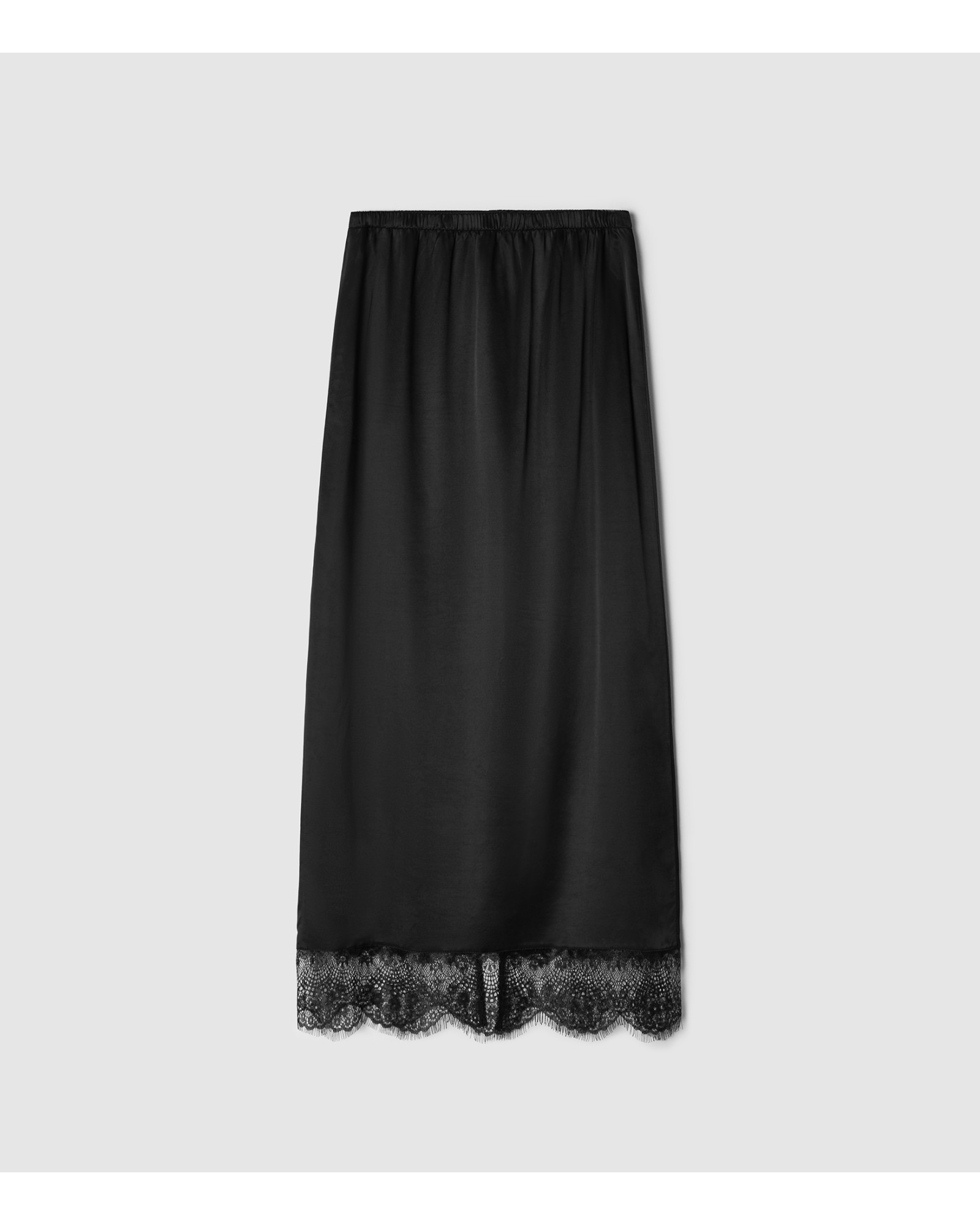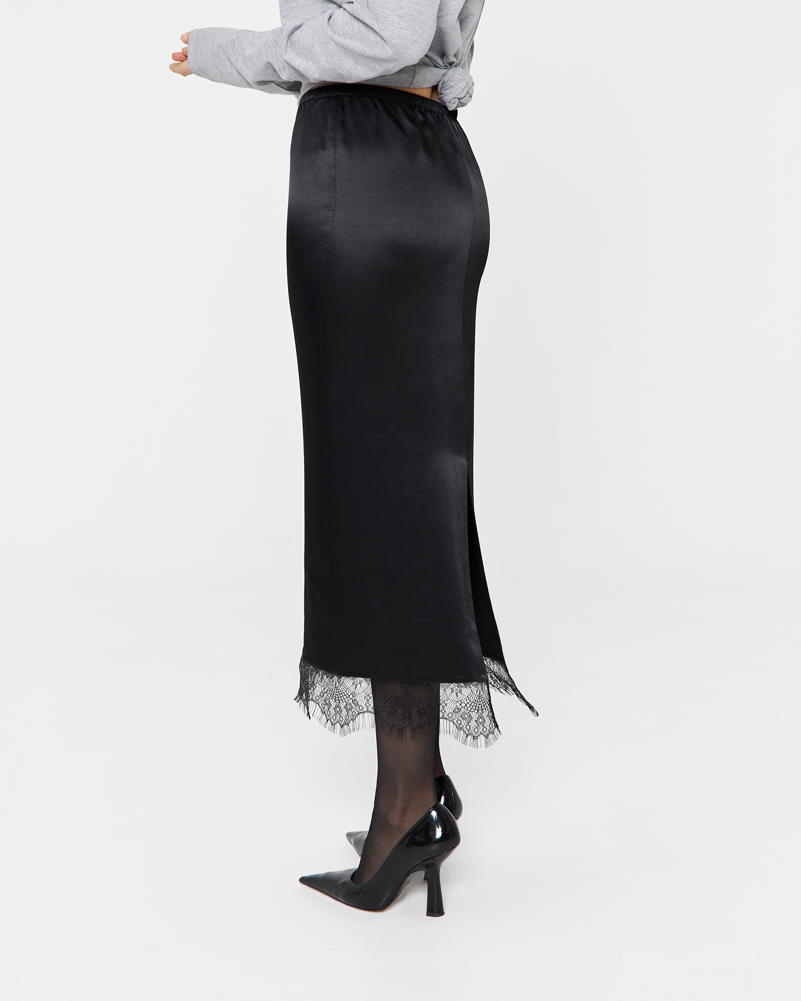 Юбка - подъюбник имеет посадку на талии или бедрах за счет резинки на поясе, разрез на спинке изделия и изящное тонкое кружево по подолу модели. Юбка выполнена из вискозного материала, за счет чего обладает охлаждающим эффектом в жаркие дни. Изделие возможно использовать как самостоятельный элемент гардероба, который впишется в образы различной стилистики.