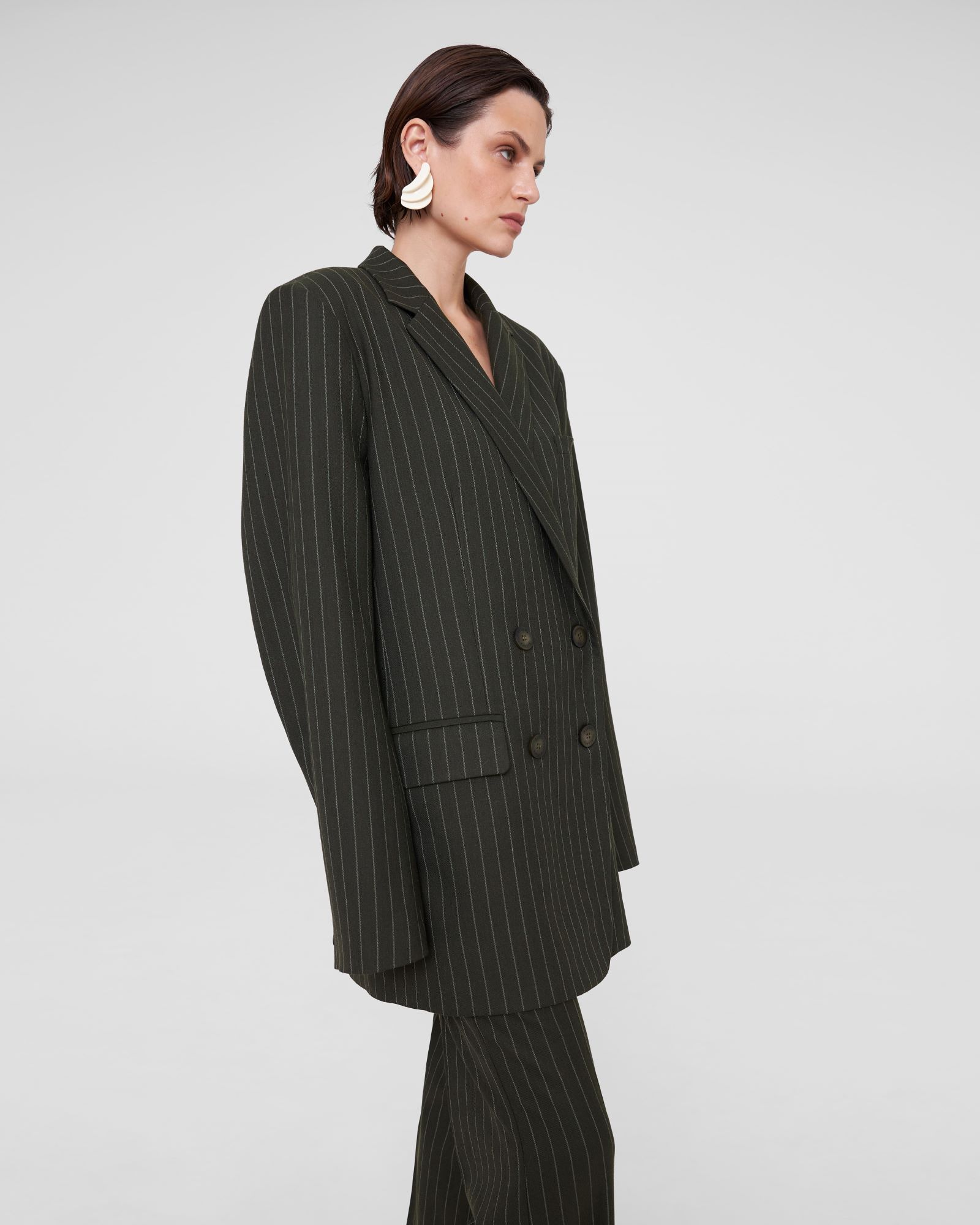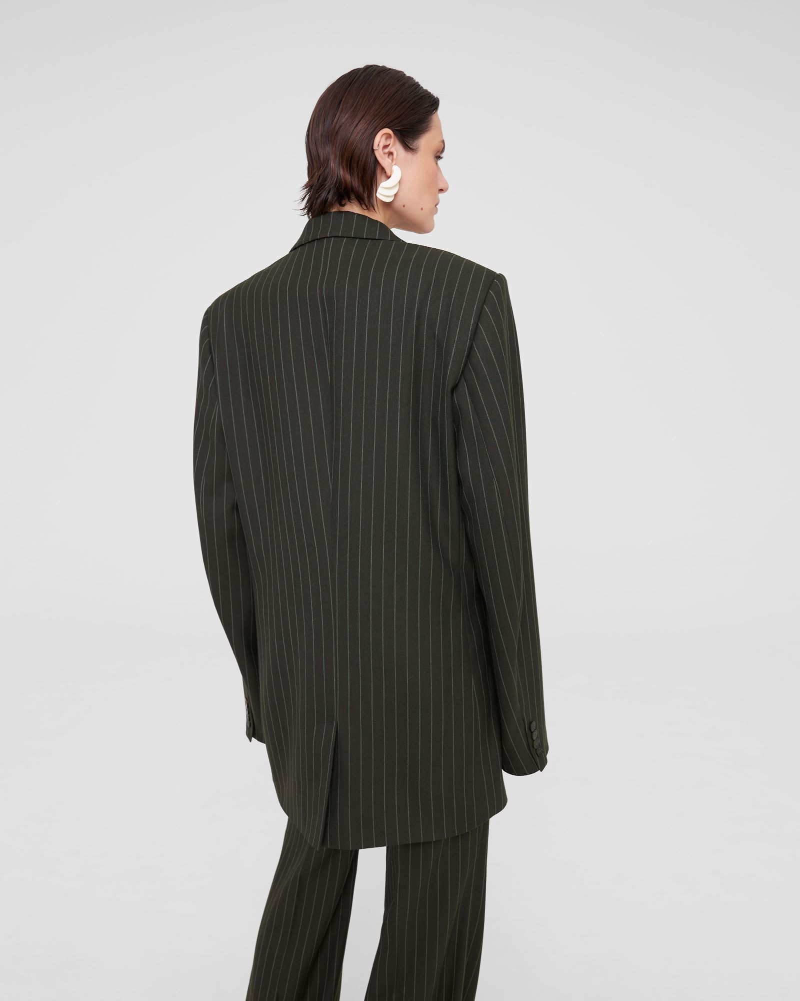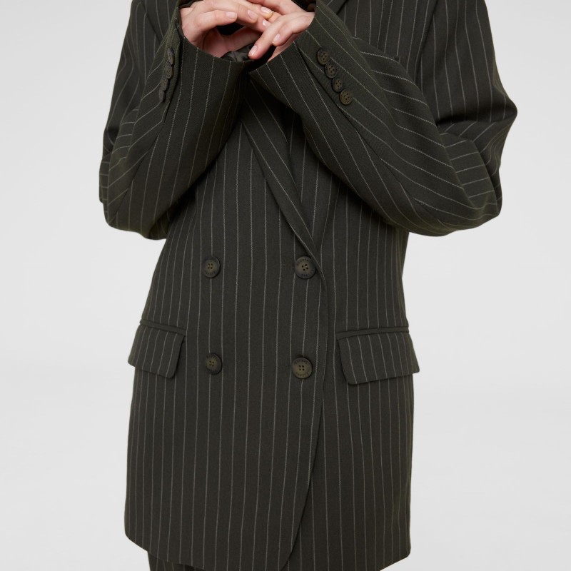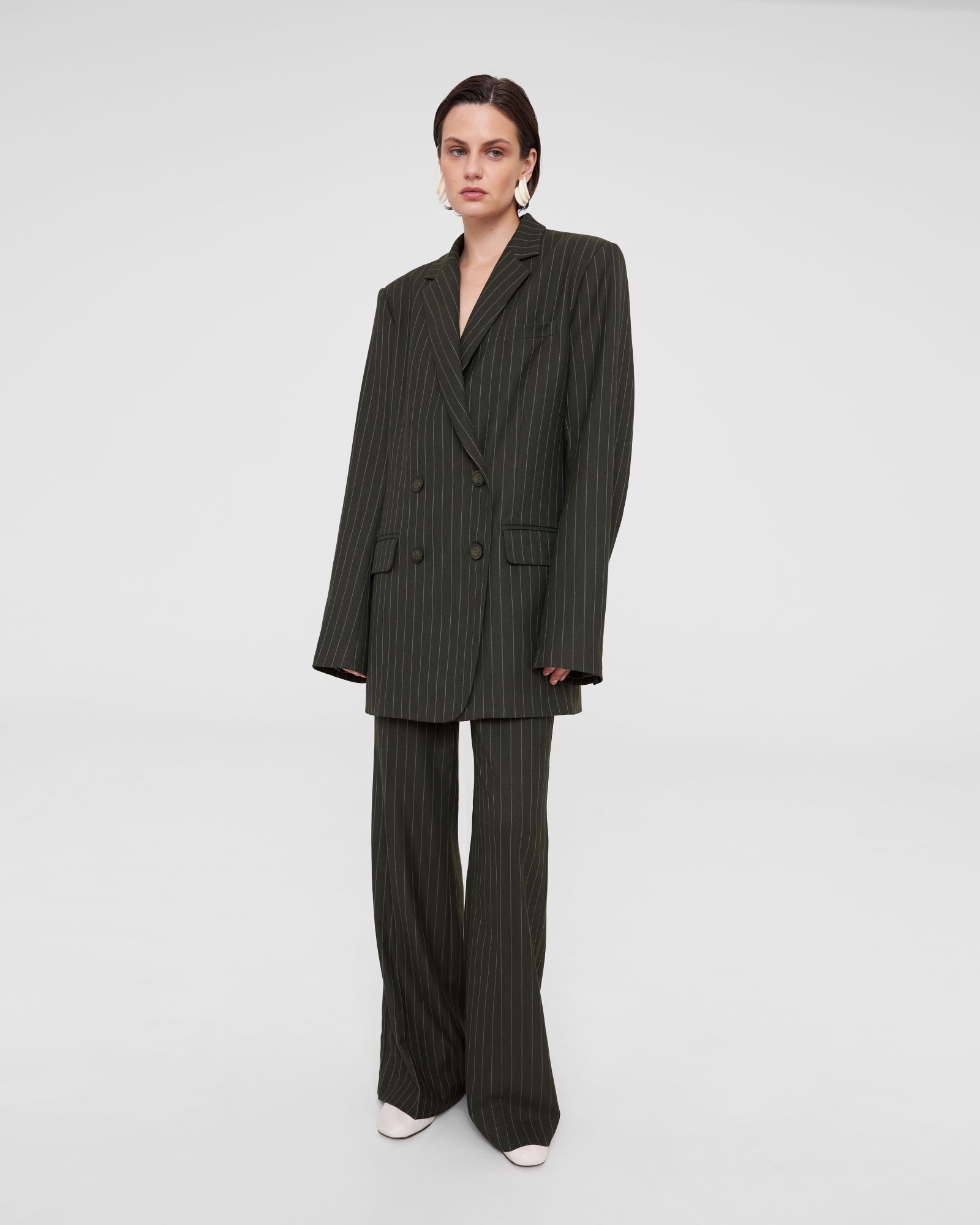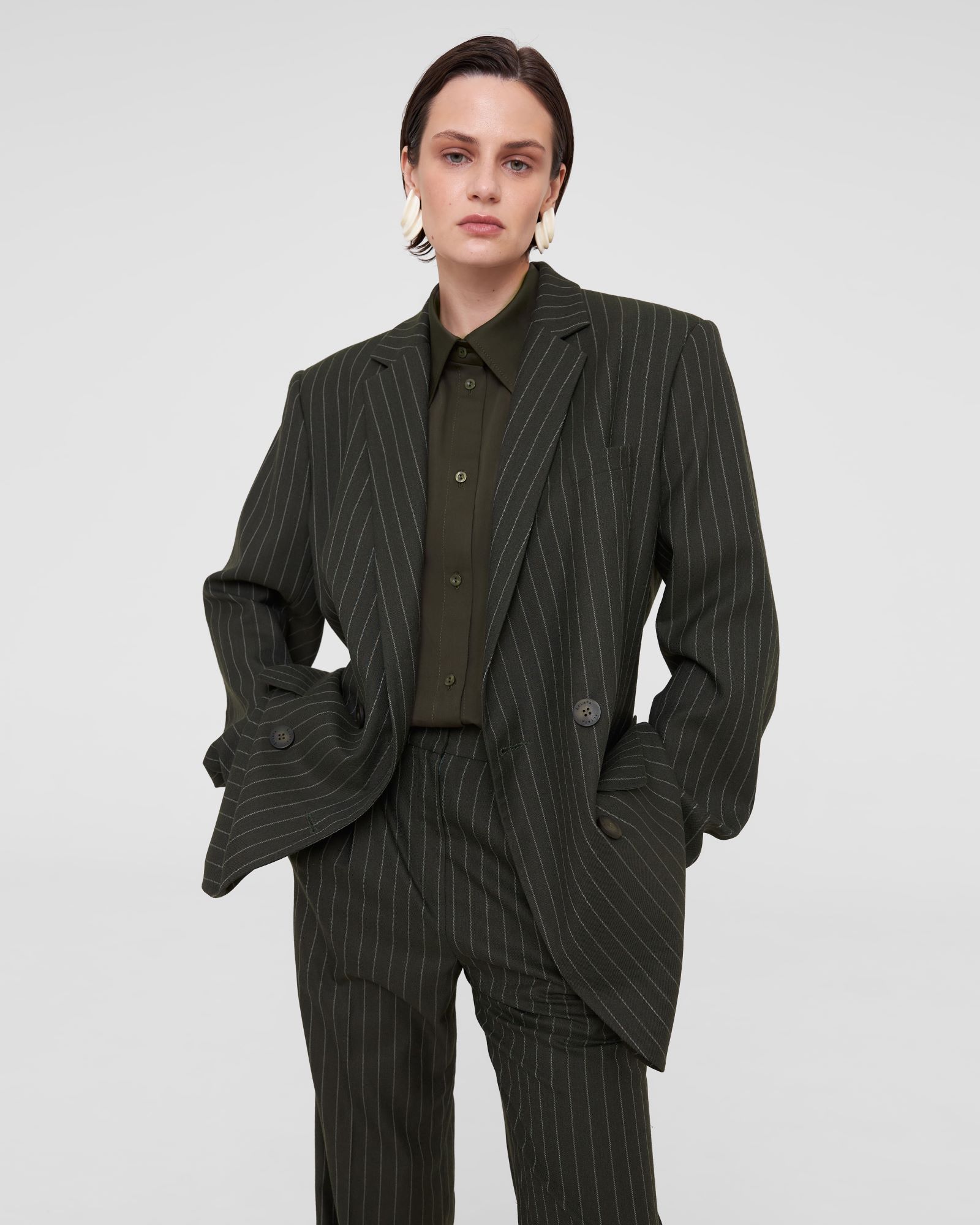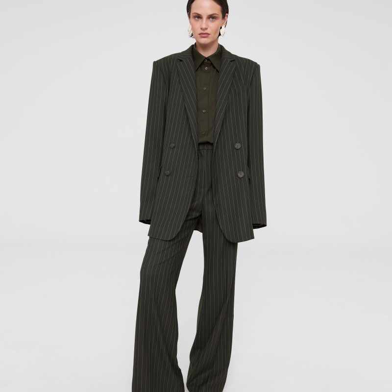 Жакет SLIM-FIT стал новым вариантом прочтения мужского пиджака глазами ECLATA. За счет легкого полуприталенного силуэта и зауженной нижней части модели, пиджак смещает внимание на плечи, акцентируя хрупкость сильной героини. Согласно традициям кроя классического мужского пиджака, жакет вытянутого очертания имеет зауженный английский воротник, двубортную застежку, ряд пуговиц на рукаве, глубокие боковые прорезные карманы с клапанами, нагрудный функциональный карман и шлицу на спинке изделия.Наиболее ярко модель жакета раскрывается в тандеме с брюками – клёш.