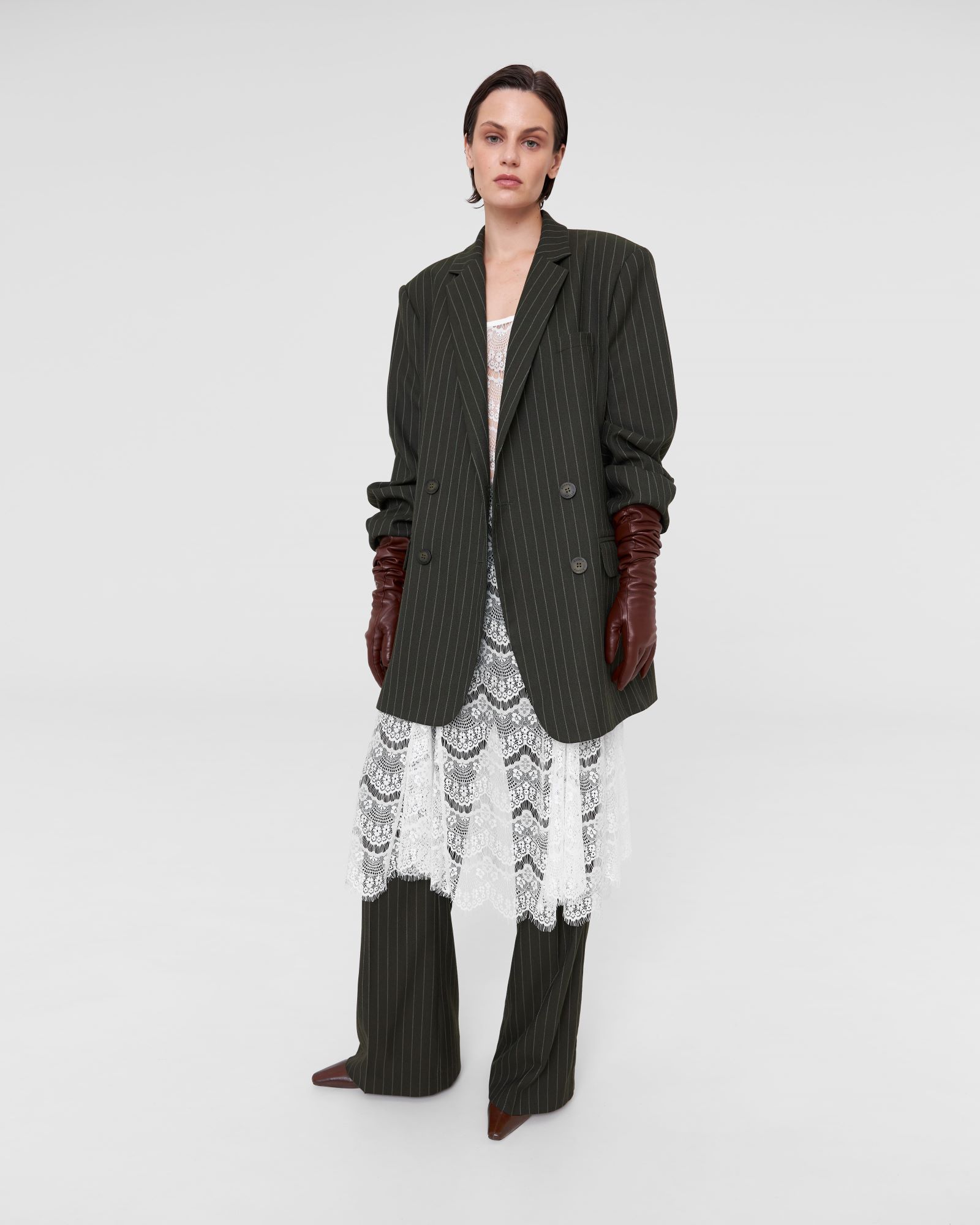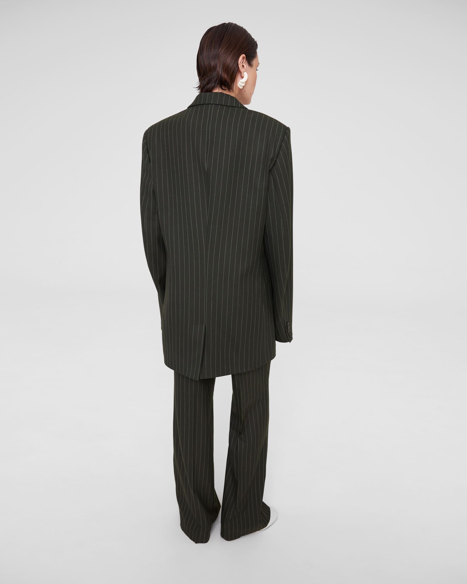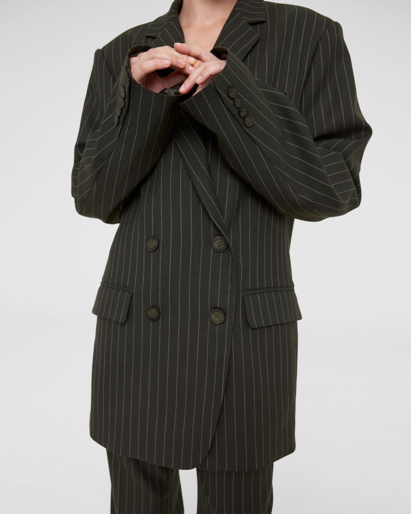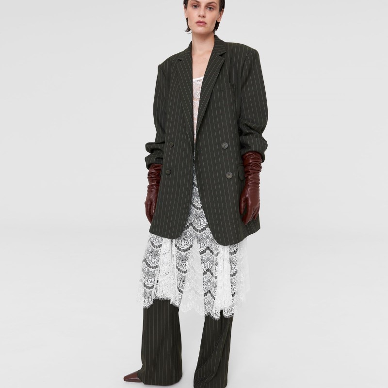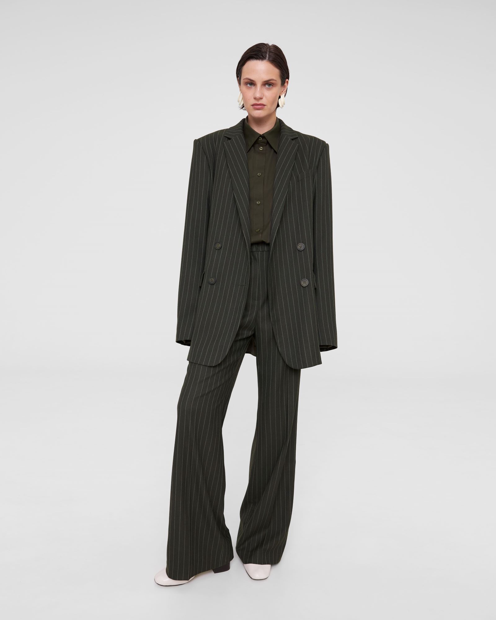 Жакет SLIM-FIT стал новым вариантом прочтения мужского пиджака глазами ECLATA. За счет легкого полуприталенного силуэта и зауженной нижней части модели, пиджак смещает внимание на плечи, акцентируя хрупкость сильной героини. Согласно традициям кроя классического мужского пиджака, жакет вытянутого очертания имеет зауженный английский воротник, двубортную застежку, ряд пуговиц на рукаве, глубокие боковые прорезные карманы с клапанами, нагрудный функциональный карман и шлицу на спинке изделия.Наиболее ярко модель жакета раскрывается в тандеме с брюками – клёш.