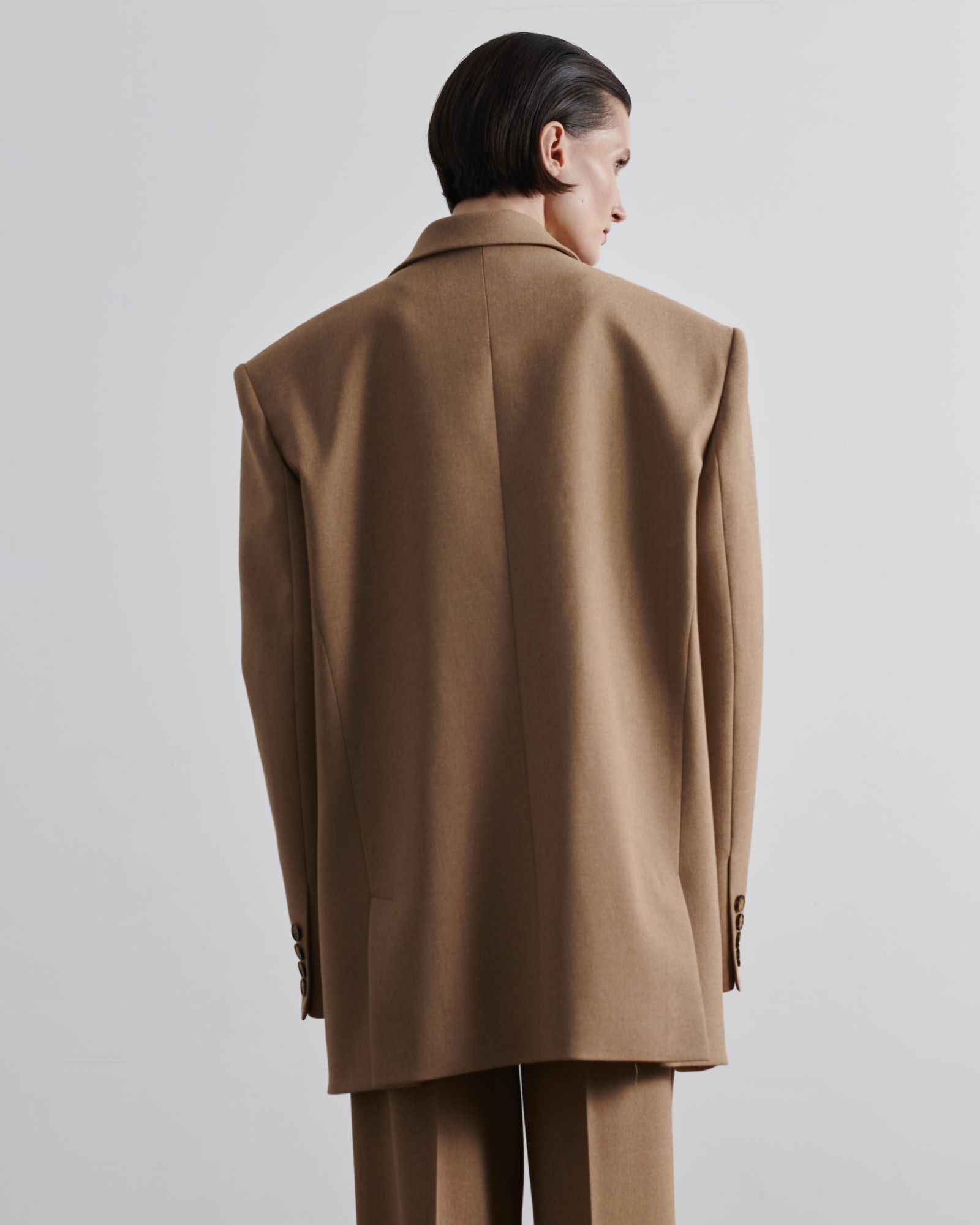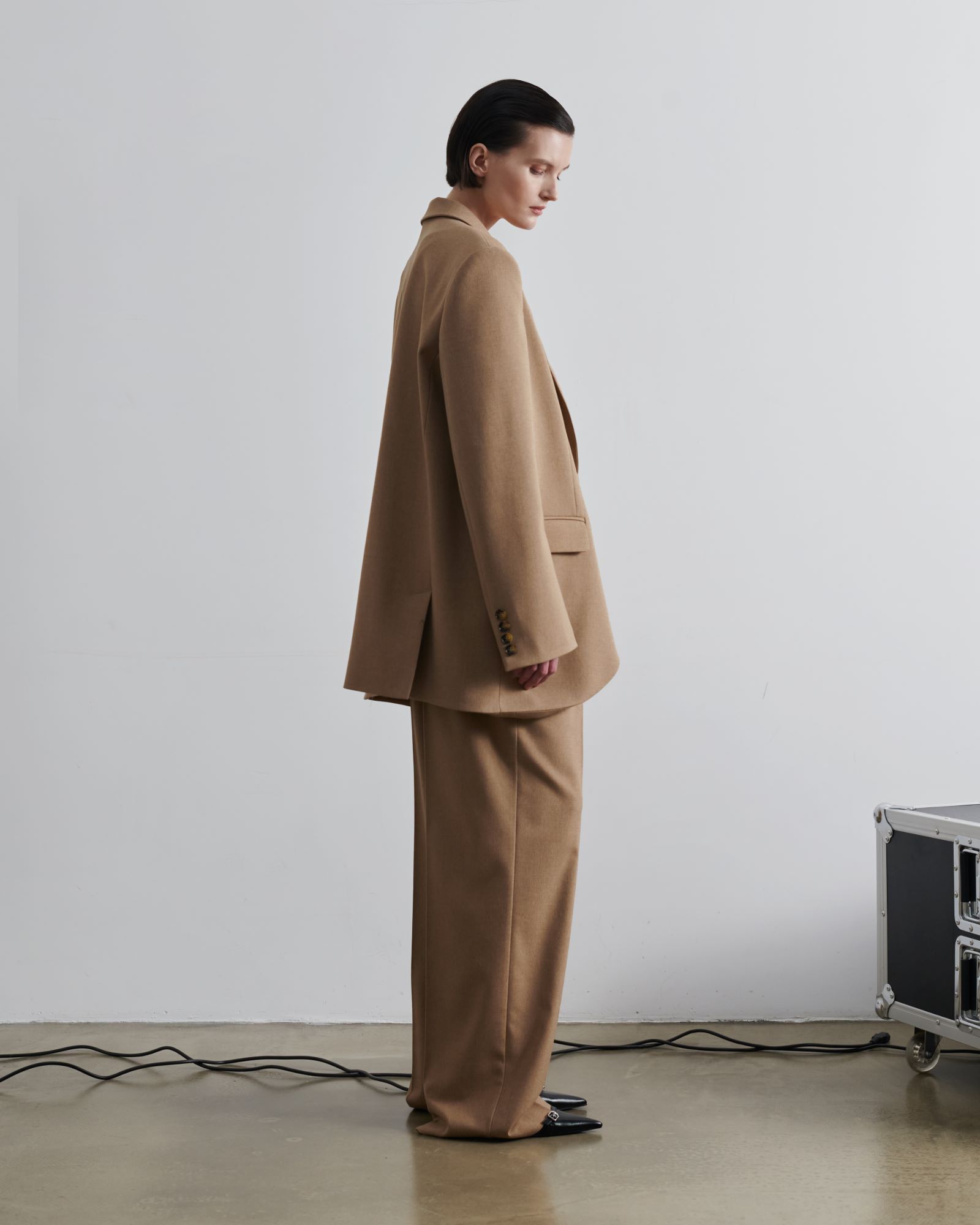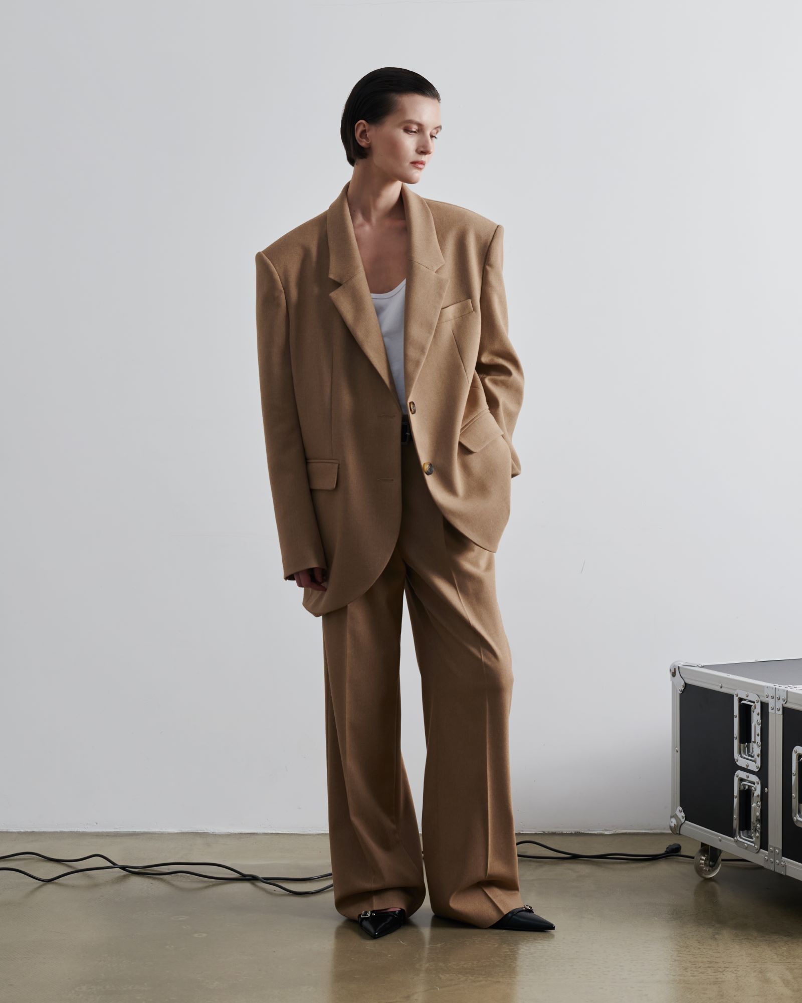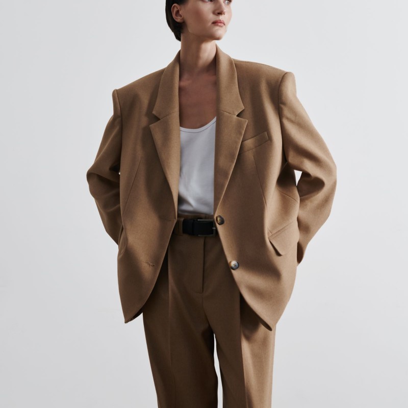 Пиджак daddys jacket имеет расширенную линию плеча, классический английский воротник, нагрудный карман «листочку» и карманы с клапанами, которые отсылают нас к традициям кроя мужского жакета. При этом модель имеет закругленные фигурные полочки и мягкую пластичную структуру, что подчеркивает легкость и изящество девушки ECLATA.