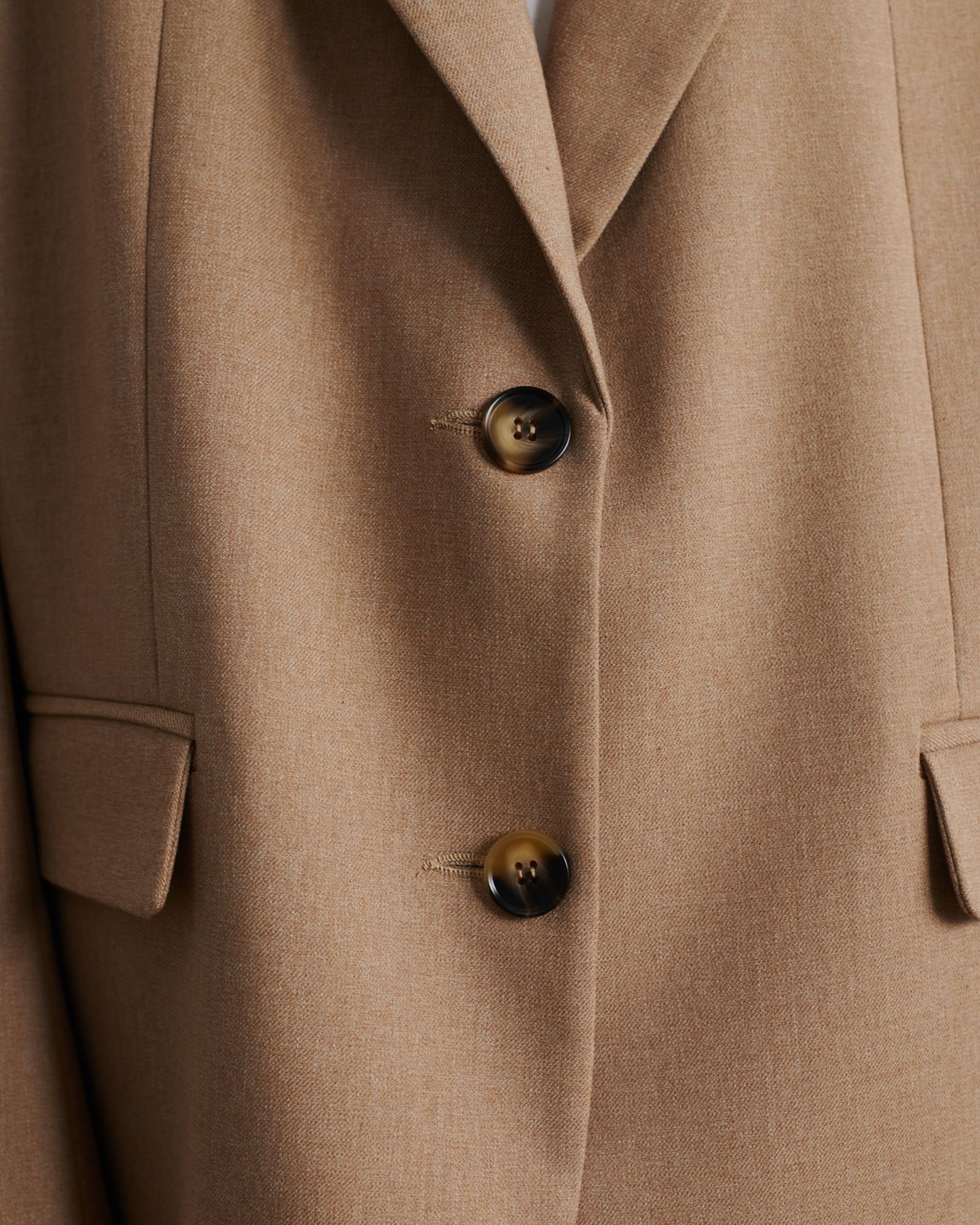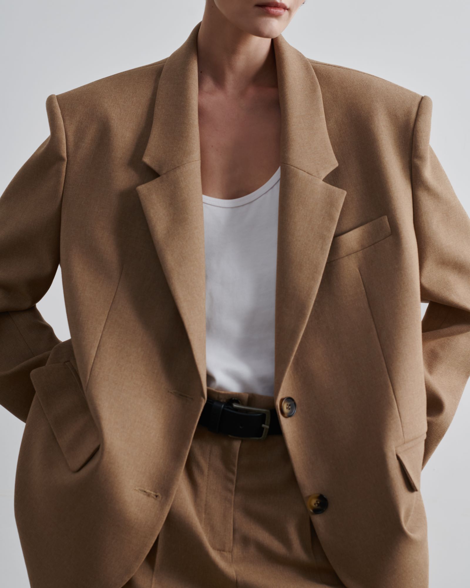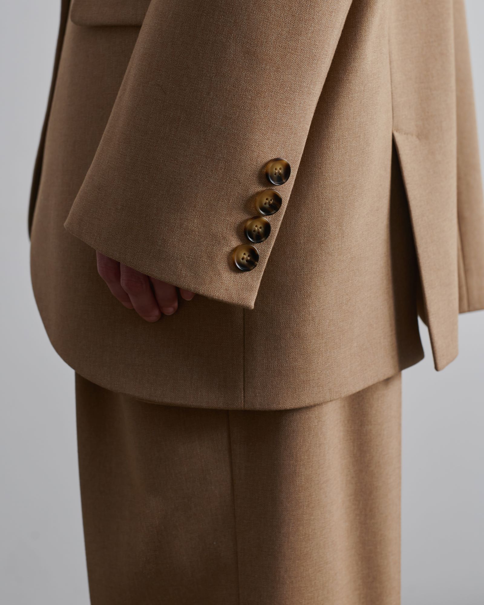 Пиджак daddys jacket имеет расширенную линию плеча, классический английский воротник, нагрудный карман «листочку» и карманы с клапанами, которые отсылают нас к традициям кроя мужского жакета. При этом модель имеет закругленные фигурные полочки и мягкую пластичную структуру, что подчеркивает легкость и изящество девушки ECLATA.